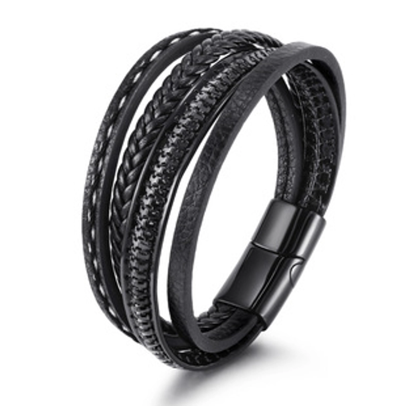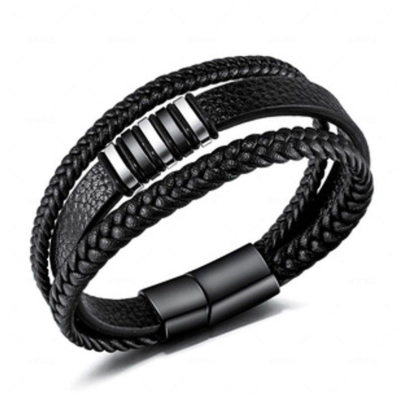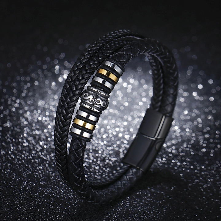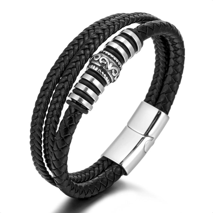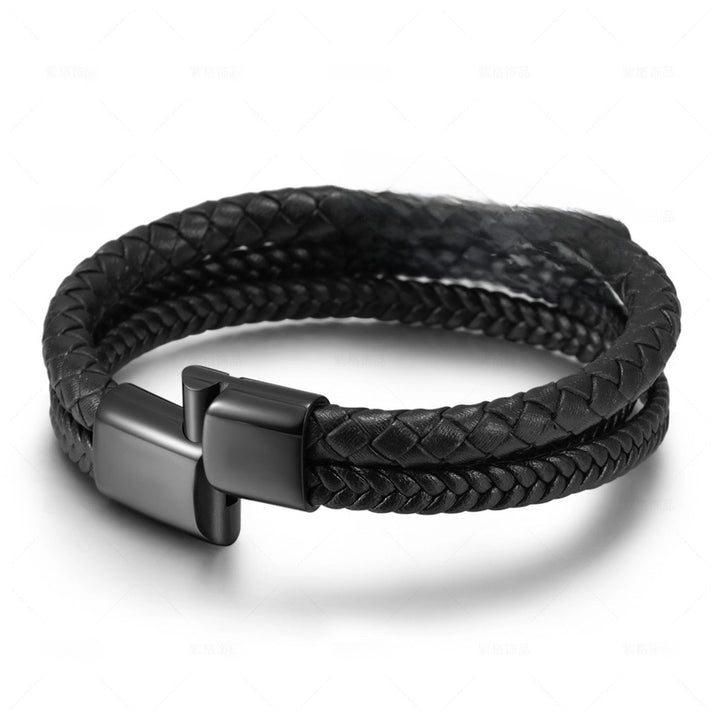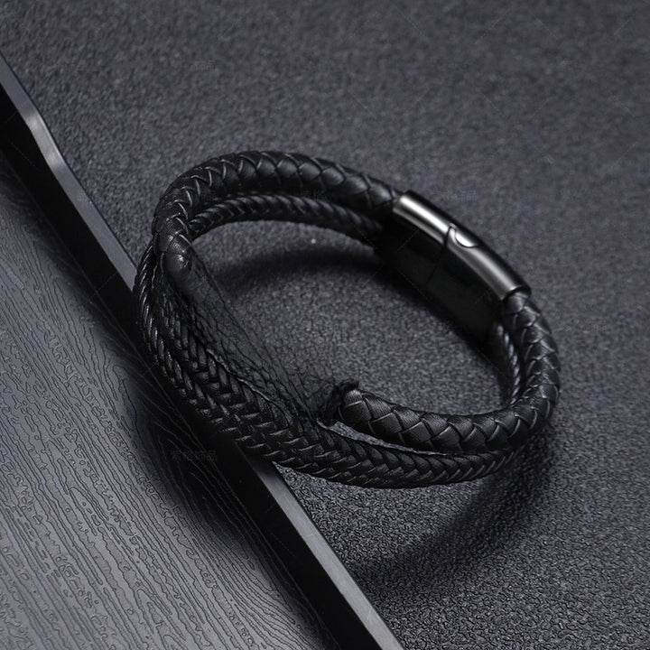 National Style Jewelry Stainless Steel Bracelet Men'S Multi-Layer Woven Leather Rope Titanium Steel Magnetic Buckle Bracelet