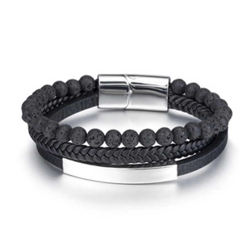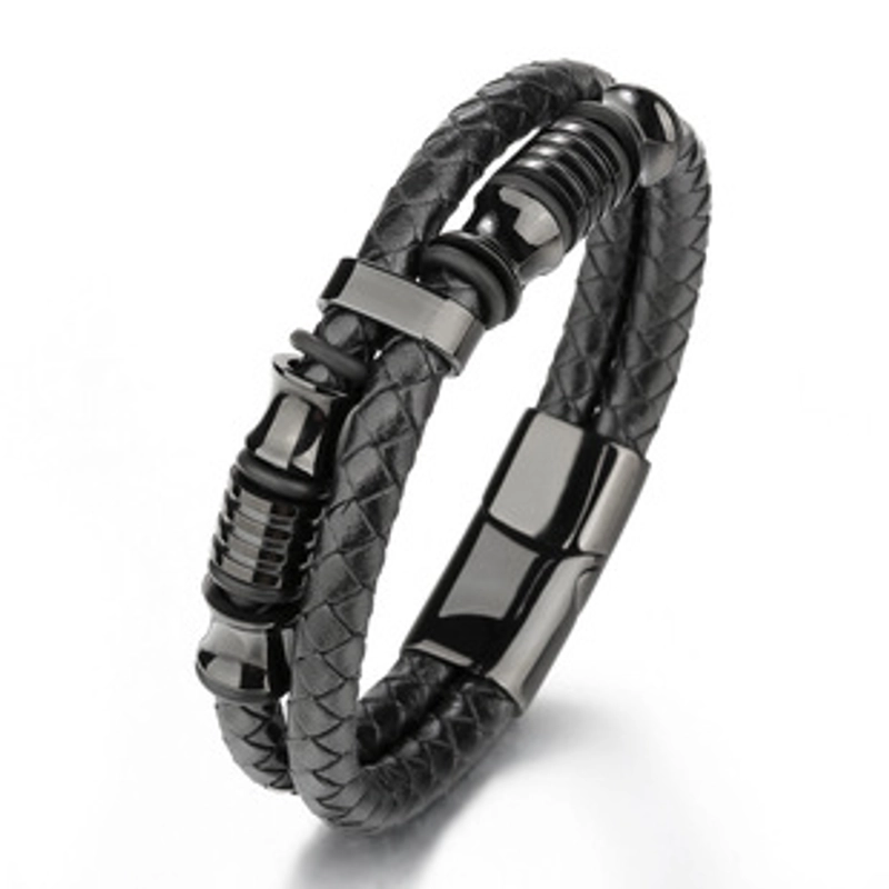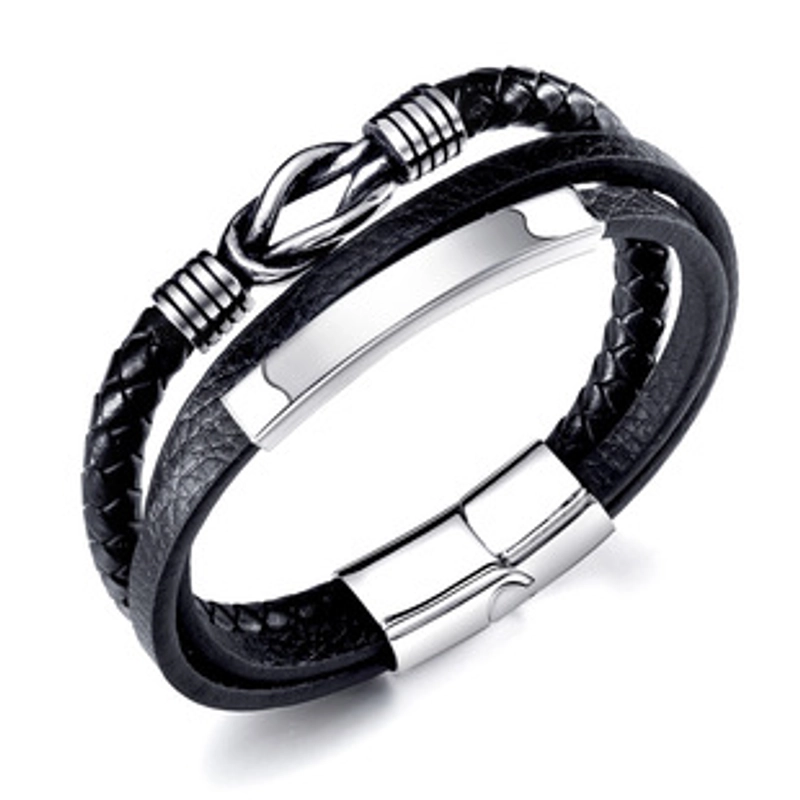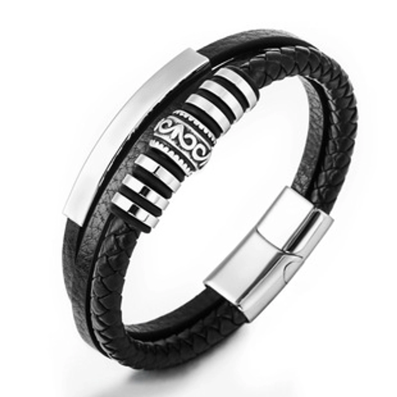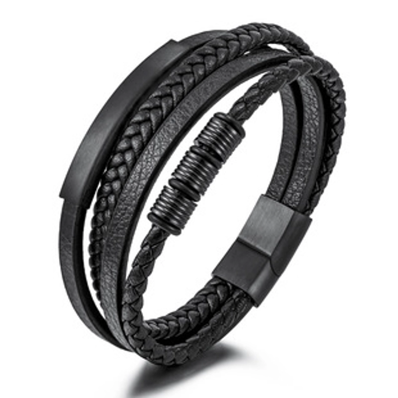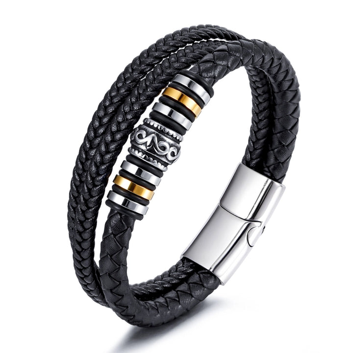 National Style Jewelry Stainless Steel Bracelet Men'S Multi-Layer Woven Leather Rope Titanium Steel Magnetic Buckle Bracelet