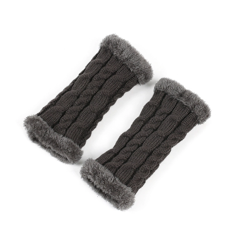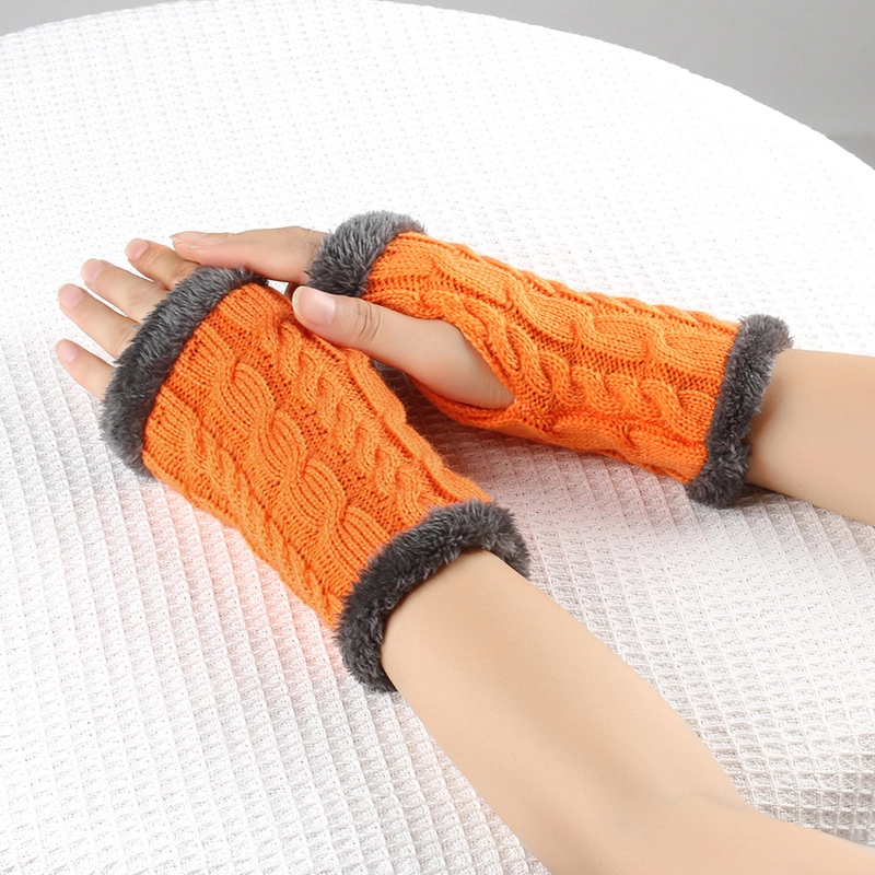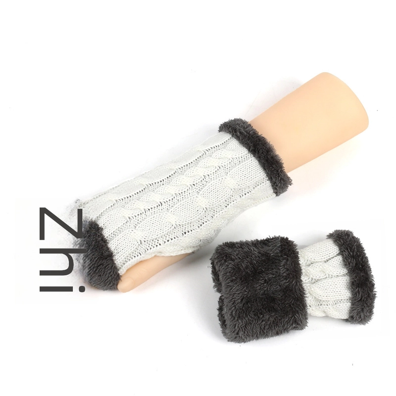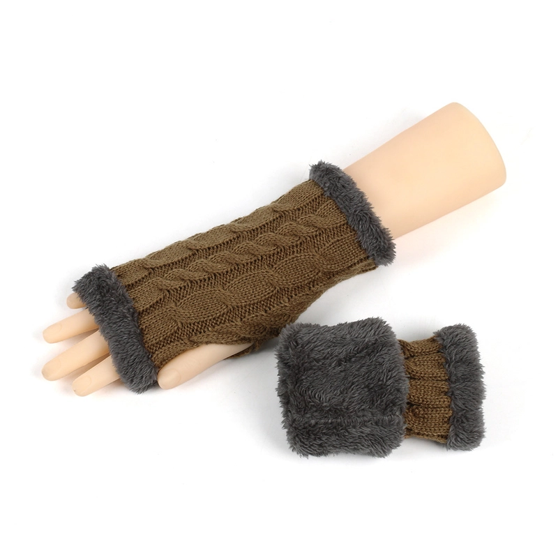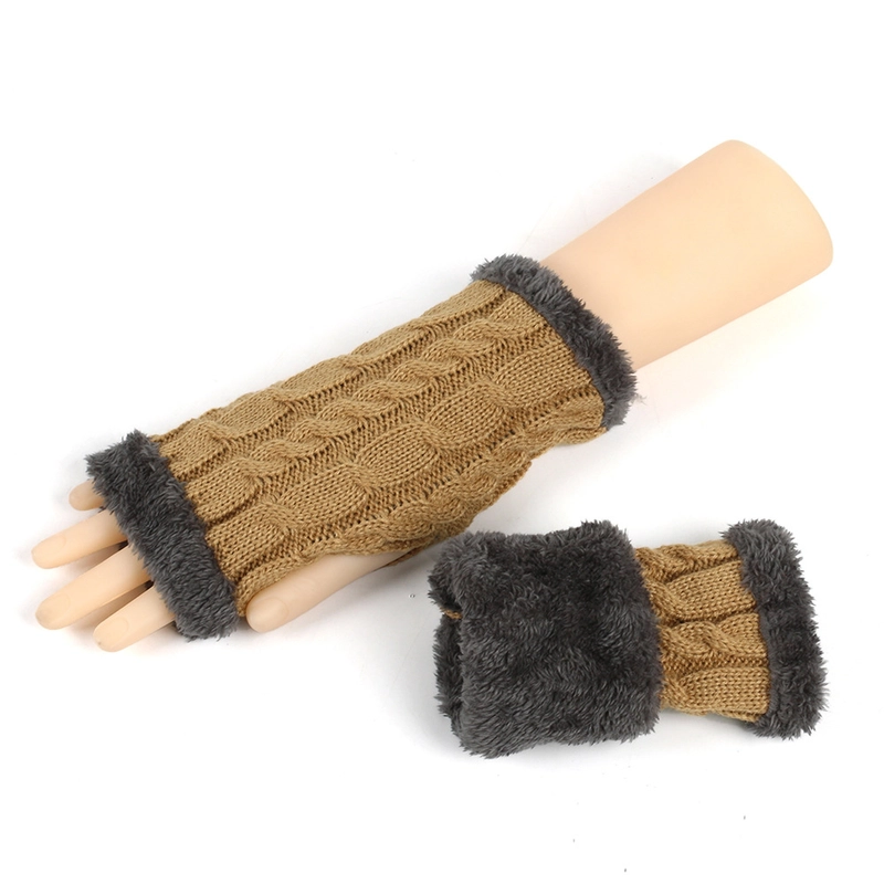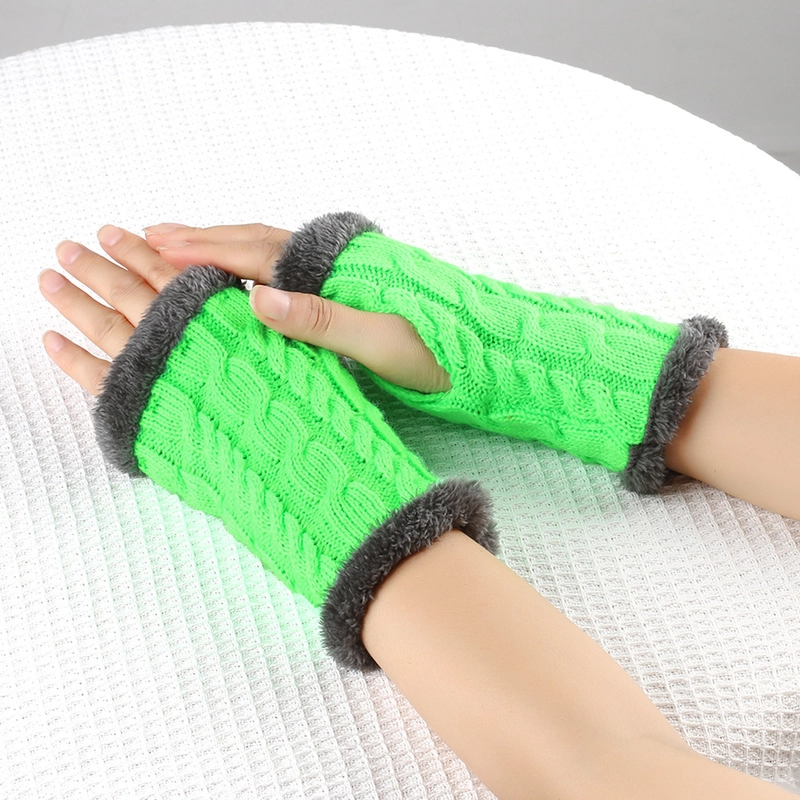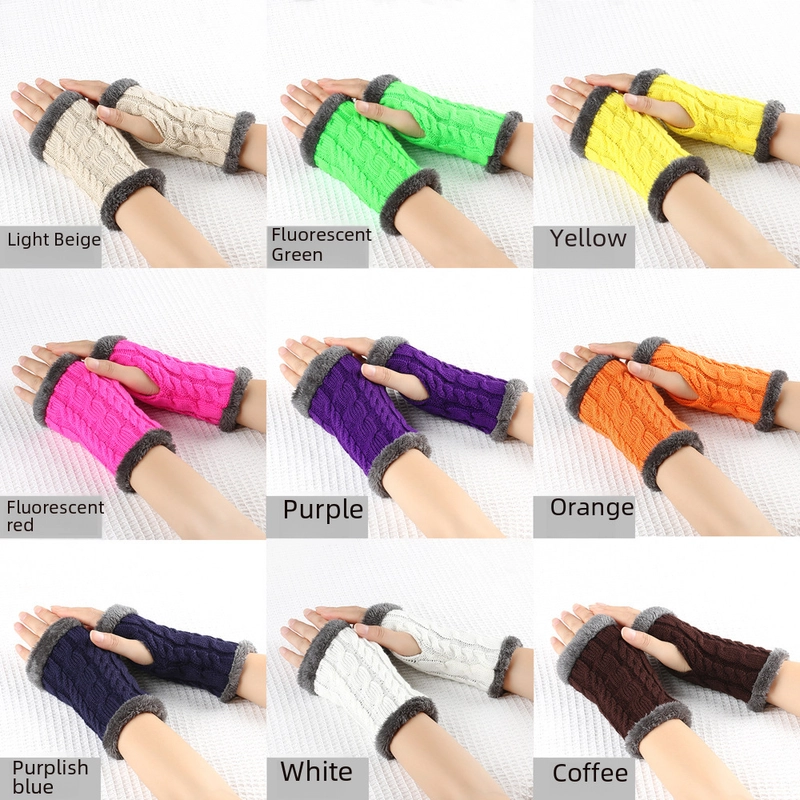 New Autumn And Winter Fleece-Lined Wool Gloves Twist Knitted Finger Leakage Plush Oversleeve Warm Thickened Wool Gloves