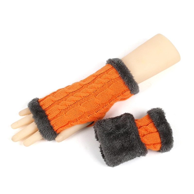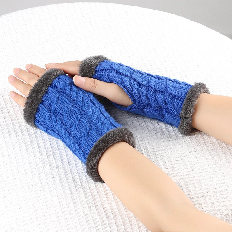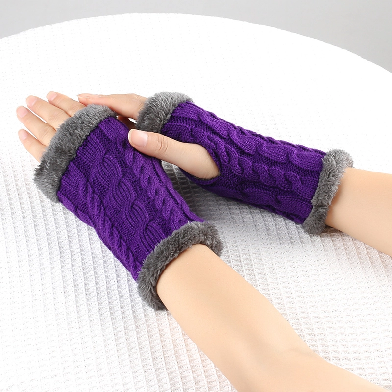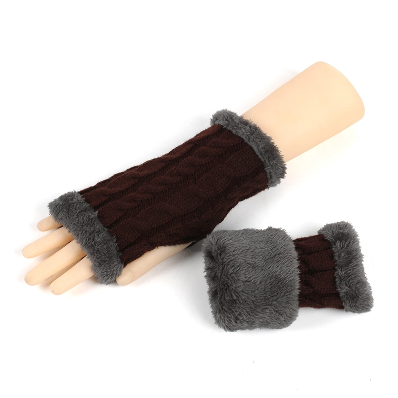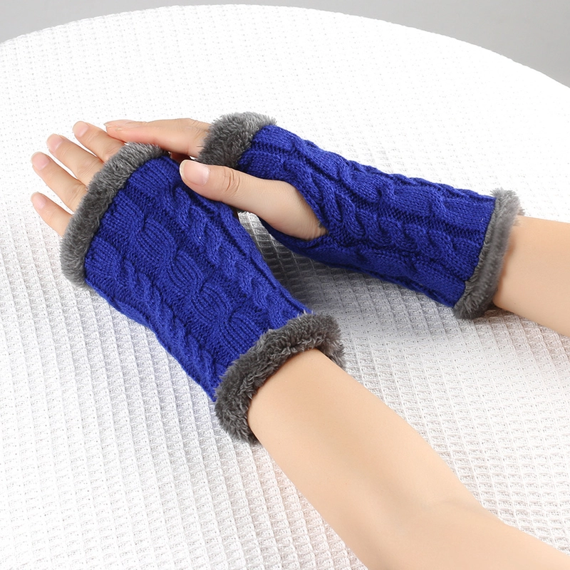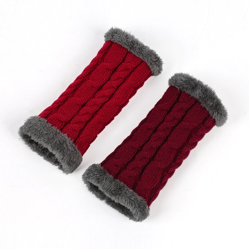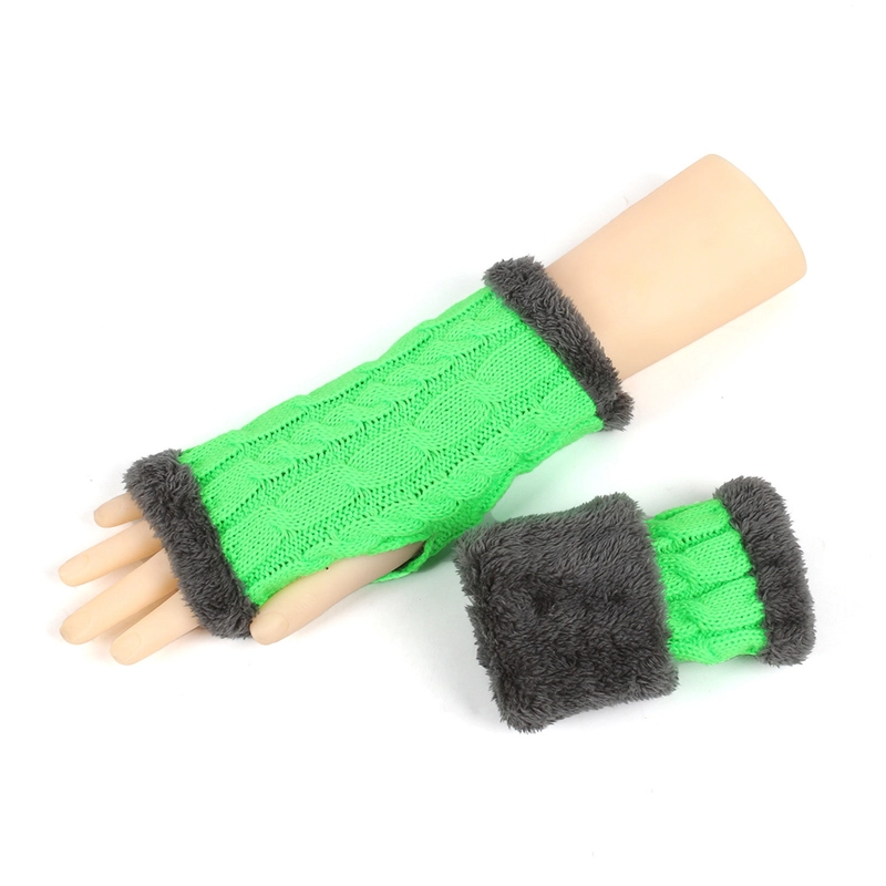 New Autumn And Winter Fleece-Lined Wool Gloves Twist Knitted Finger Leakage Plush Oversleeve Warm Thickened Wool Gloves