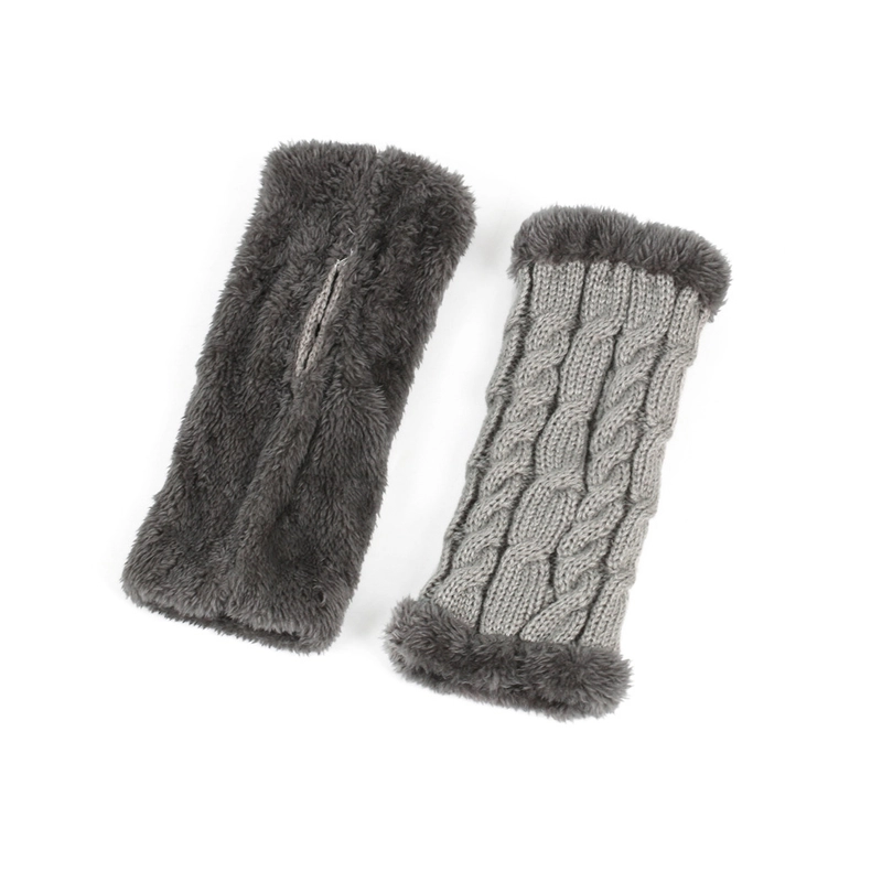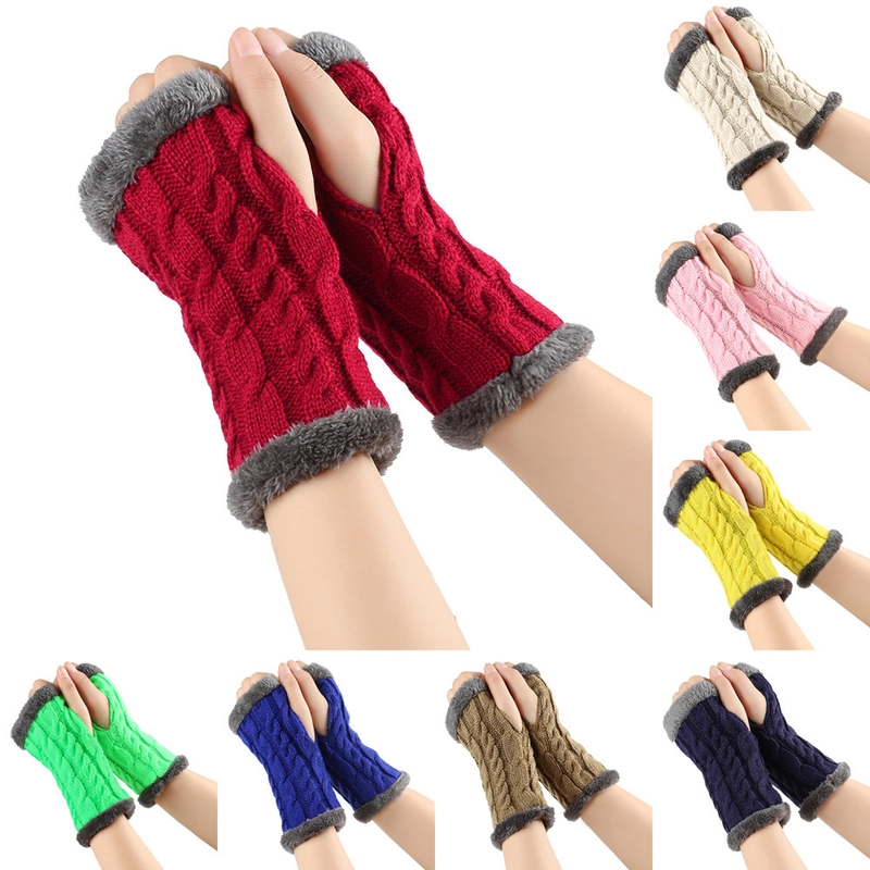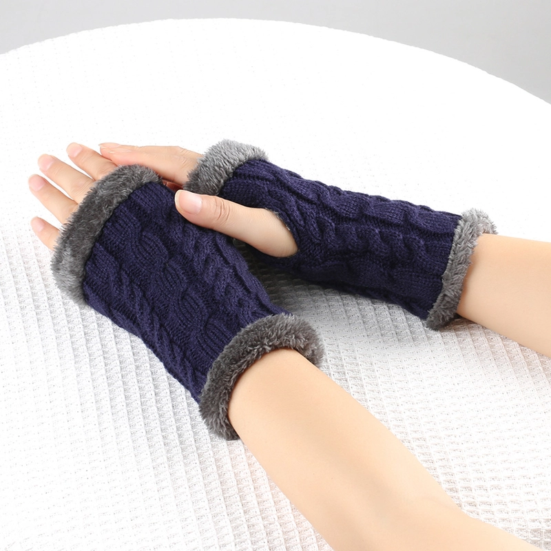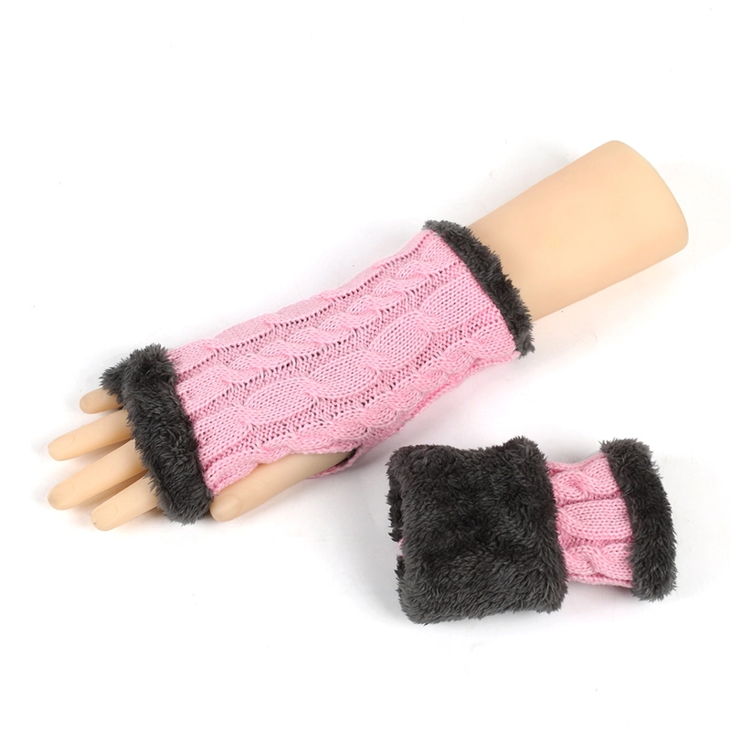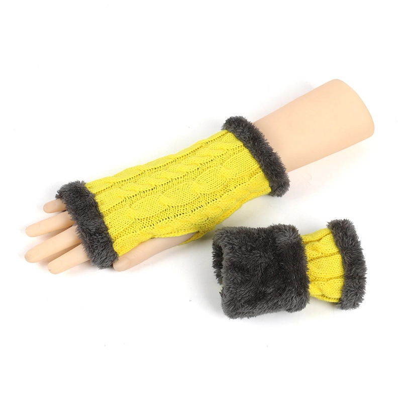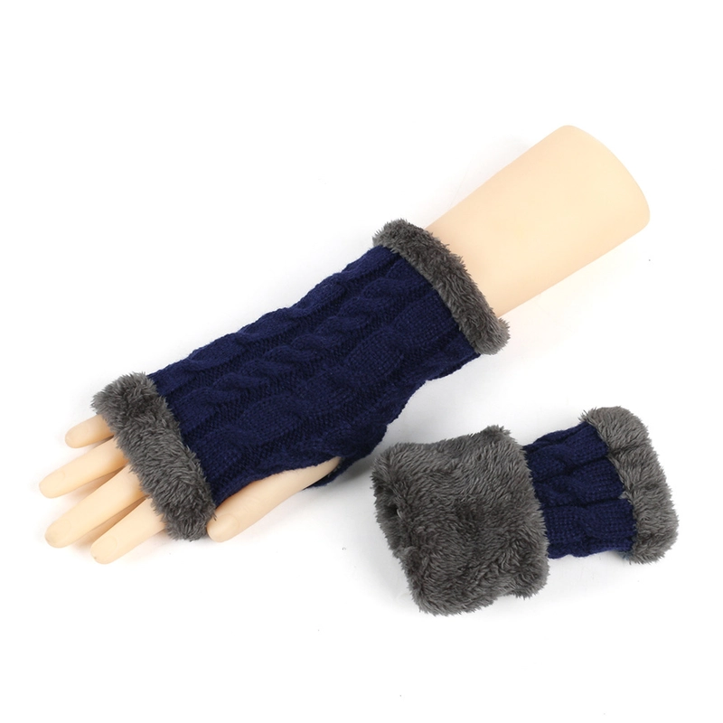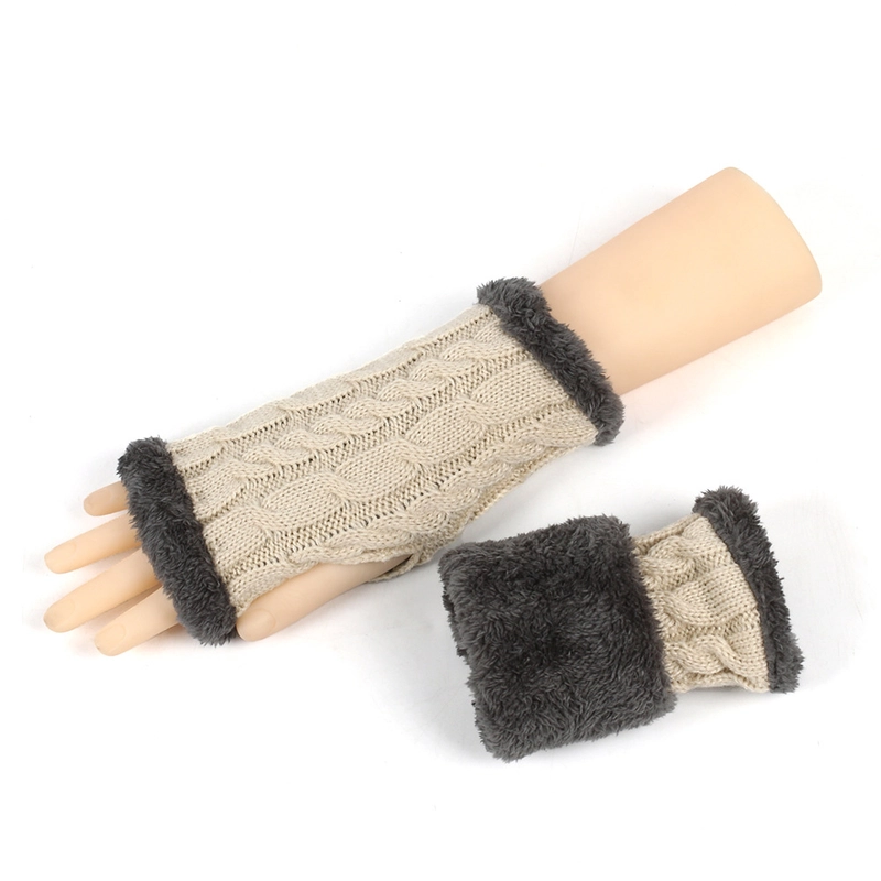 New Autumn And Winter Fleece-Lined Wool Gloves Twist Knitted Finger Leakage Plush Oversleeve Warm Thickened Wool Gloves