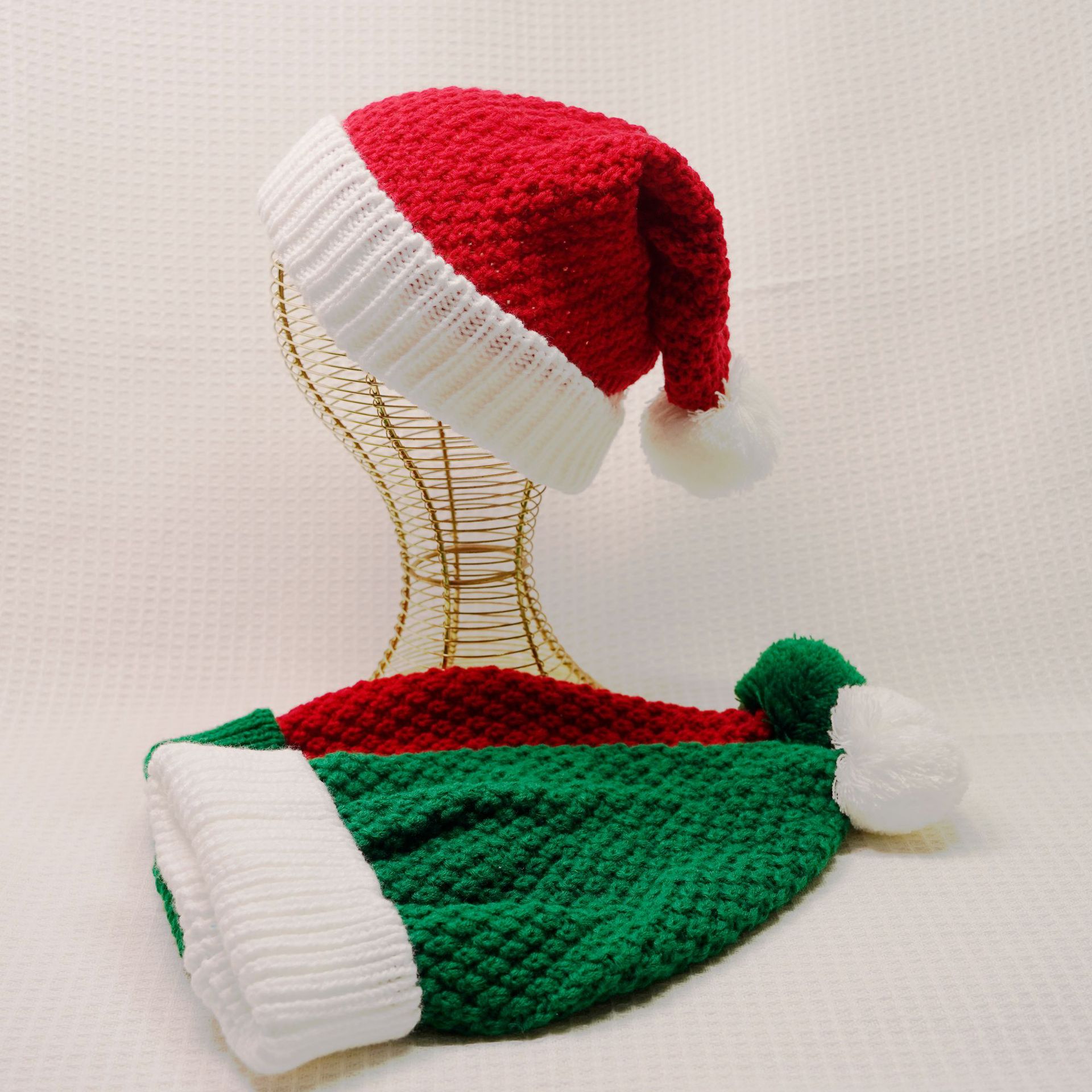 Women'S Cute Color Block Elk Pom Poms Eaveless Wool Cap