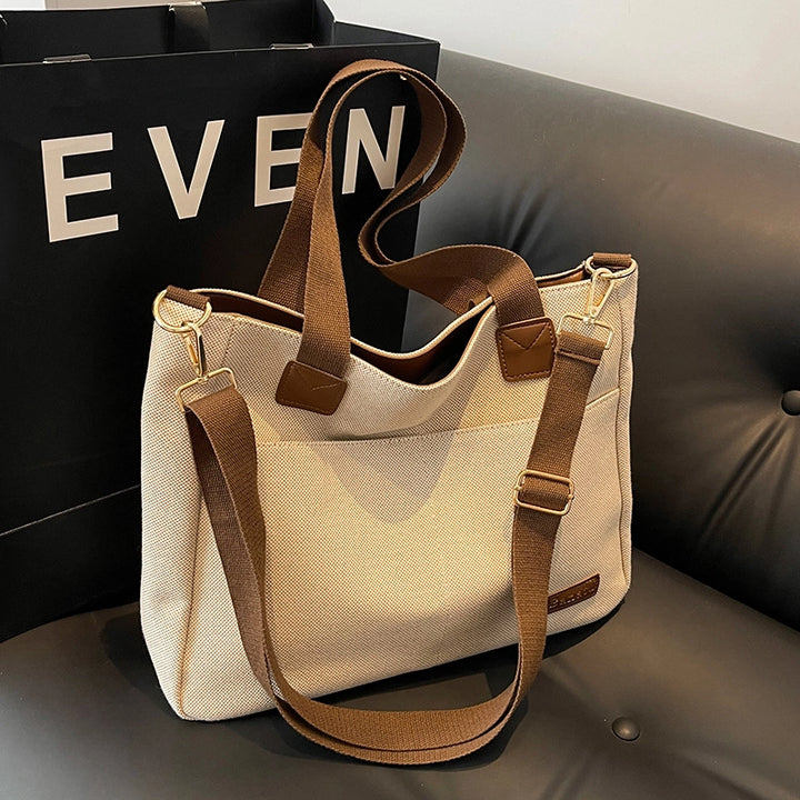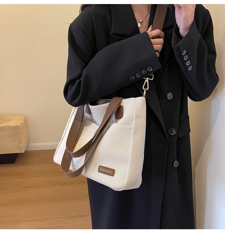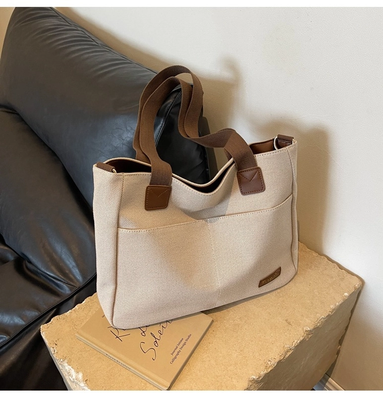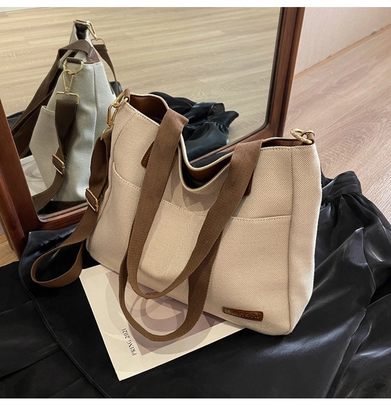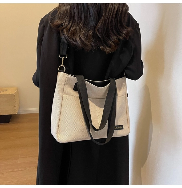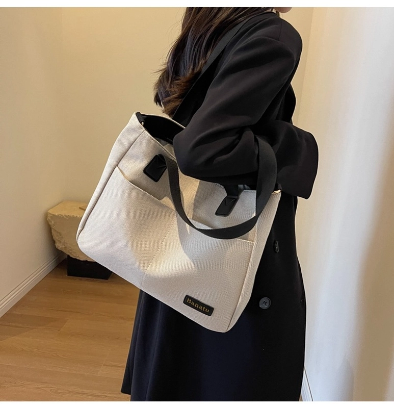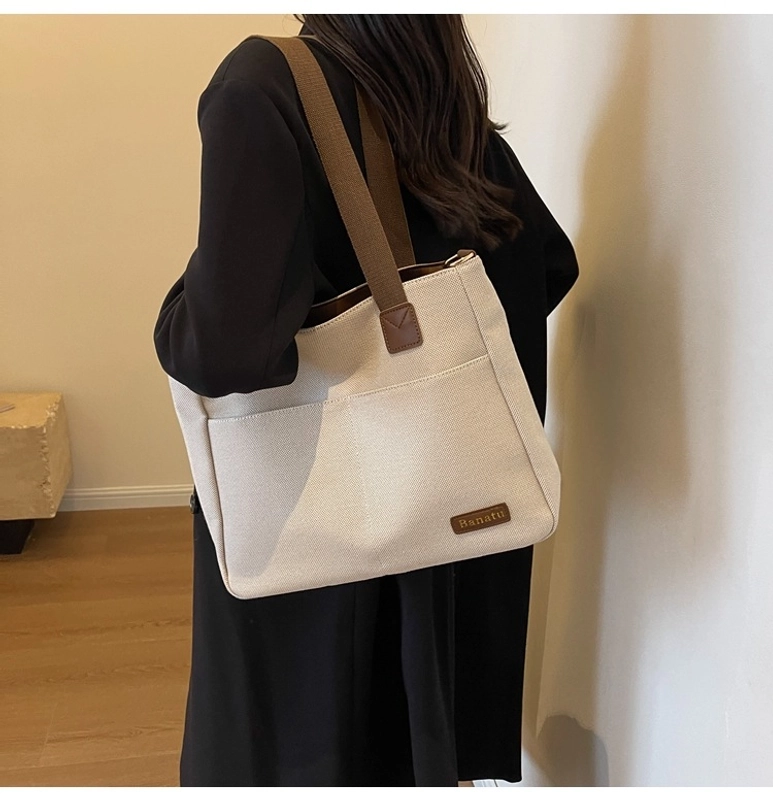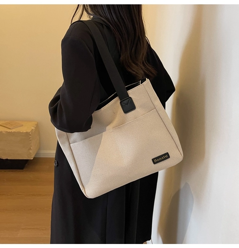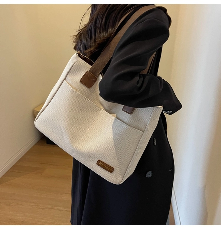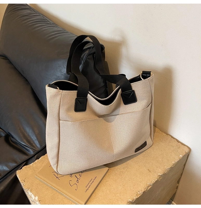 Women'S Large Canvas Solid Color Streetwear Square Zipper Tote Bag