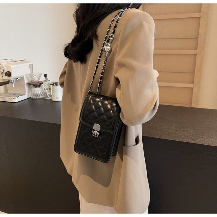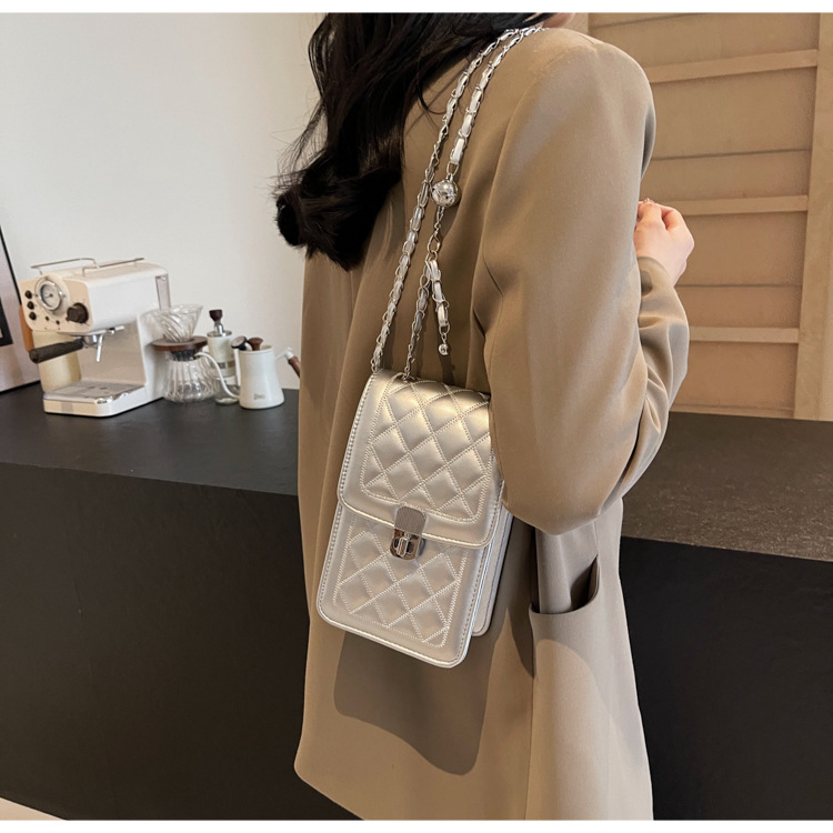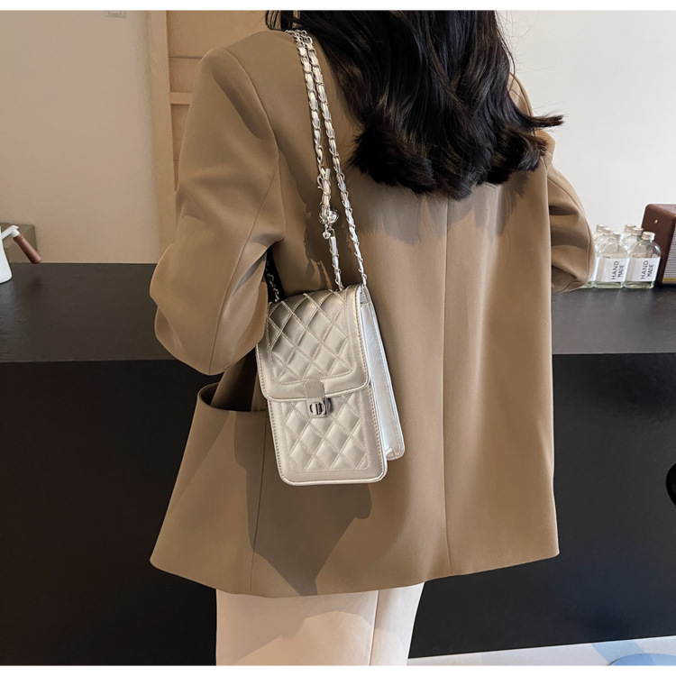 Women'S Medium Pu Leather Solid Color Lingge Streetwear Square Flip Cover Shoulder Bag Crossbody Bag