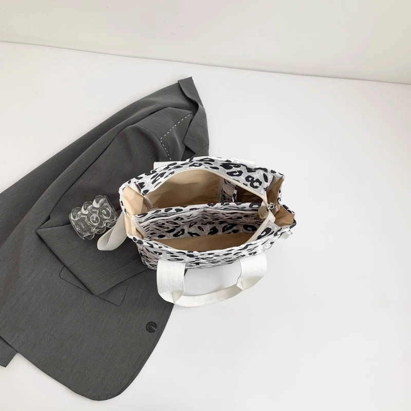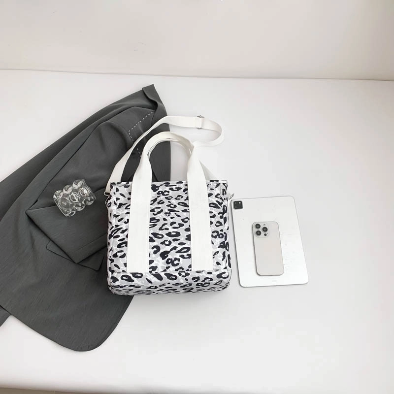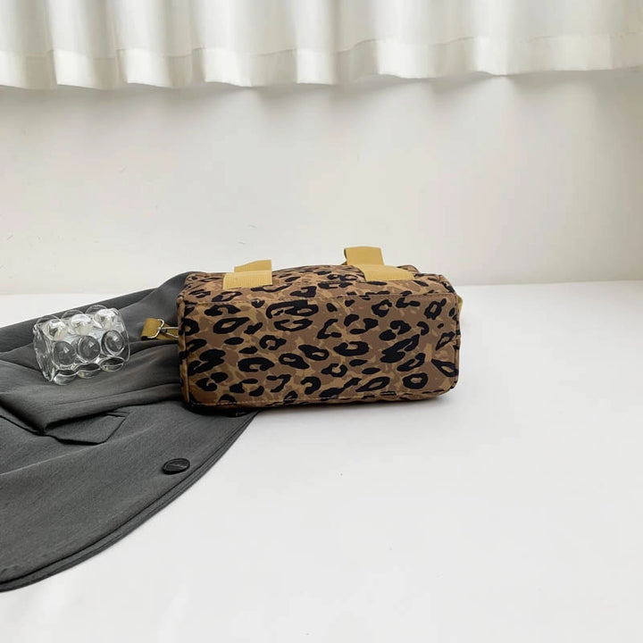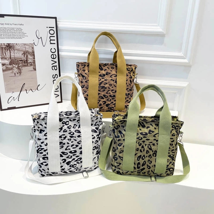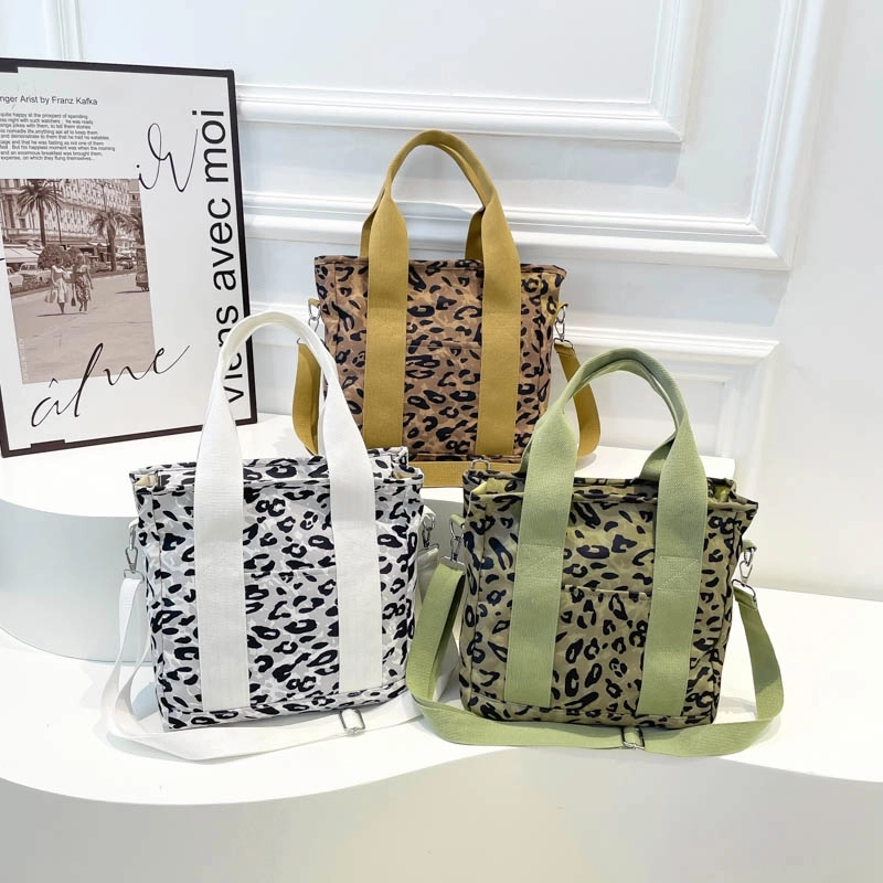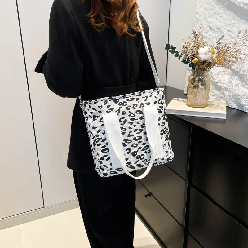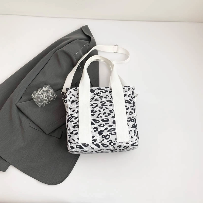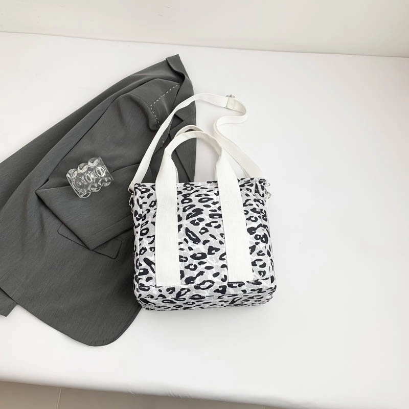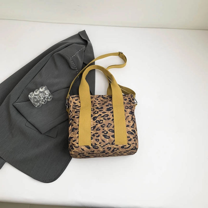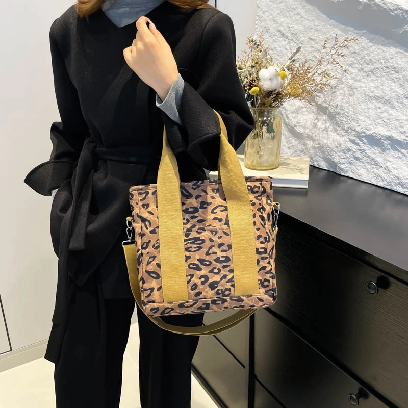 Women'S Nylon Leopard Classic Style Square Zipper Tote Bag