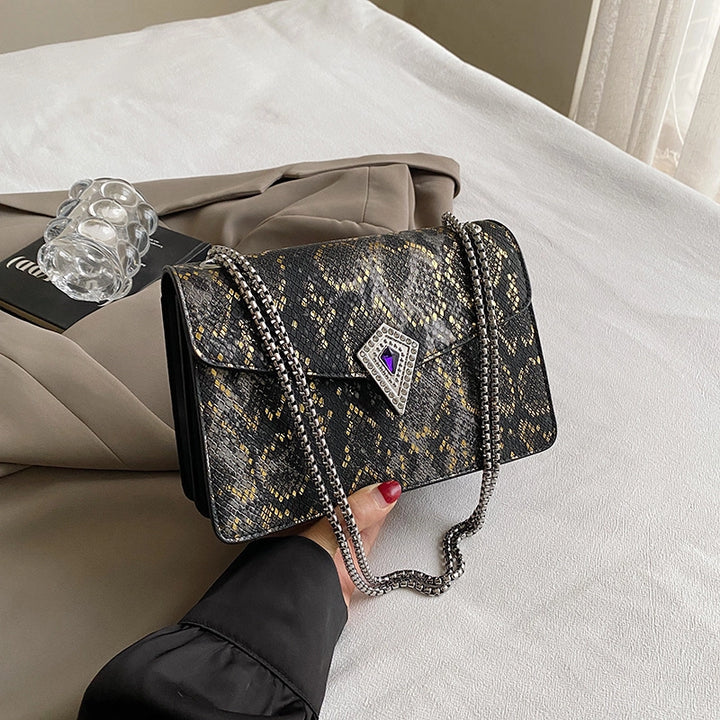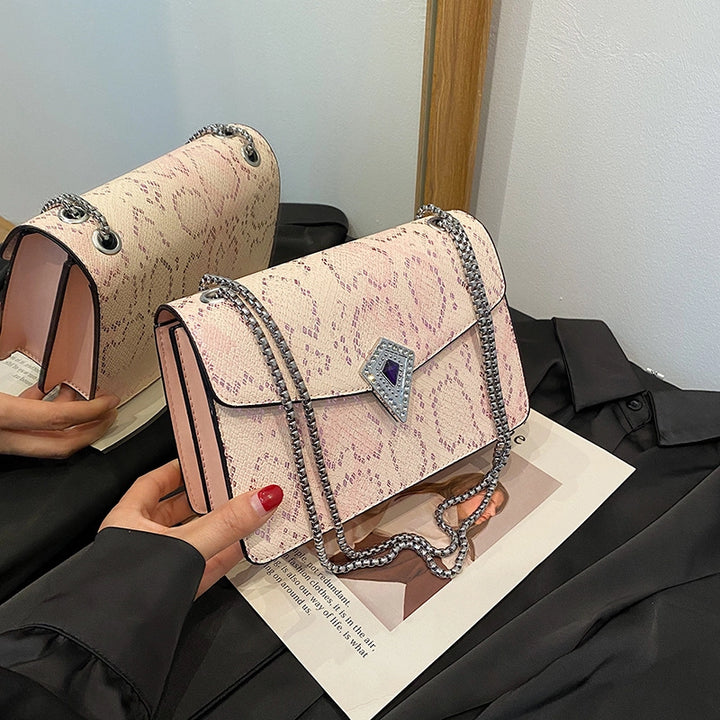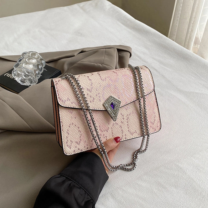 Women'S Small Pu Leather Snakeskin Elegant Square Magnetic Buckle Crossbody Bag