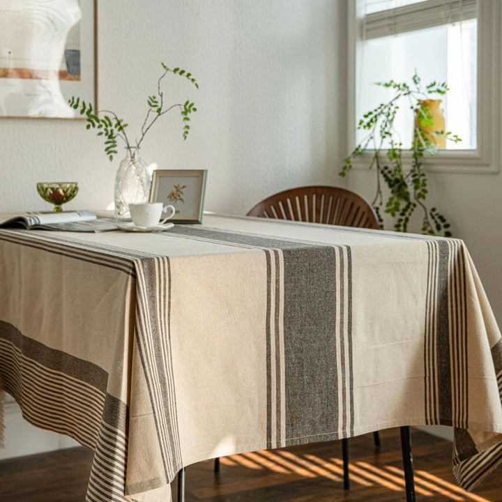 Yi Qiyun Striped Tablecloth Brown Contrast Color Japanese Table Cloth Coffee Table Cloth Fabric Rectangular Factory Direct Supply