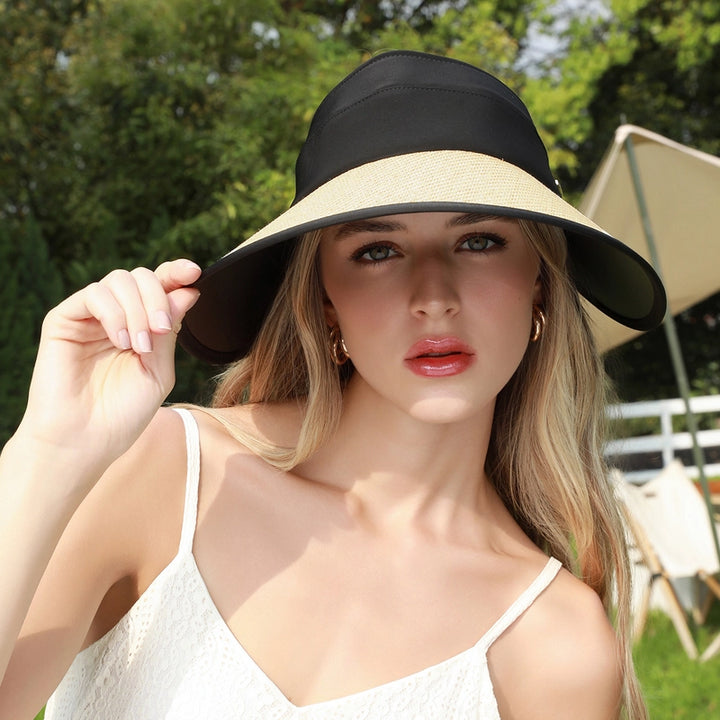 Women'S Casual Minimalist Color Block Big Eaves Sun Hat