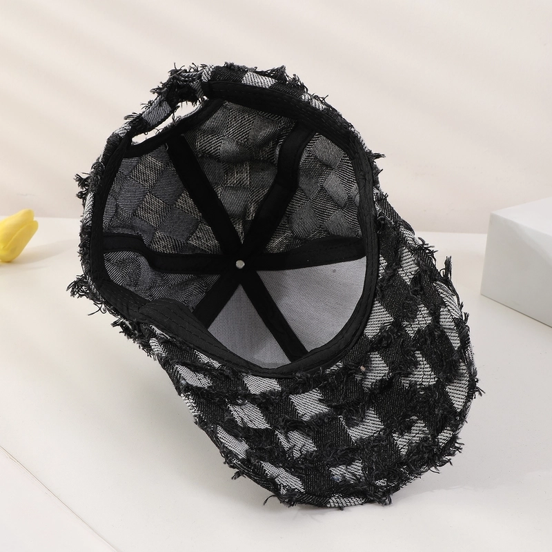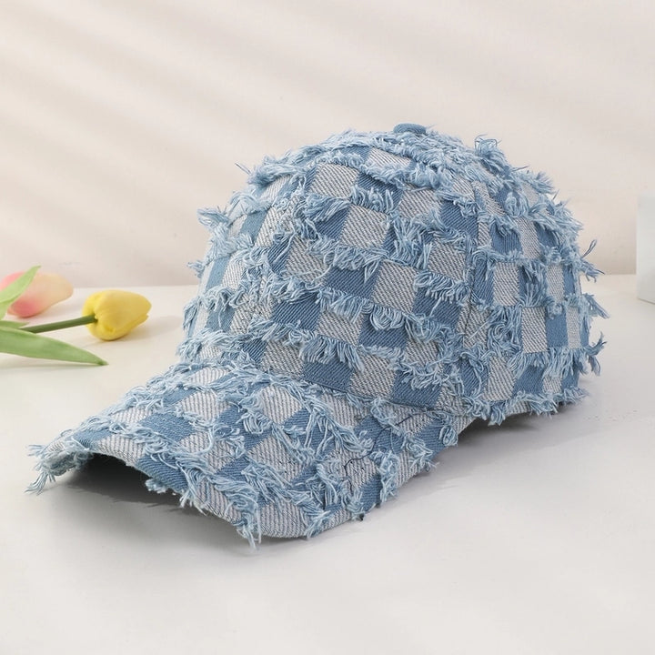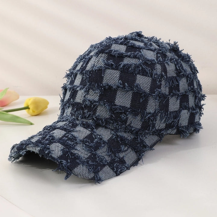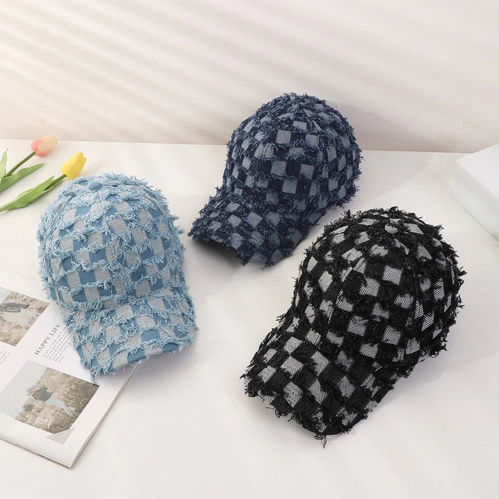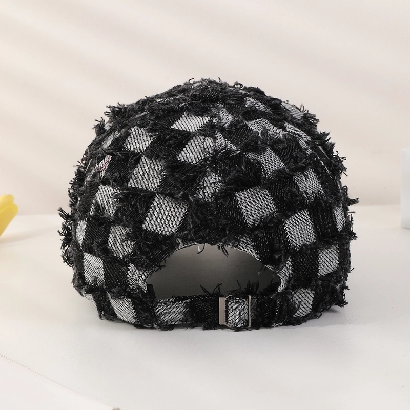 Women'S Casual Vintage Style Commute Checkerboard Raw Hem Curved Eaves Baseball Cap