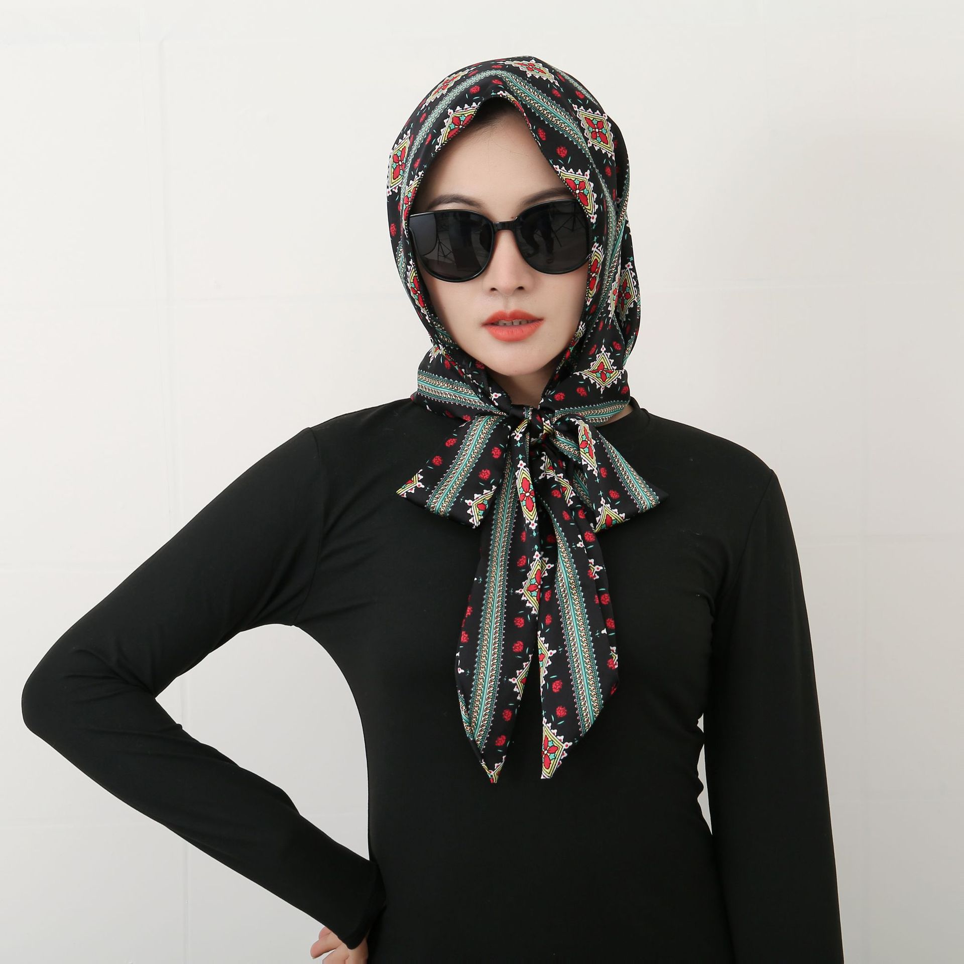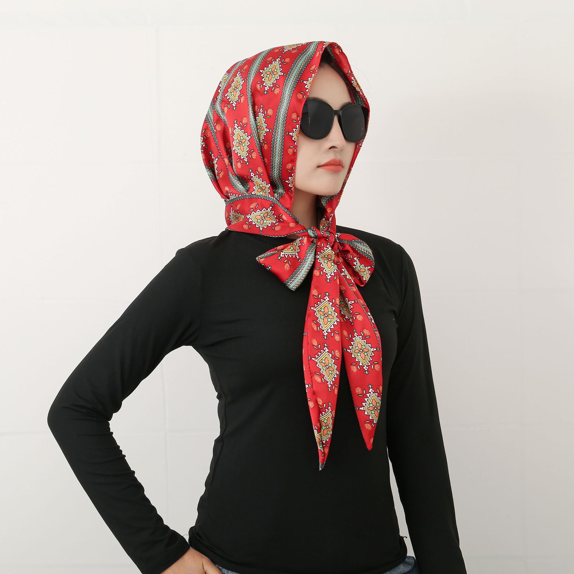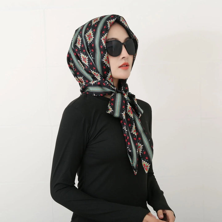 Women'S Elegant Retro Flower Satin Printing Silk Scarf