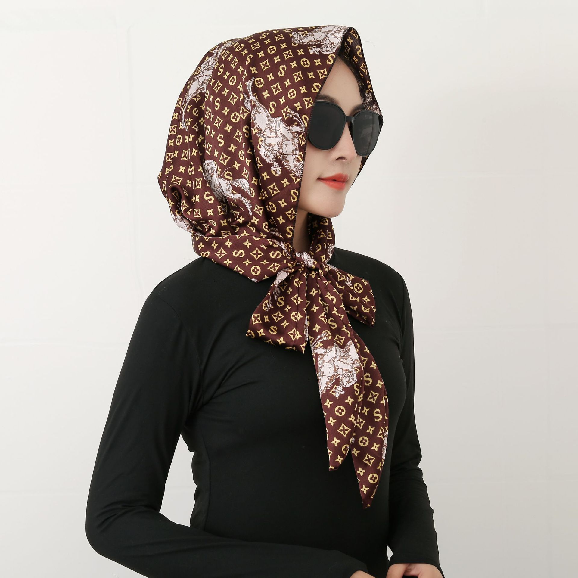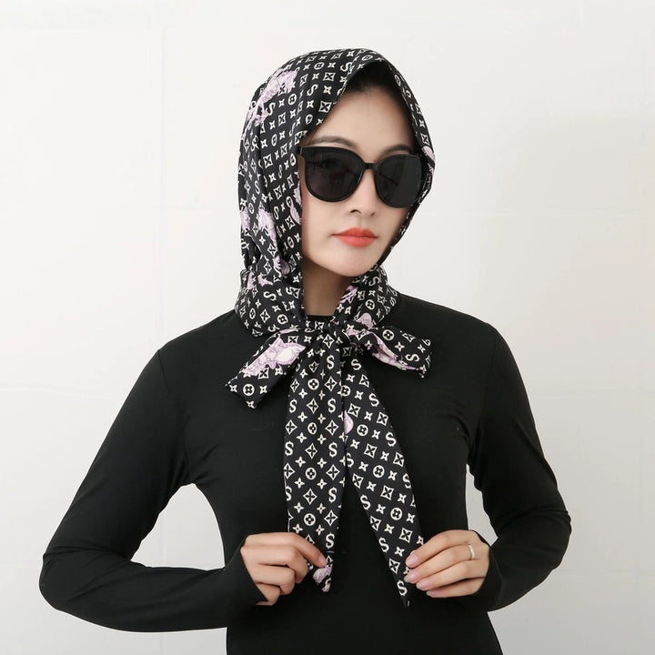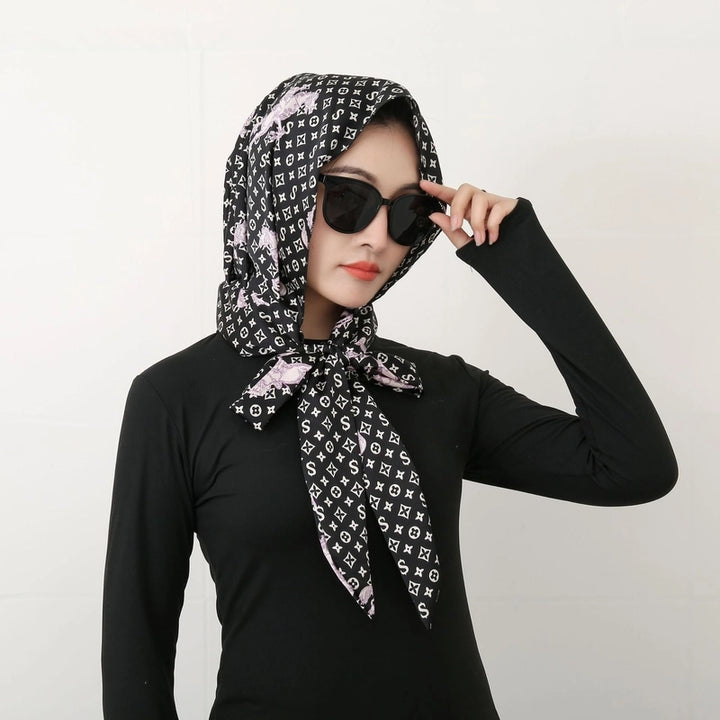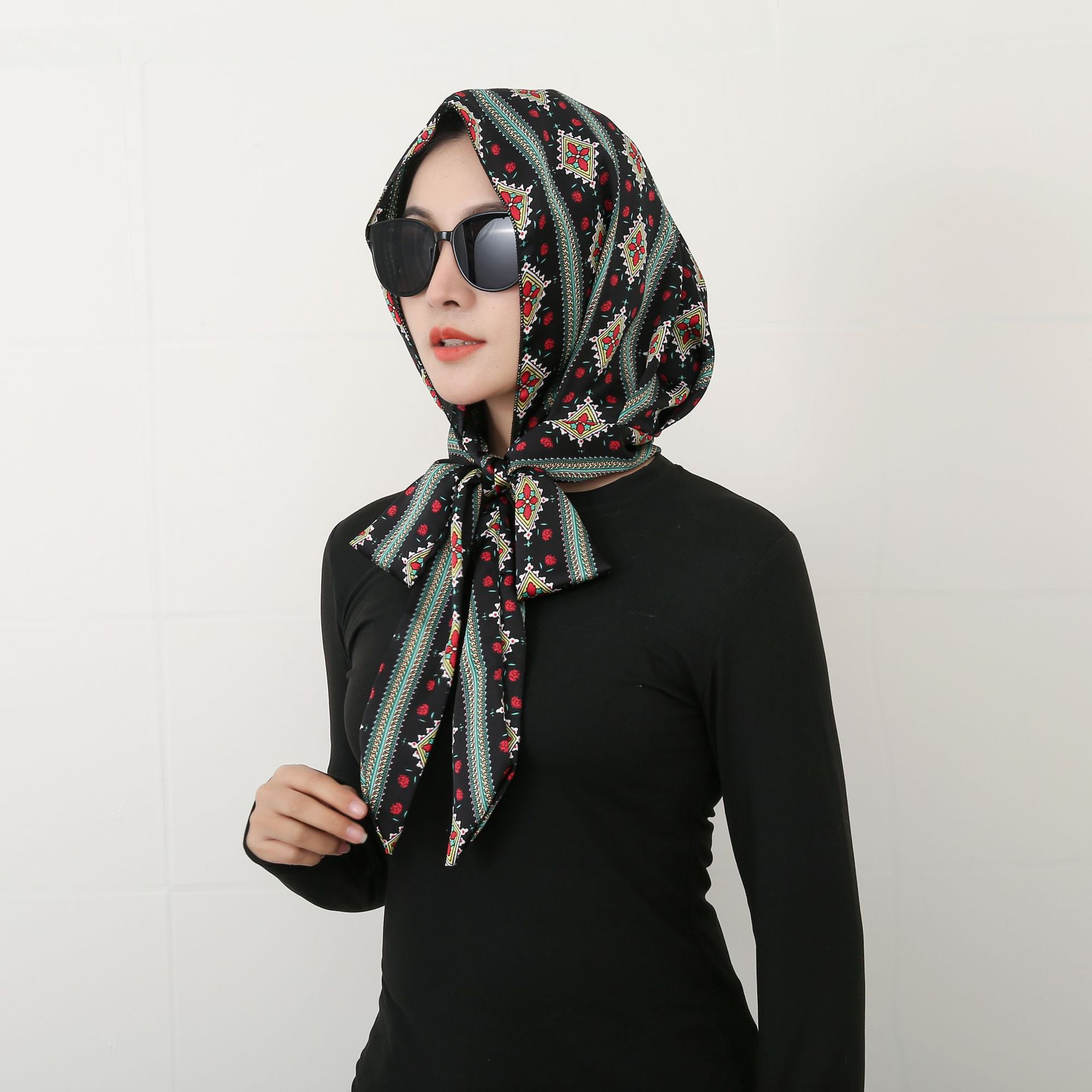 Women'S Elegant Retro Flower Satin Printing Silk Scarf