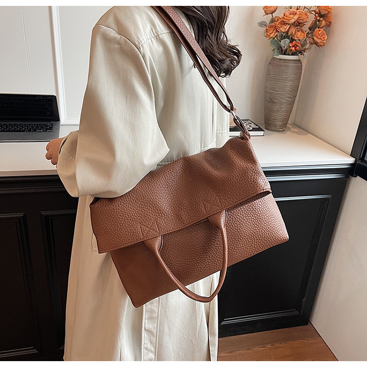 Women'S Large Pu Leather Solid Color Streetwear Square Magnetic Buckle Shoulder Bag Handbag Crossbody Bag