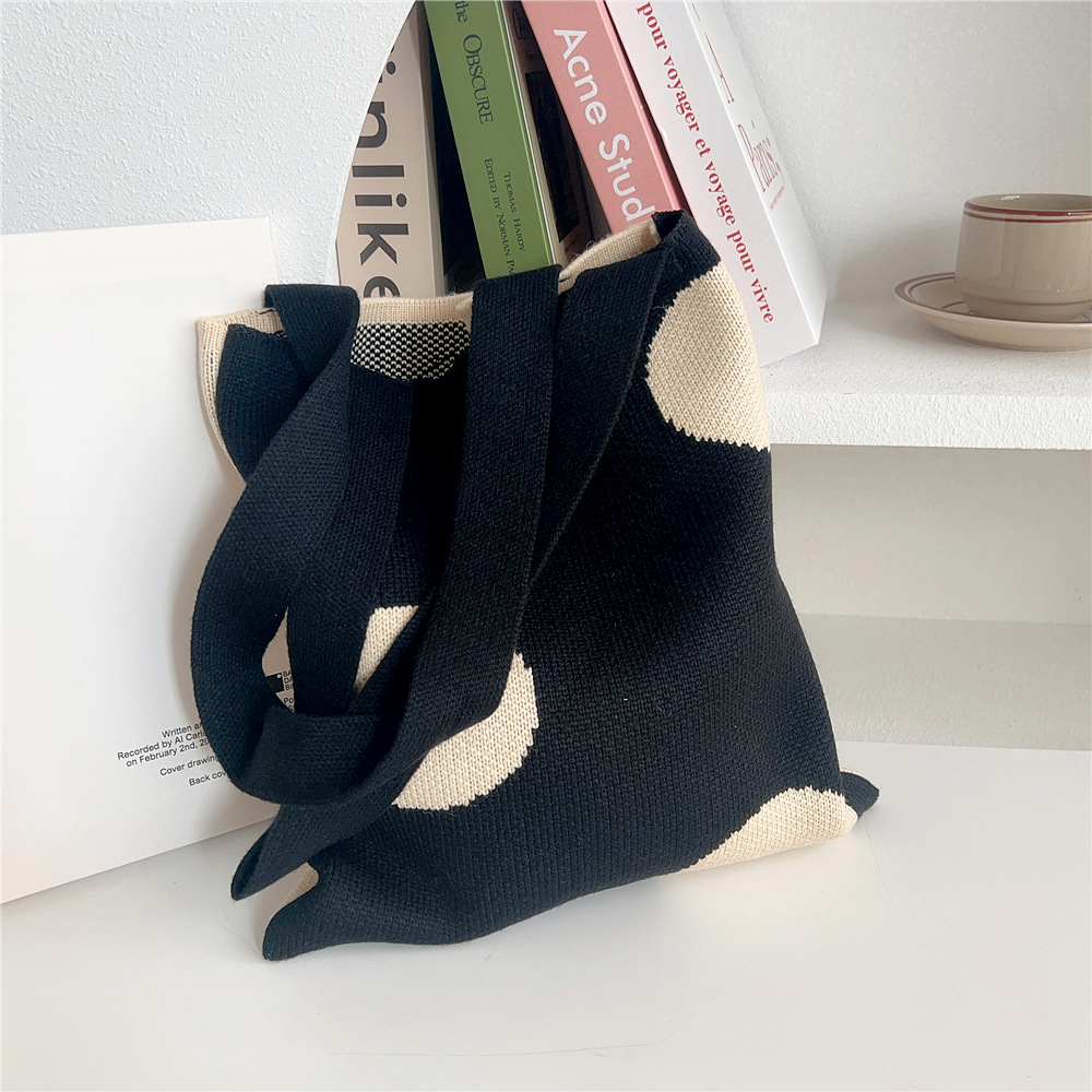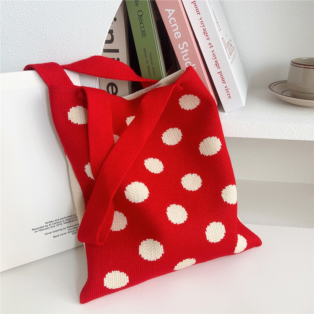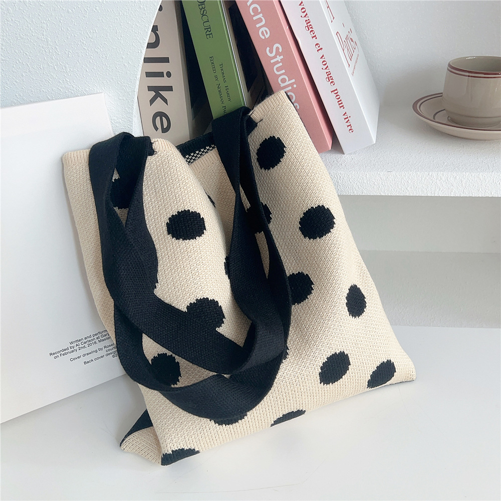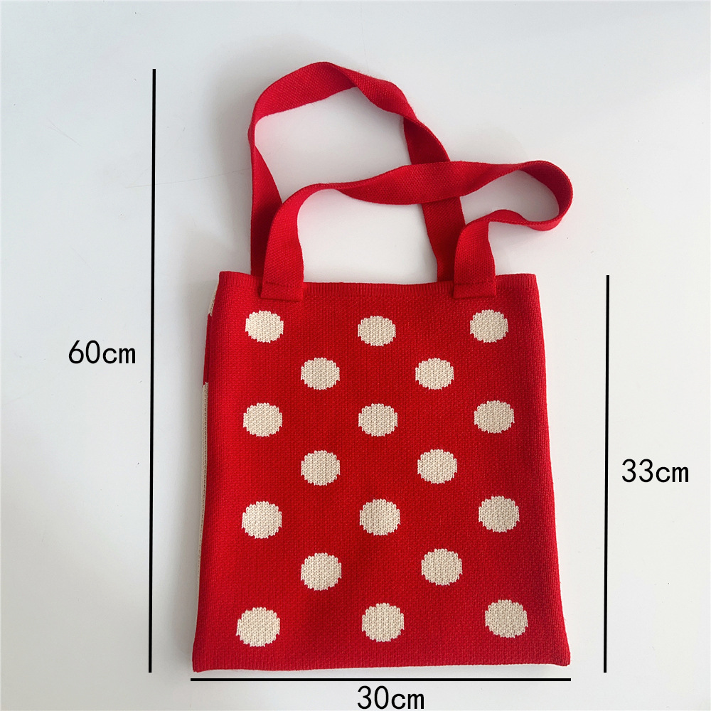 Women'S Medium Knit Polka Dots Vintage Style Classic Style Square Open Shoulder Bag