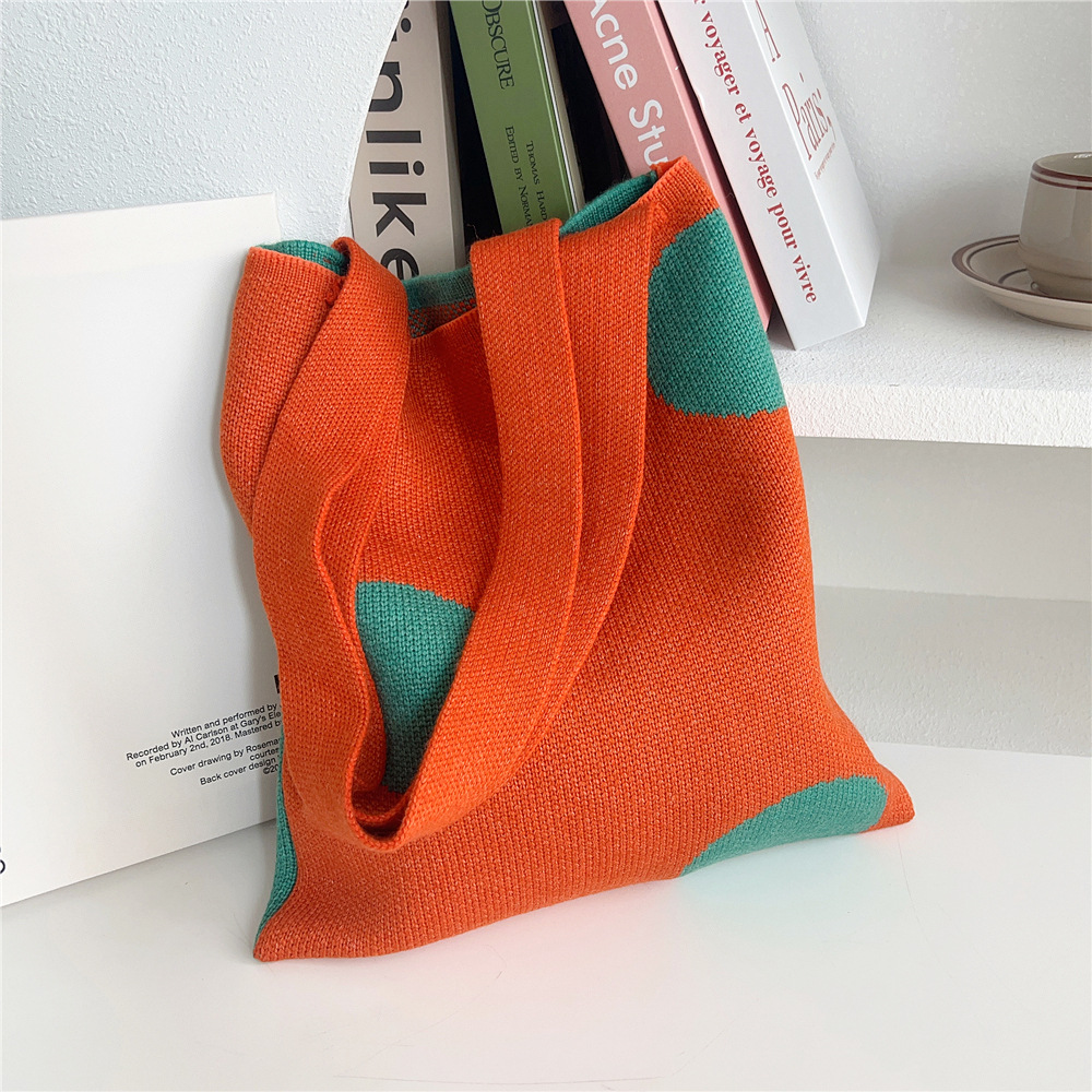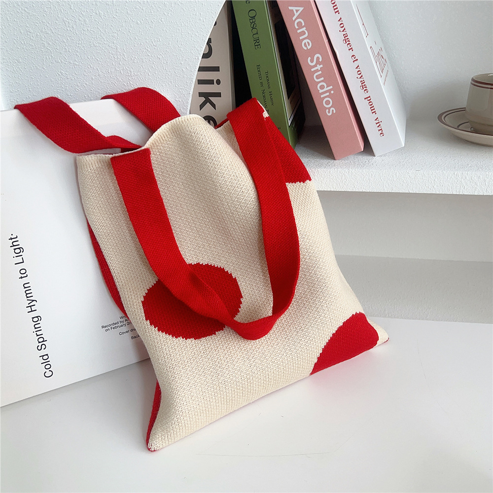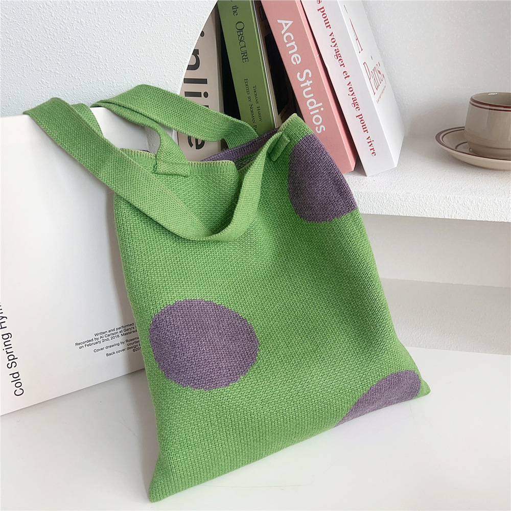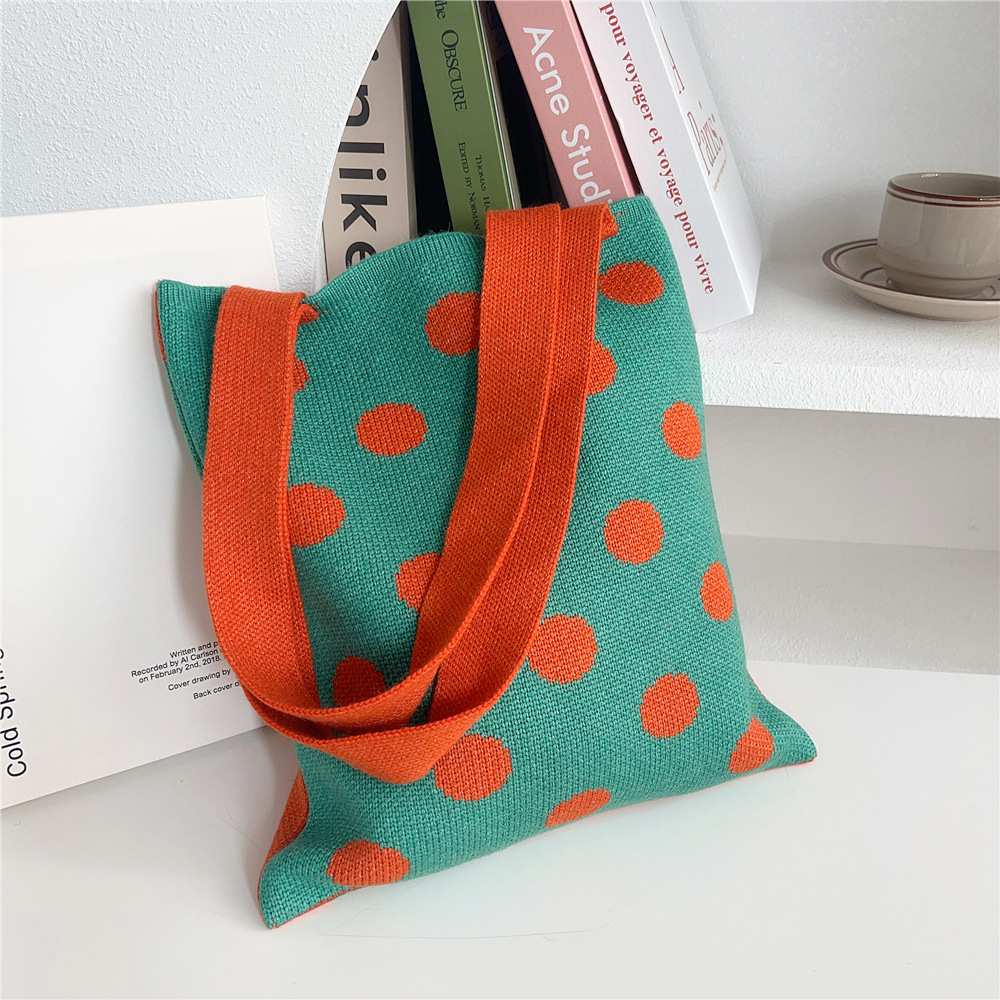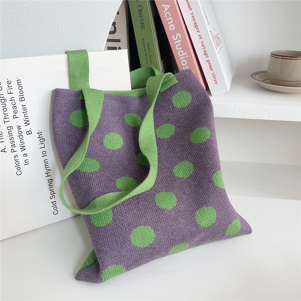 Women'S Medium Knit Polka Dots Vintage Style Classic Style Square Open Shoulder Bag