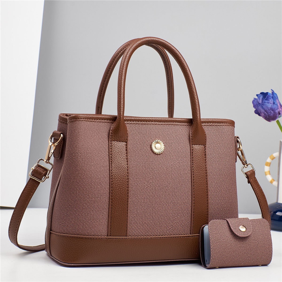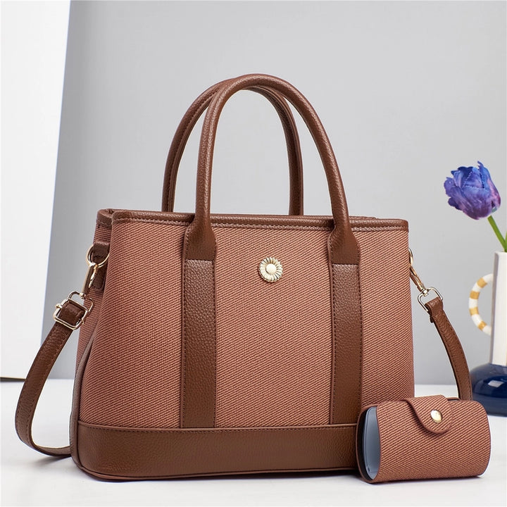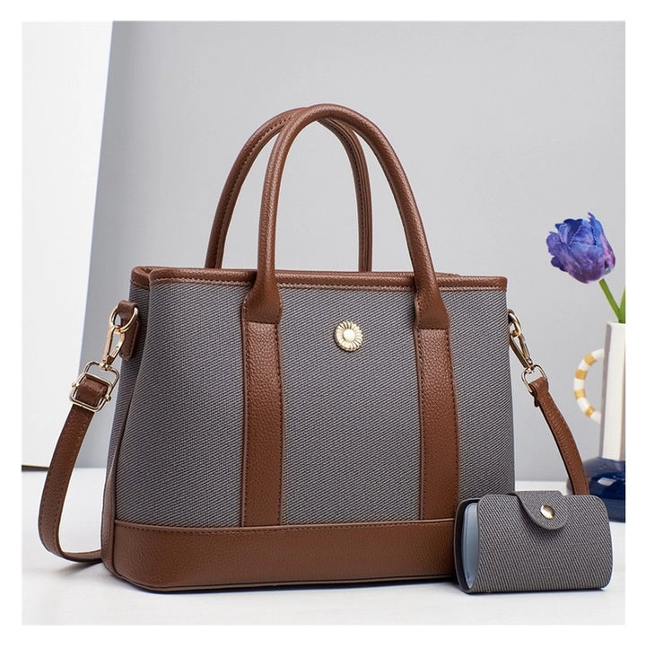 Women'S Pu Leather Color Block Elegant Classic Style Square Zipper Bag Sets