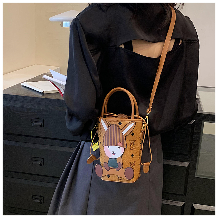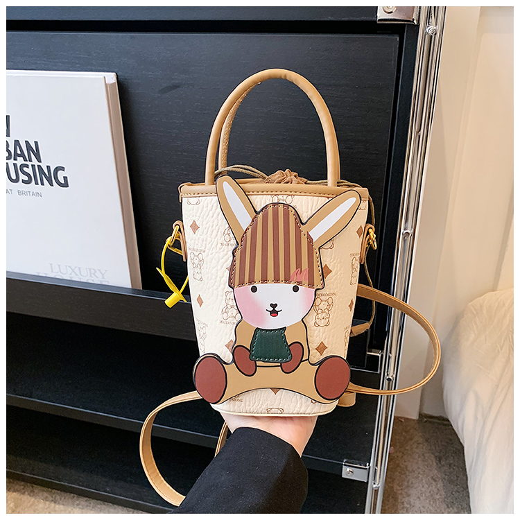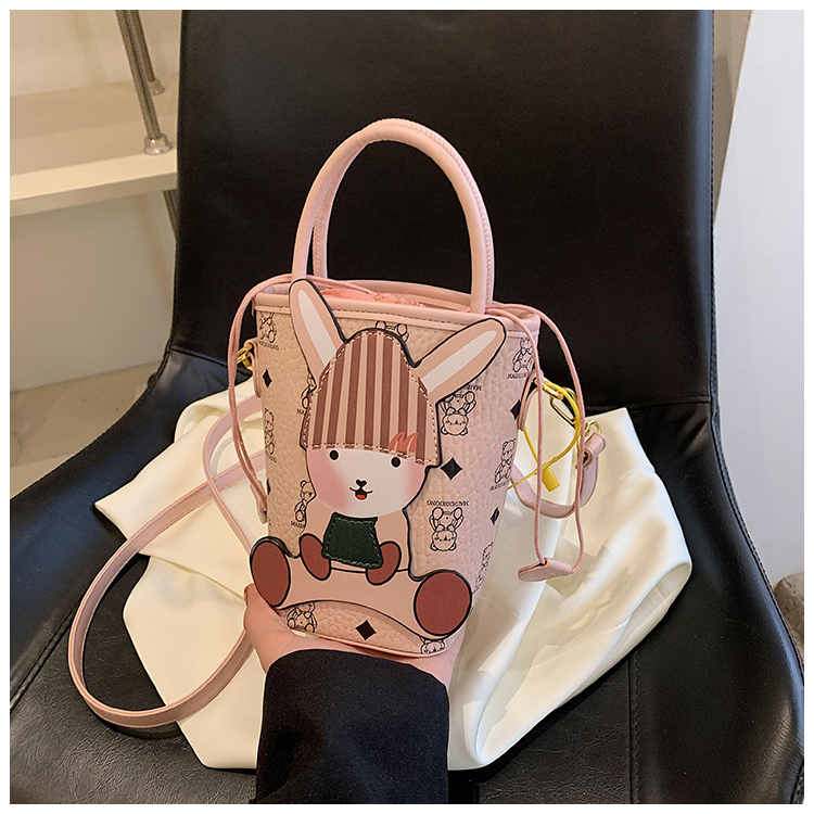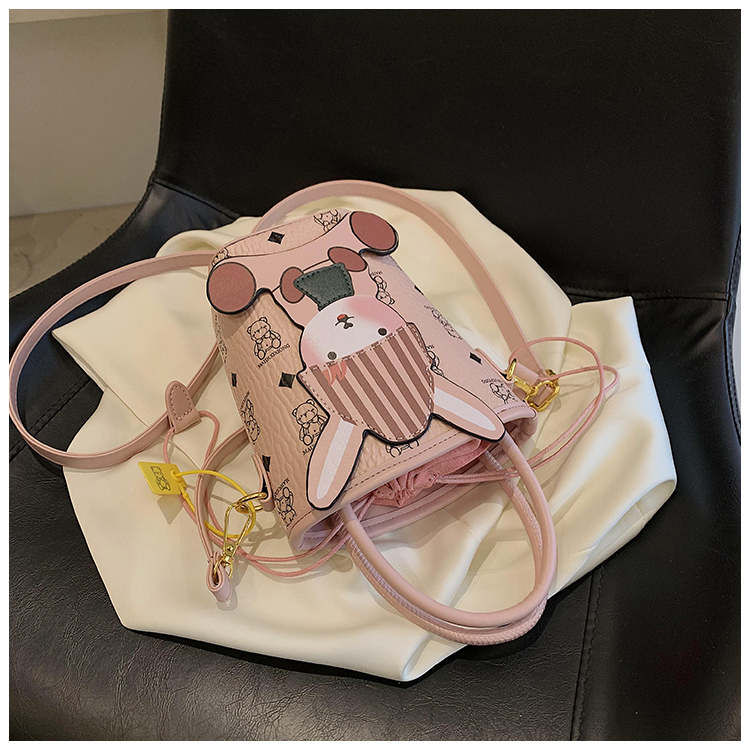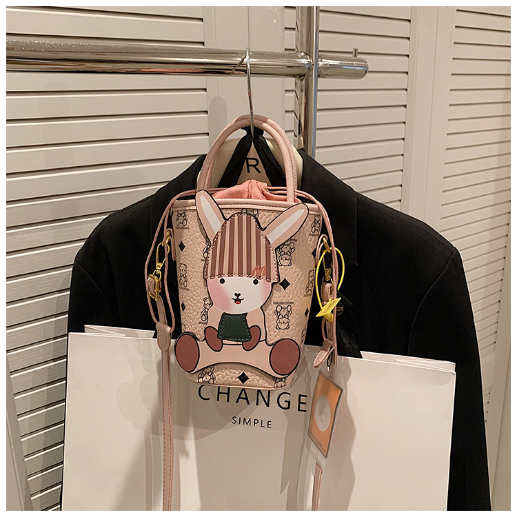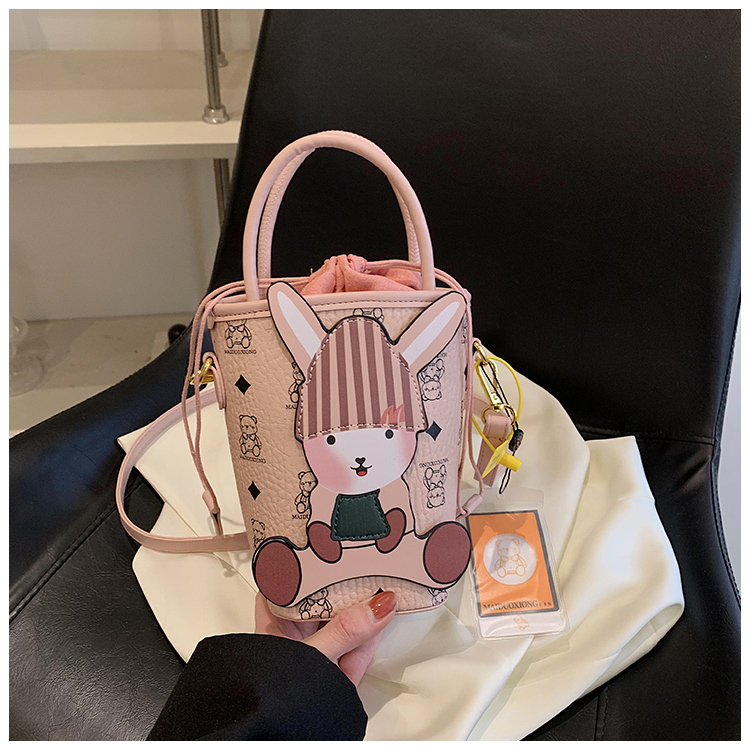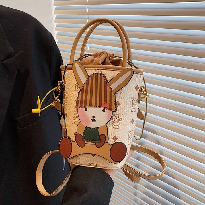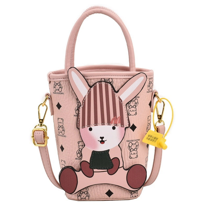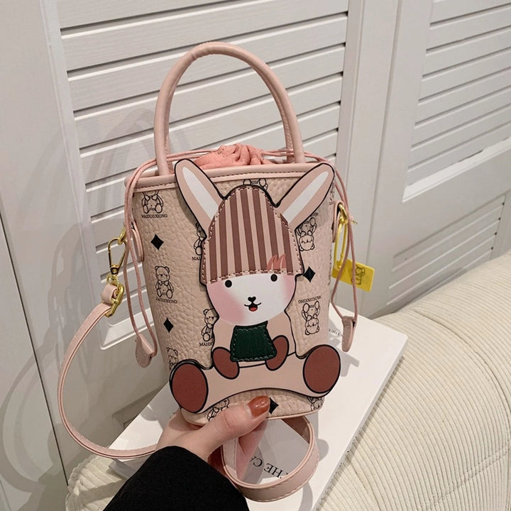 Women'S Pu Leather Rabbit Cute Bucket String Shoulder Bag Crossbody Bag Bucket Bag