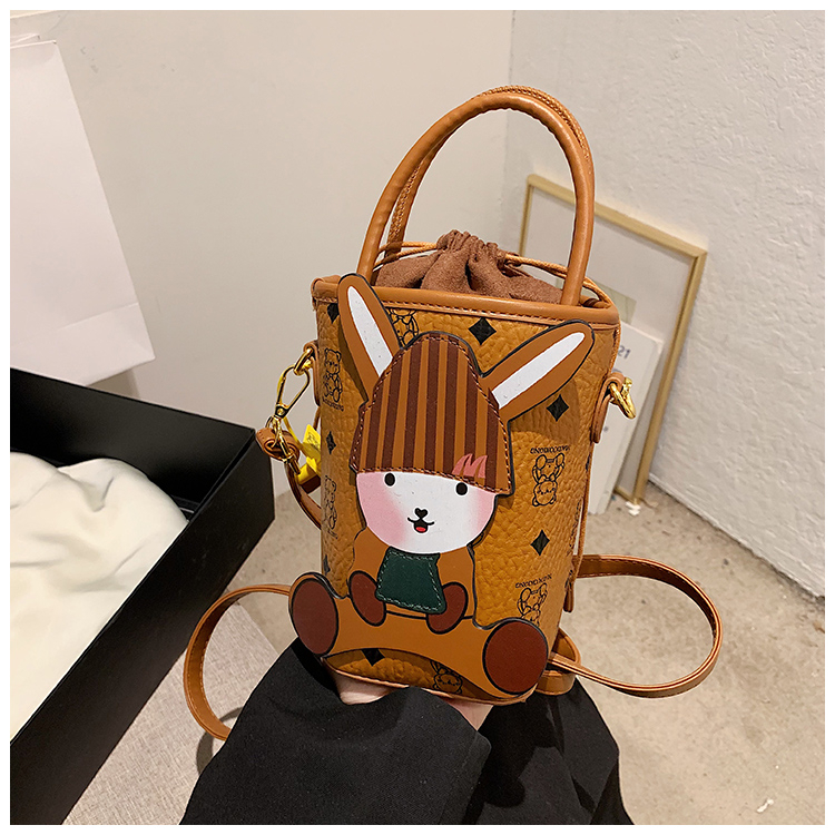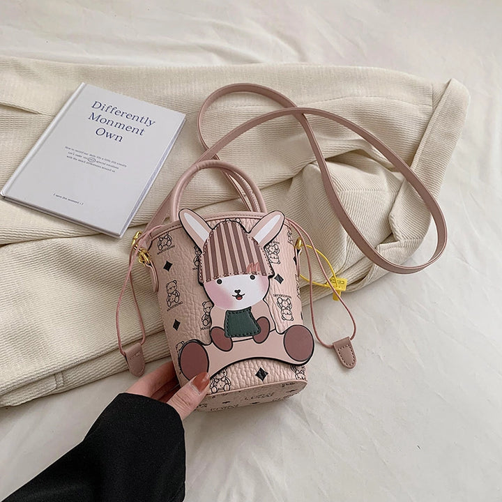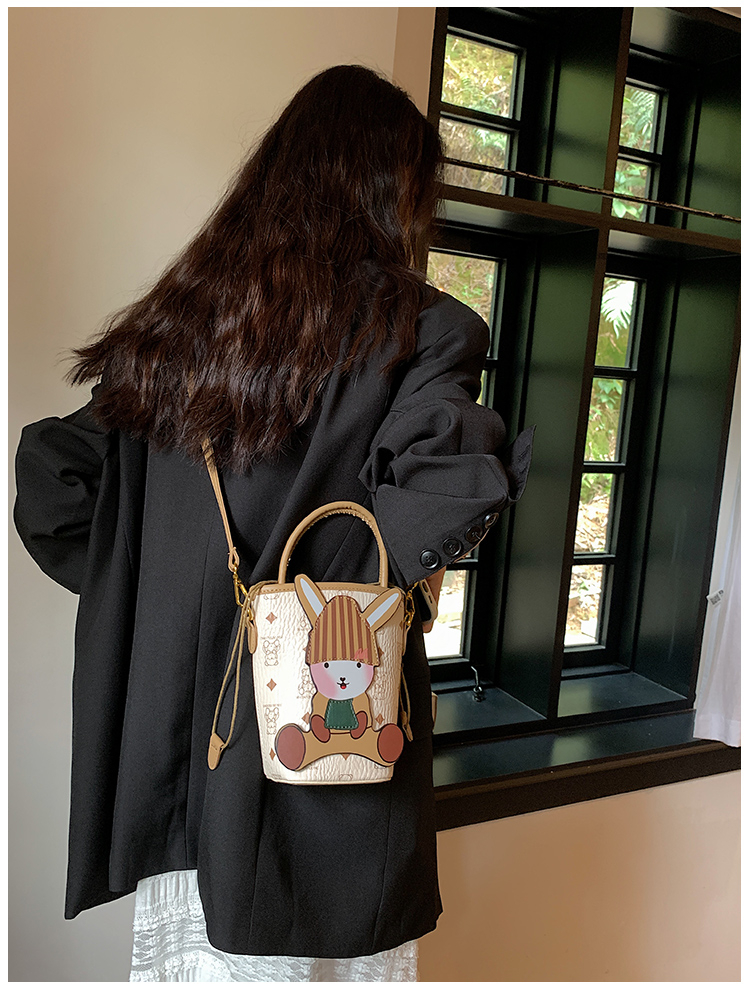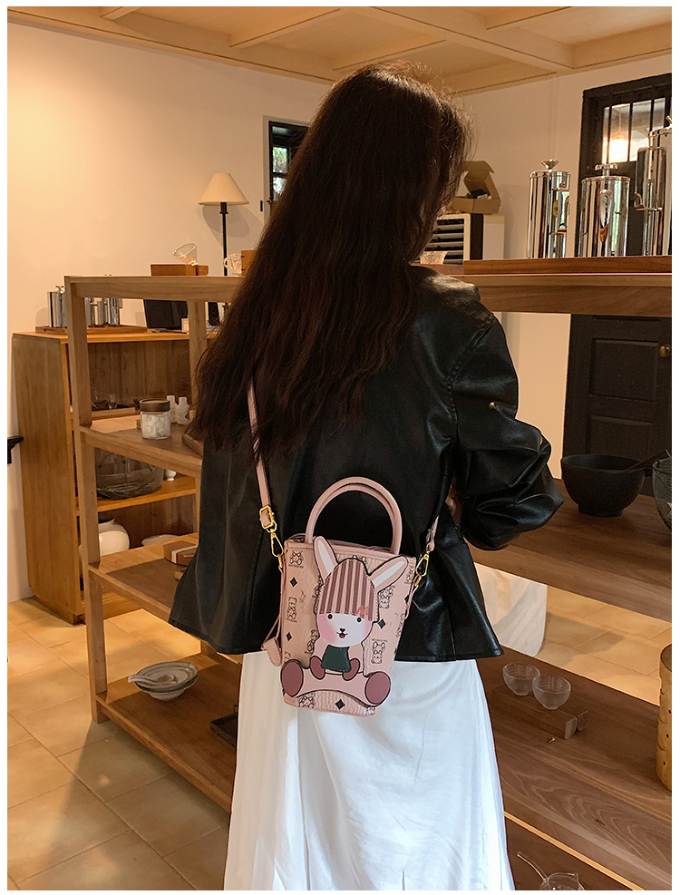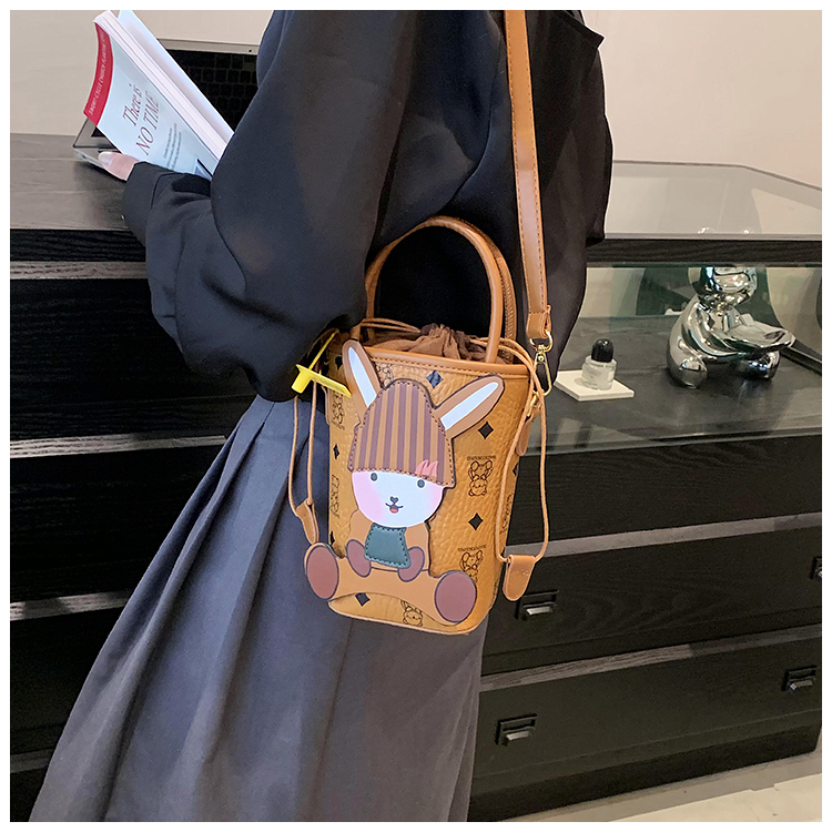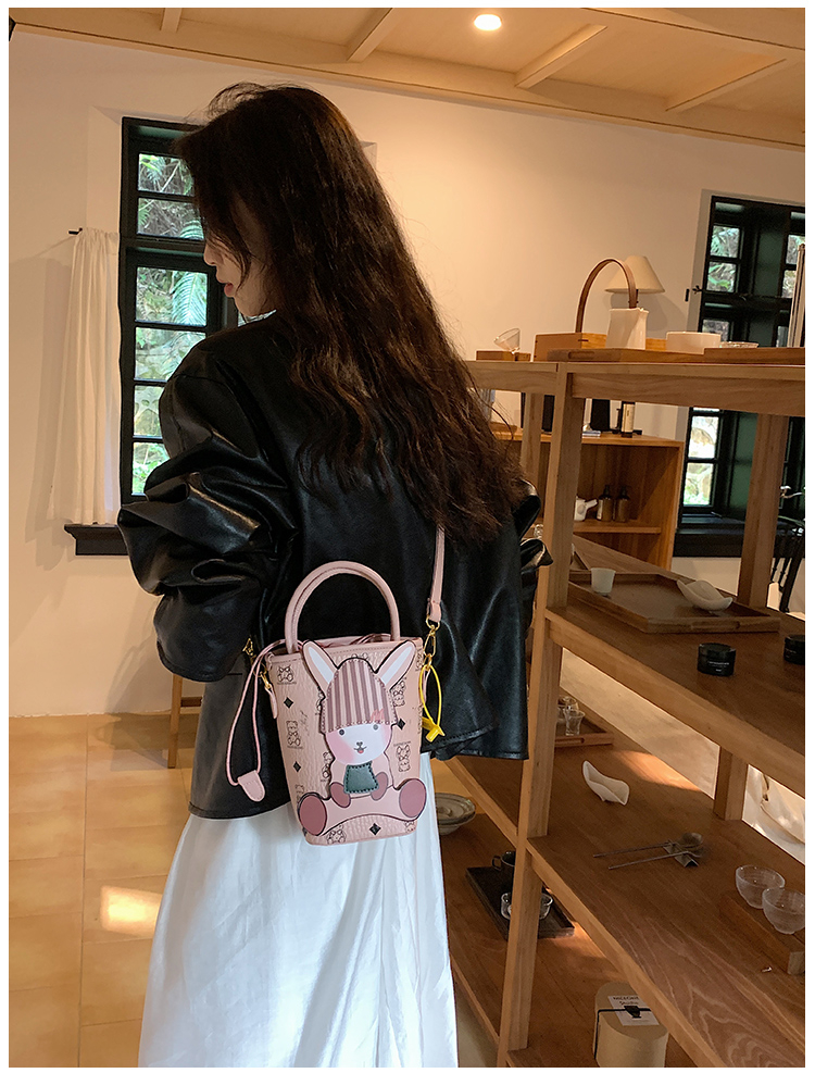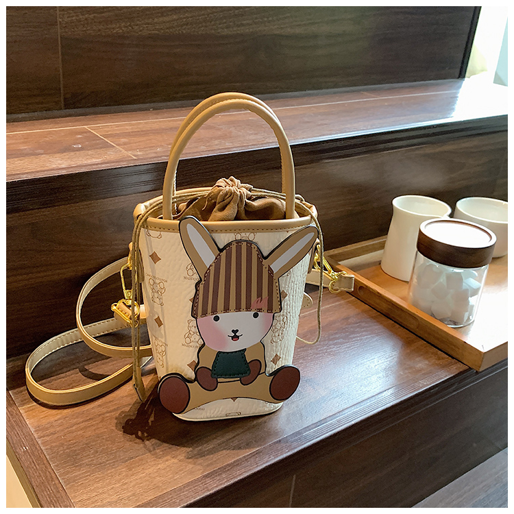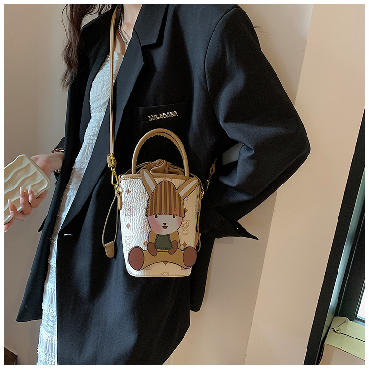 Women'S Pu Leather Rabbit Cute Bucket String Shoulder Bag Crossbody Bag Bucket Bag