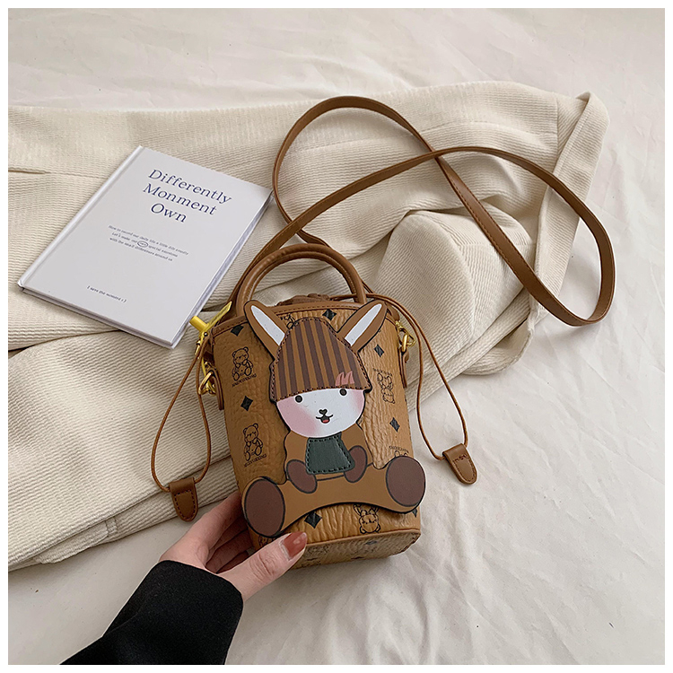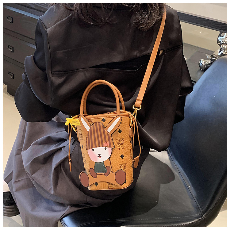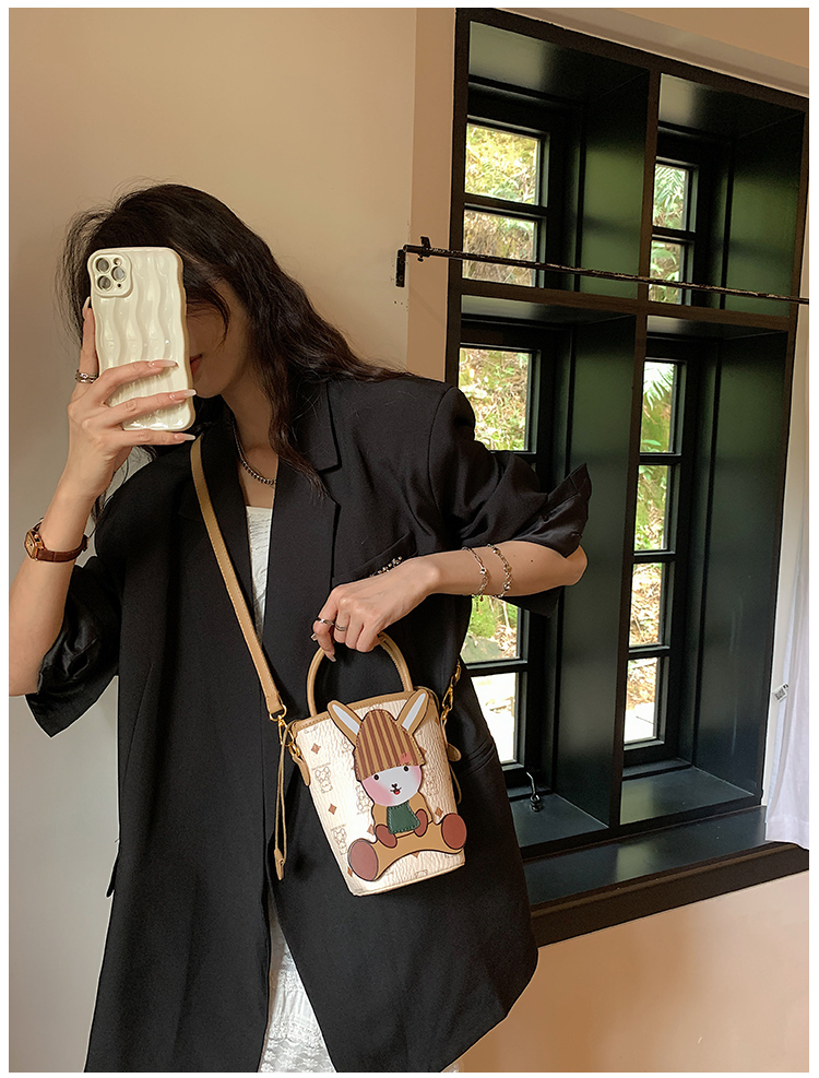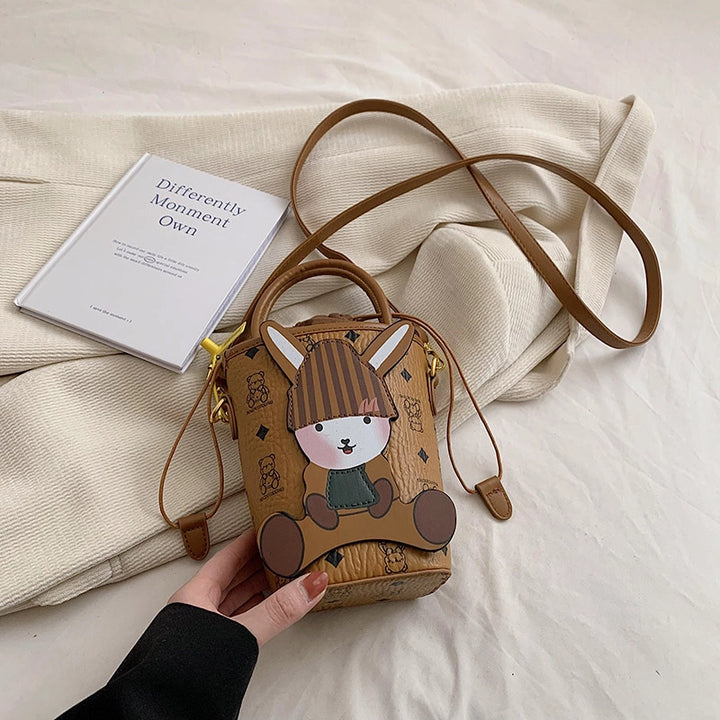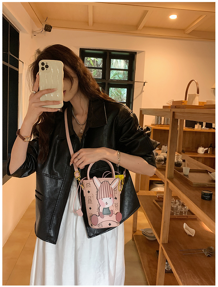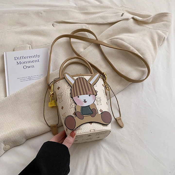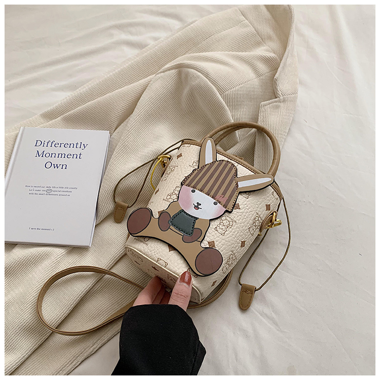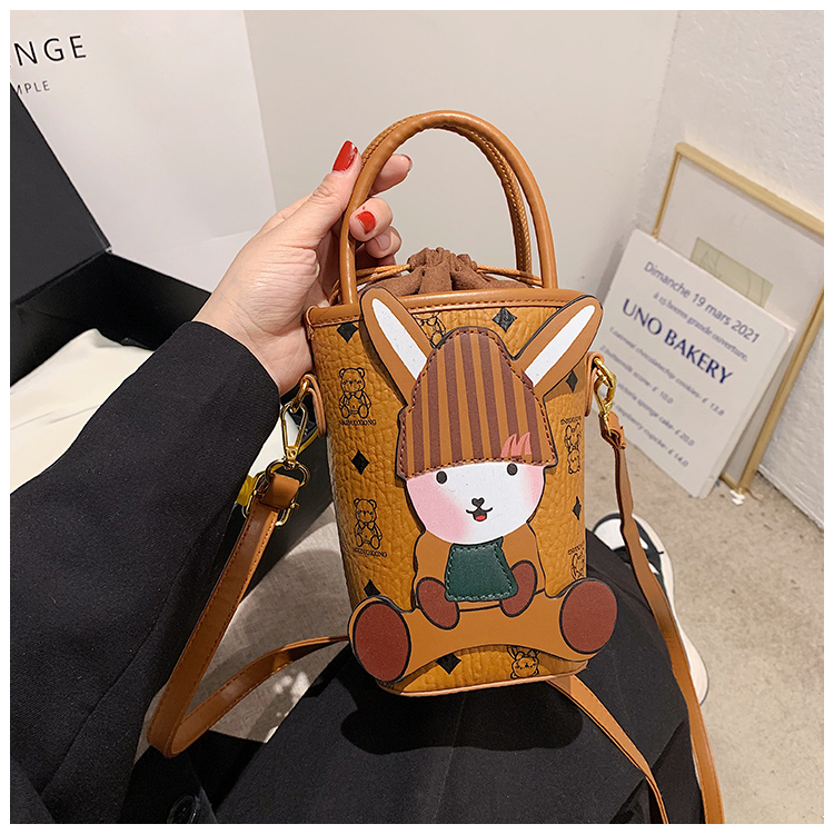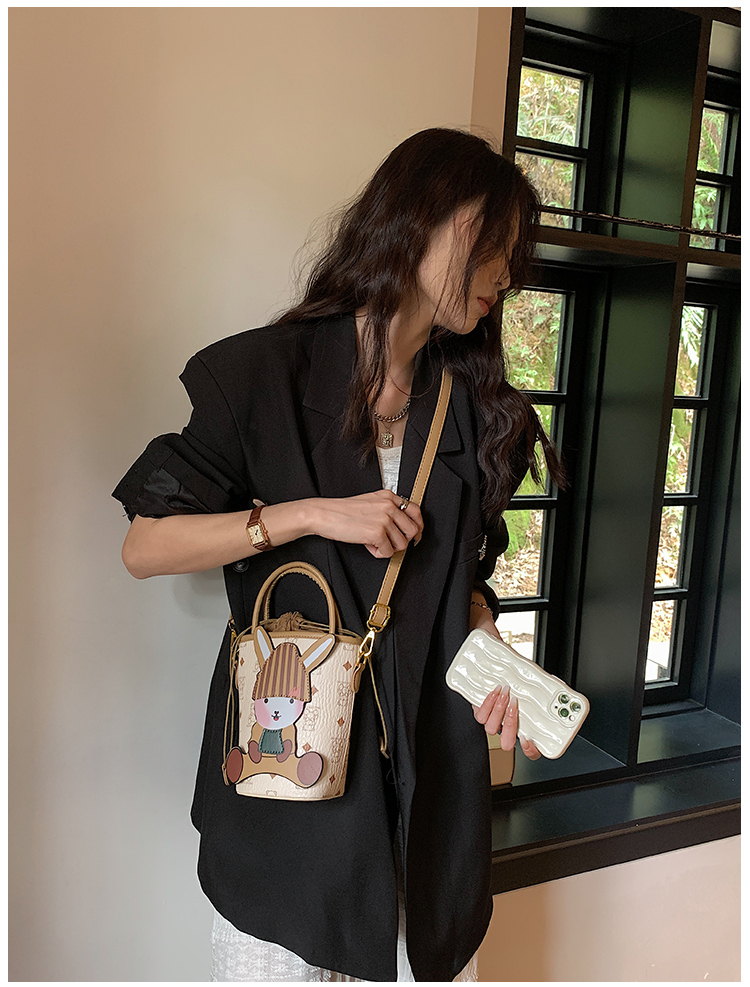 Women'S Pu Leather Rabbit Cute Bucket String Shoulder Bag Crossbody Bag Bucket Bag