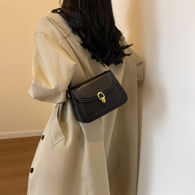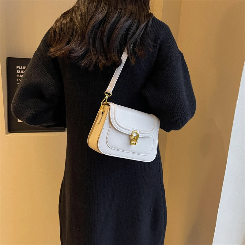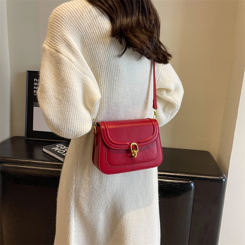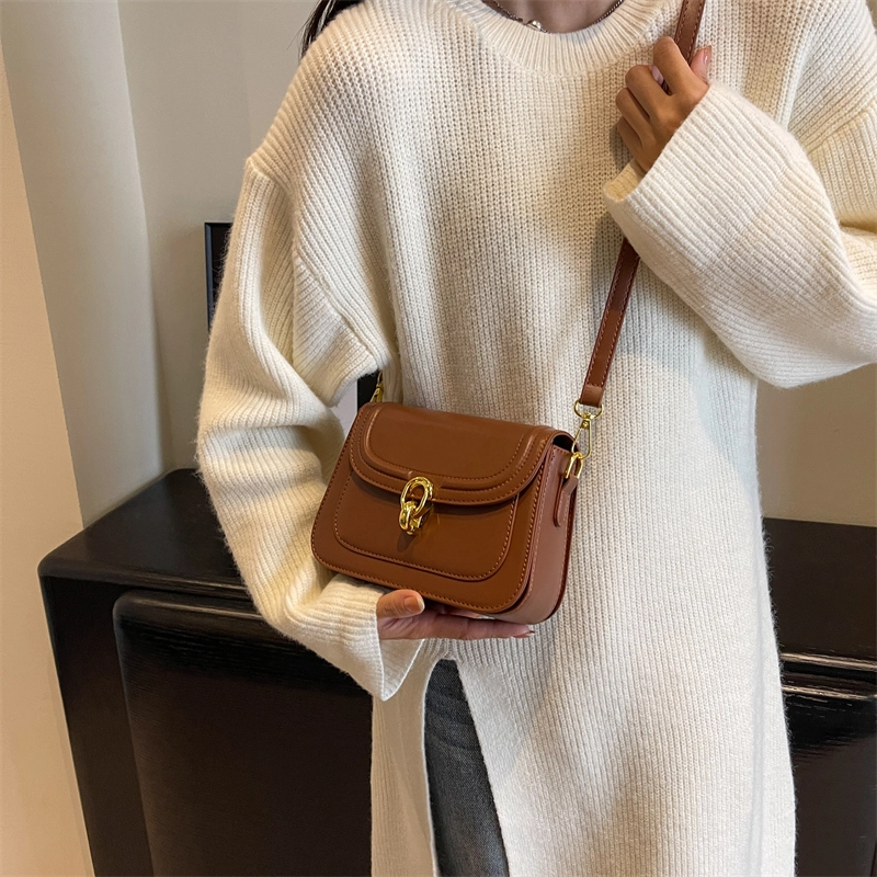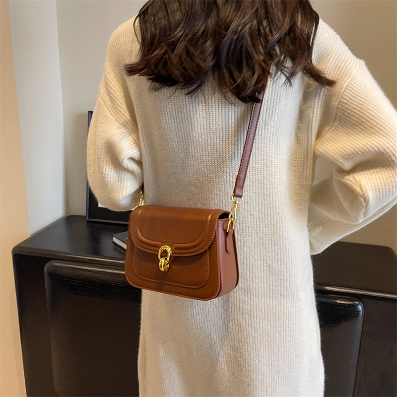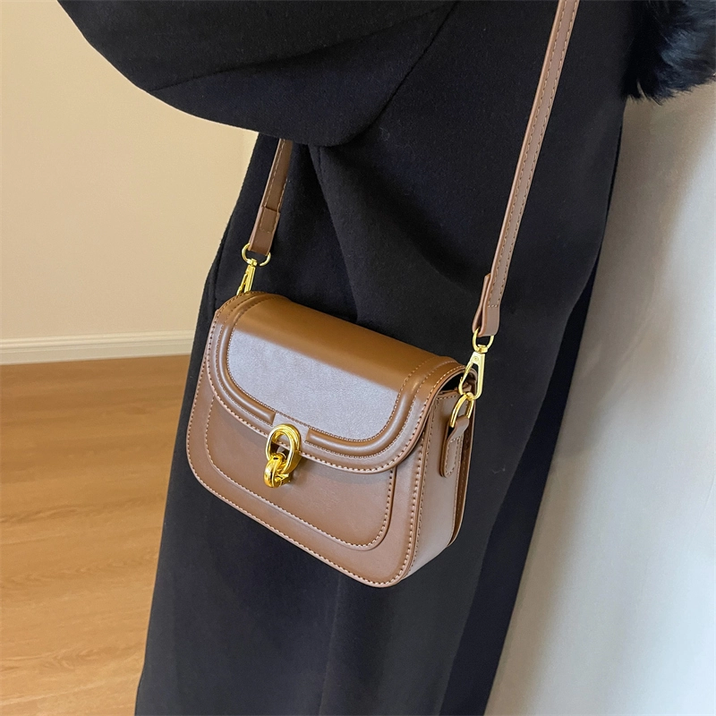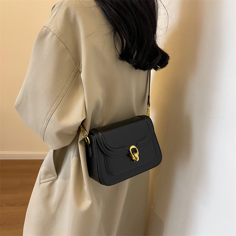 Women'S Pu Leather Solid Color Classic Style Square Lock Clasp Shoulder Bag Crossbody Bag