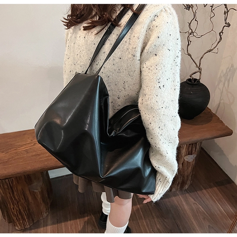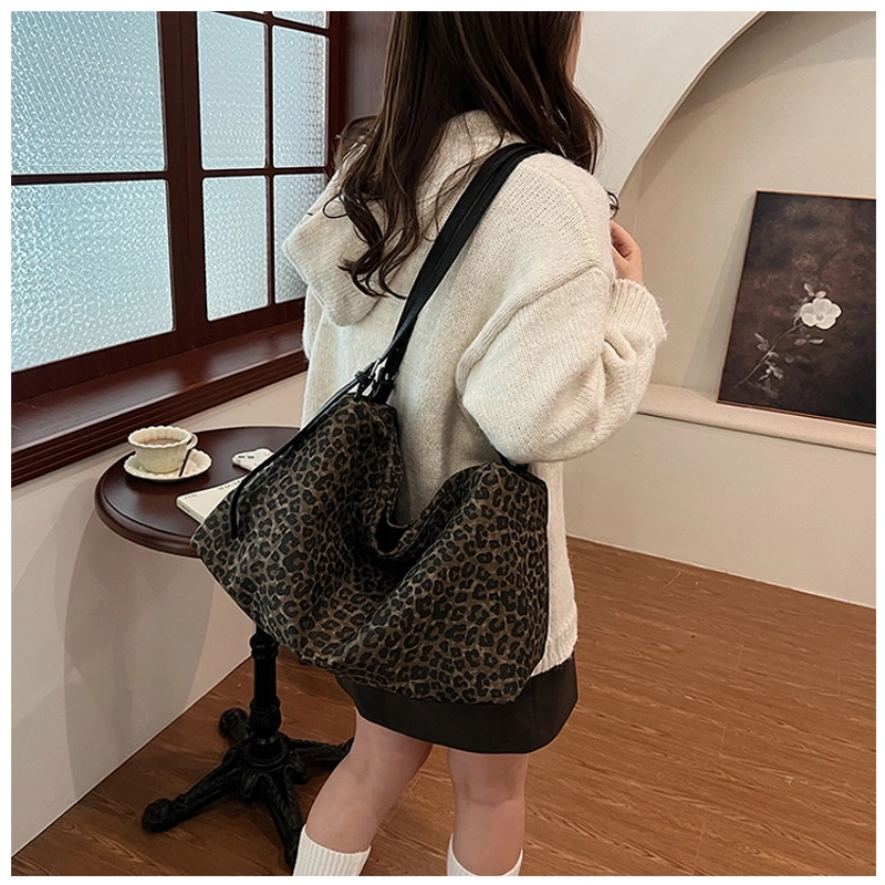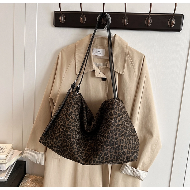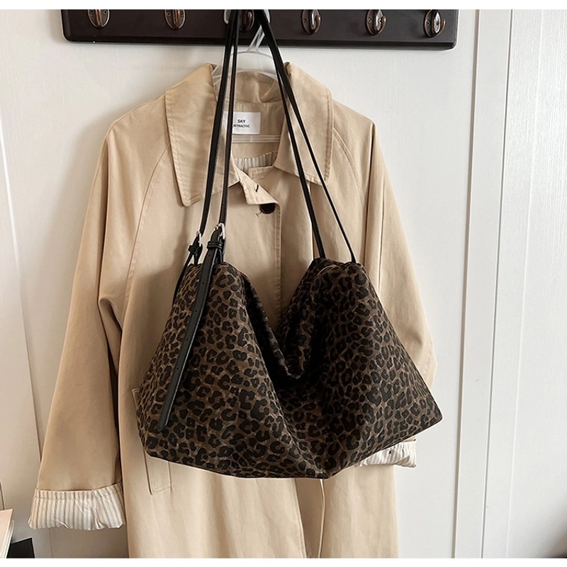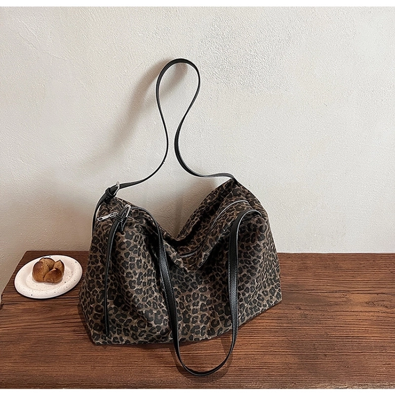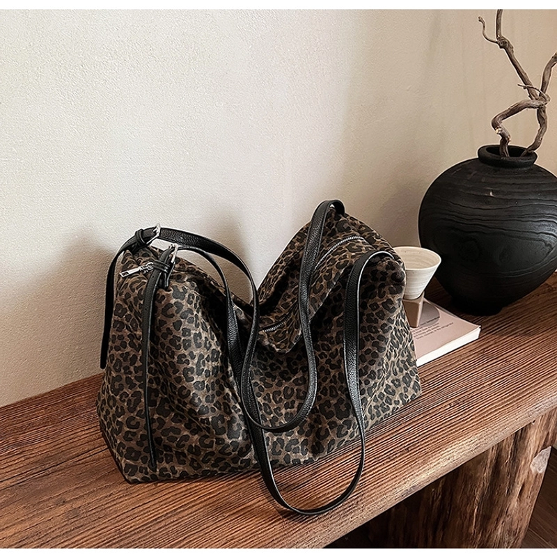 Women'S Pu Solid Color Leopard Elegant Square Zipper Tote Bag