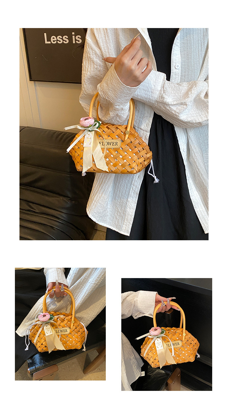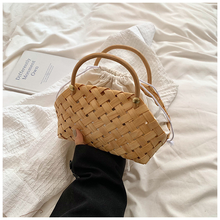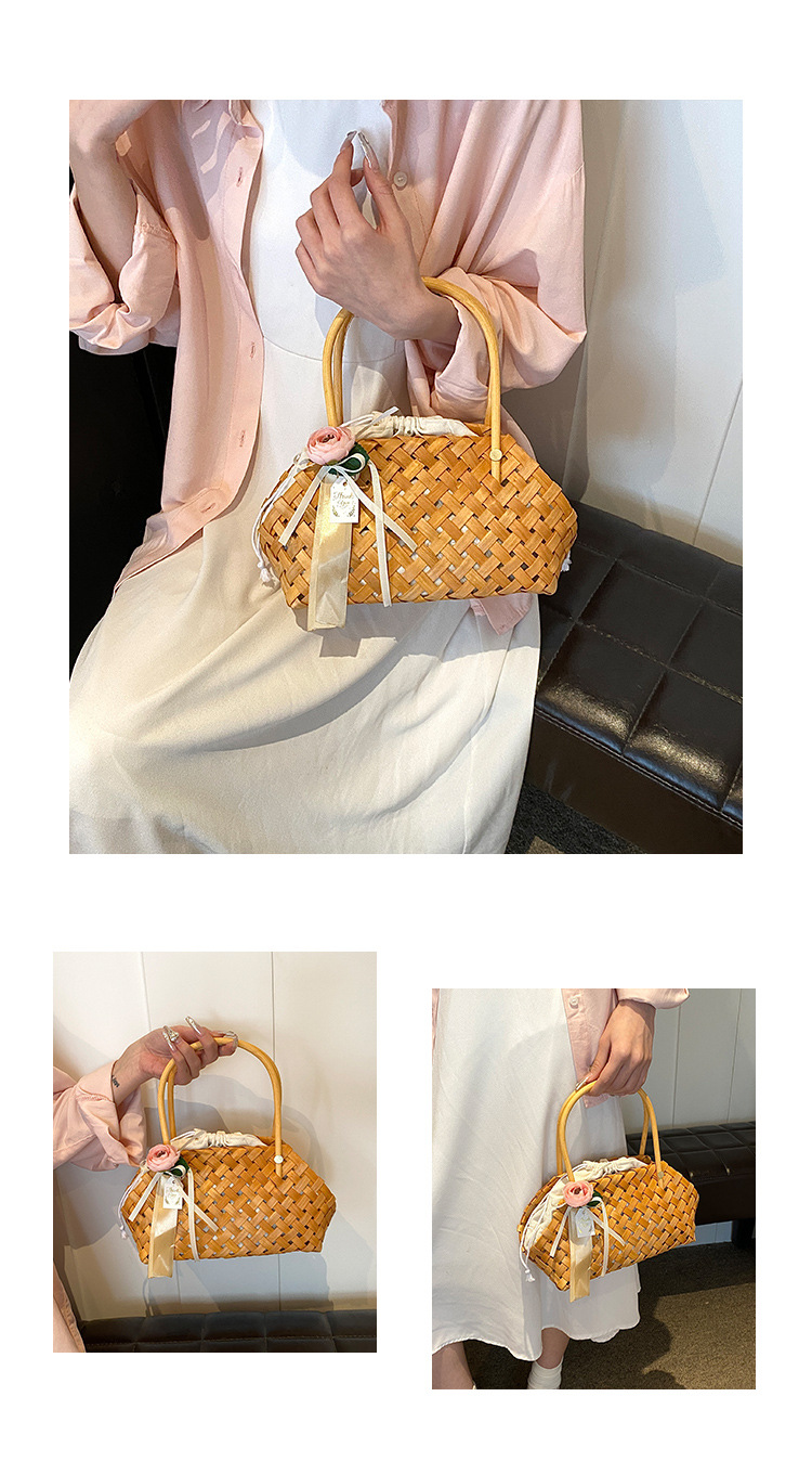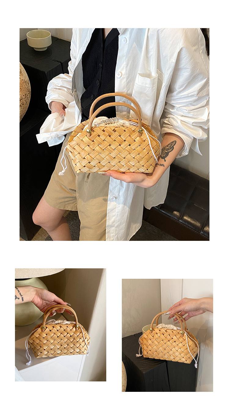 Women'S Small Straw Solid Color Vacation Beach Weave String Straw Bag
