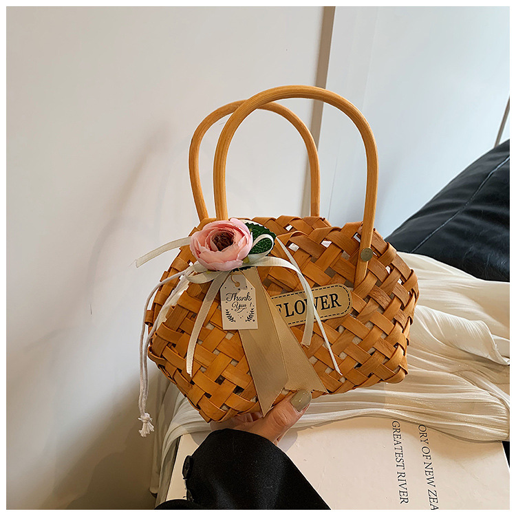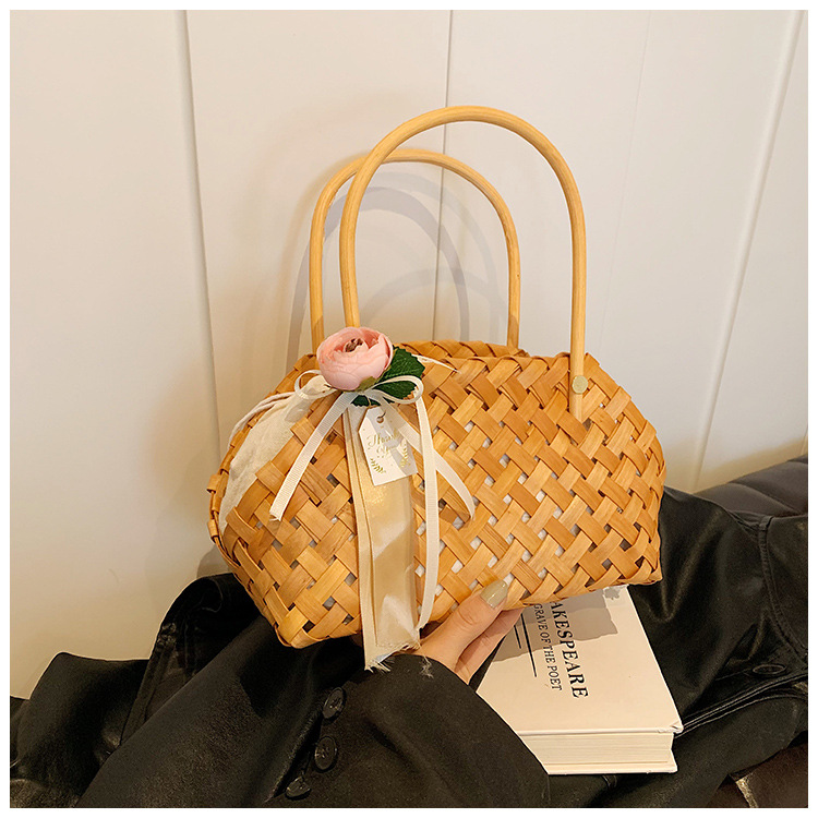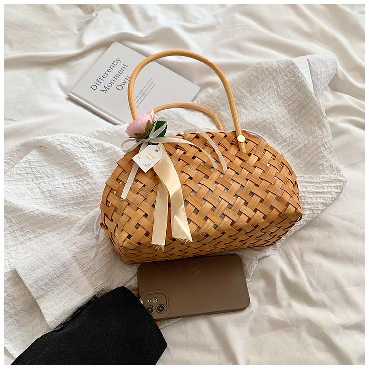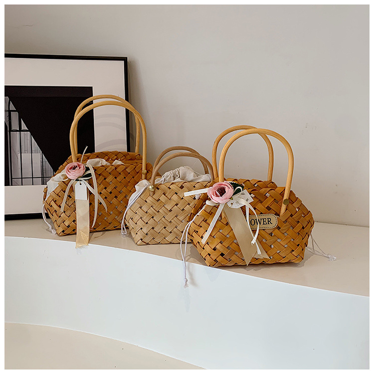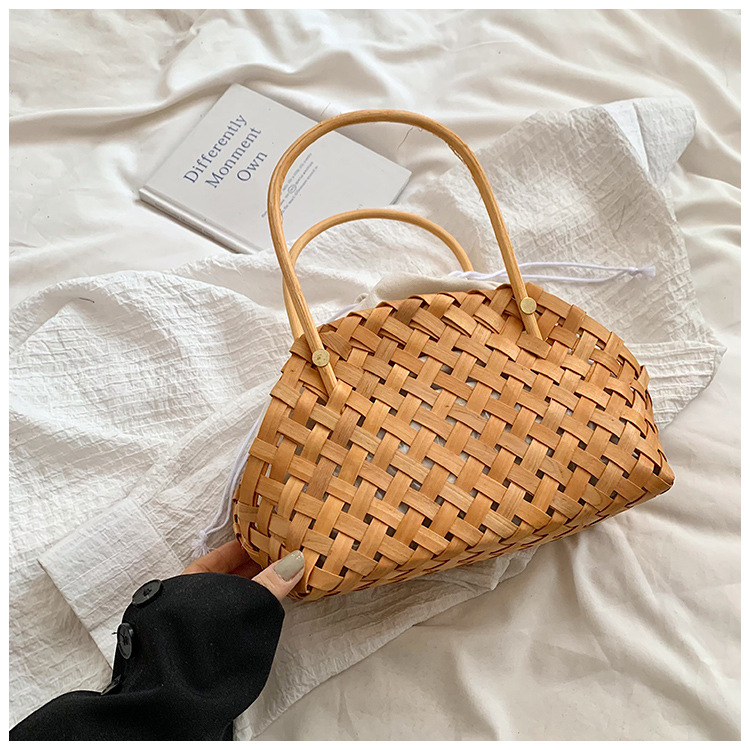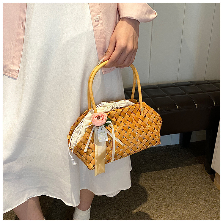 Women'S Small Straw Solid Color Vacation Beach Weave String Straw Bag