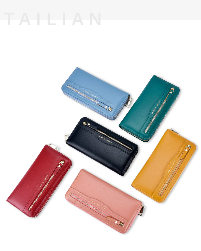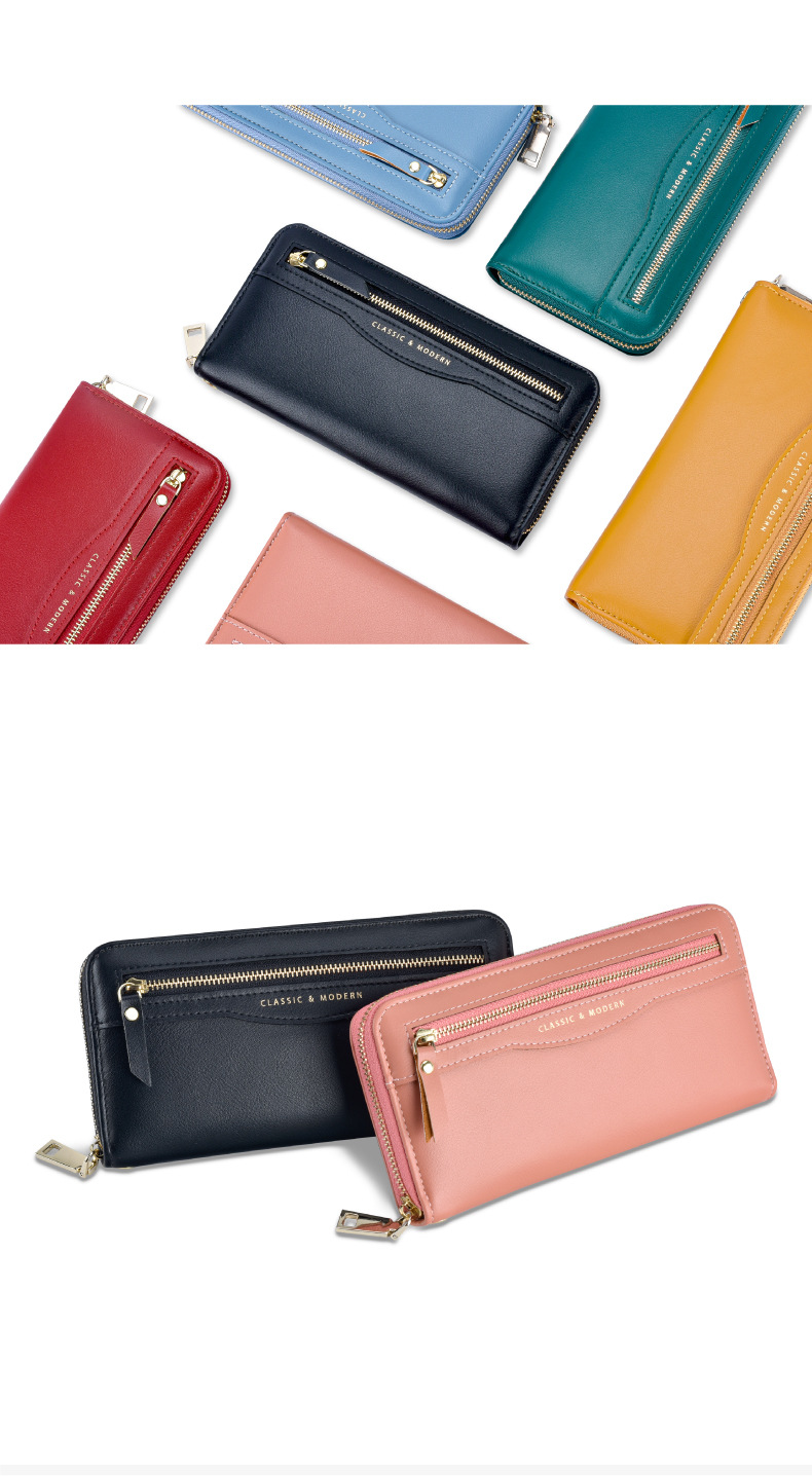 Women'S Spring&Summer Pu Leather Solid Color Fashion Square Zipper Long Wallet