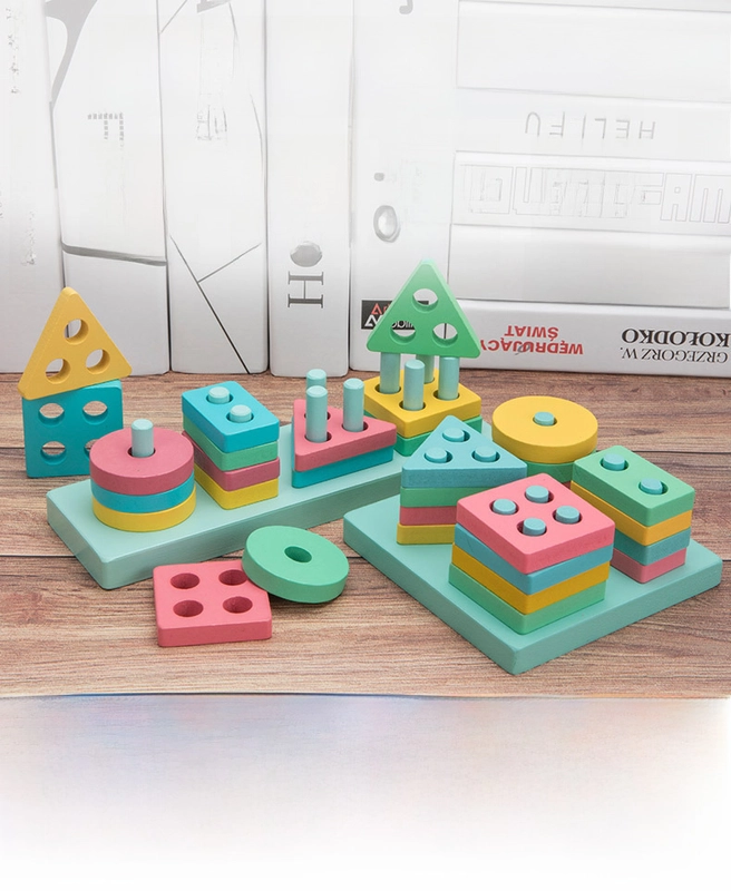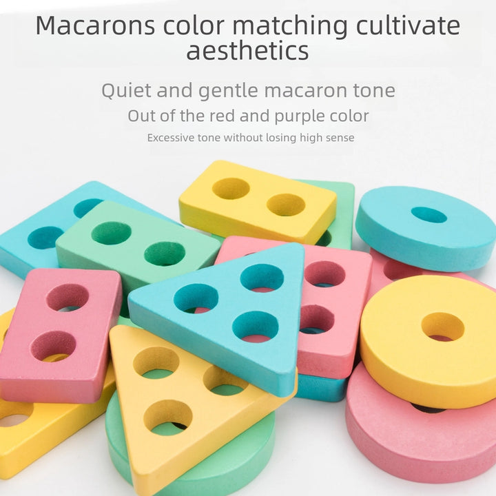 Wooden Children Macaron Color Geometric Figure Matching Color Shape Cognitive Building Blocks Puzzle Early Education Educational Toys