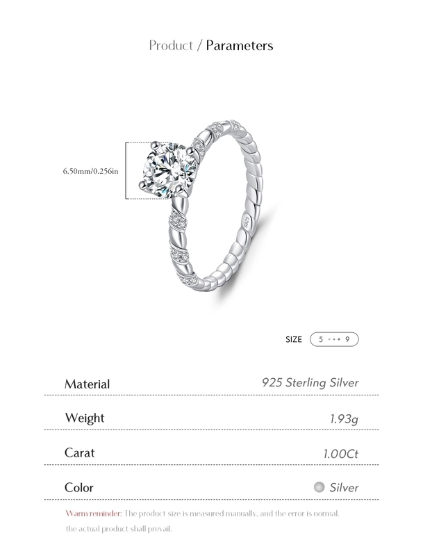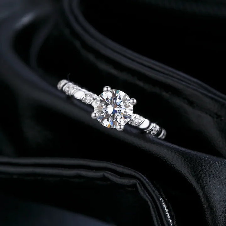 1.0Ct Round Brilliant Cut Rhodium Plated 925 Sterling Silver 925 Sterling Silver Moissanite Round Rings Colorless(Def) Gra Certificate Vvs1-Vvs2