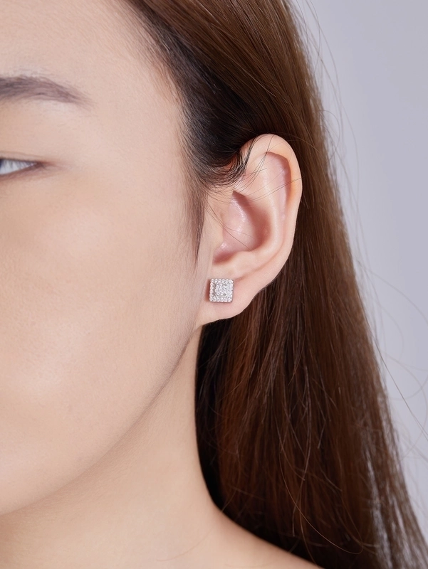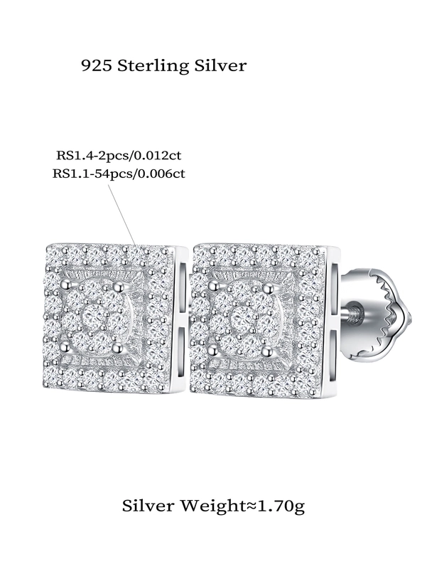 1 Pair 0.35 Karat Round Brilliant Cut Rhodium Plated 925 Sterling Silver 925 Sterling Silver Moissanite Vs1-Vs2 Vvs1-Vvs2 Gra Certificate Geometric Ear Studs Near Colorless(Ghi)