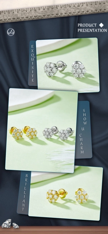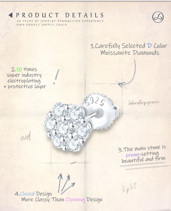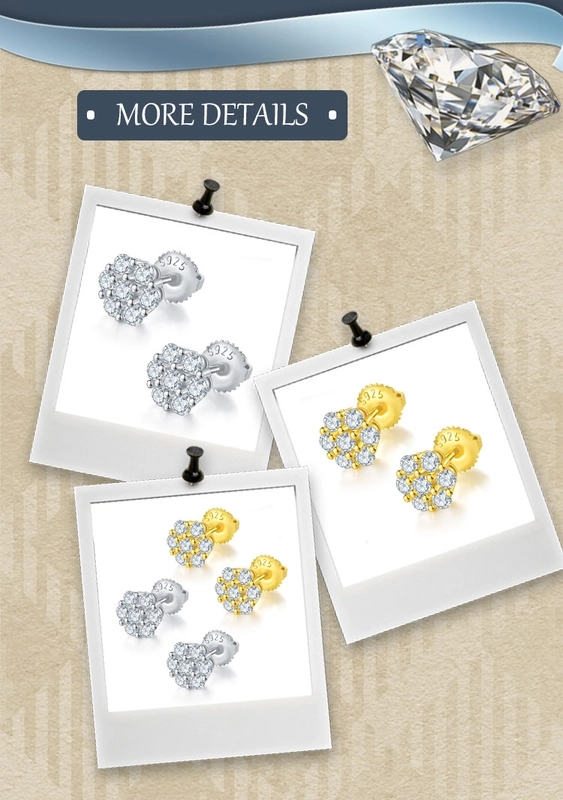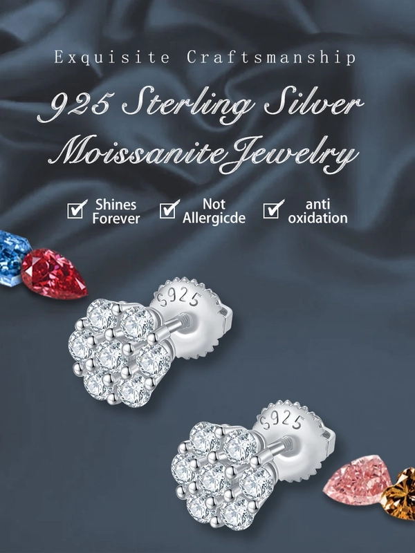 1 Pair 925 Sterling Silver Moissanite Geometric Ear Studs Colorless(Def)