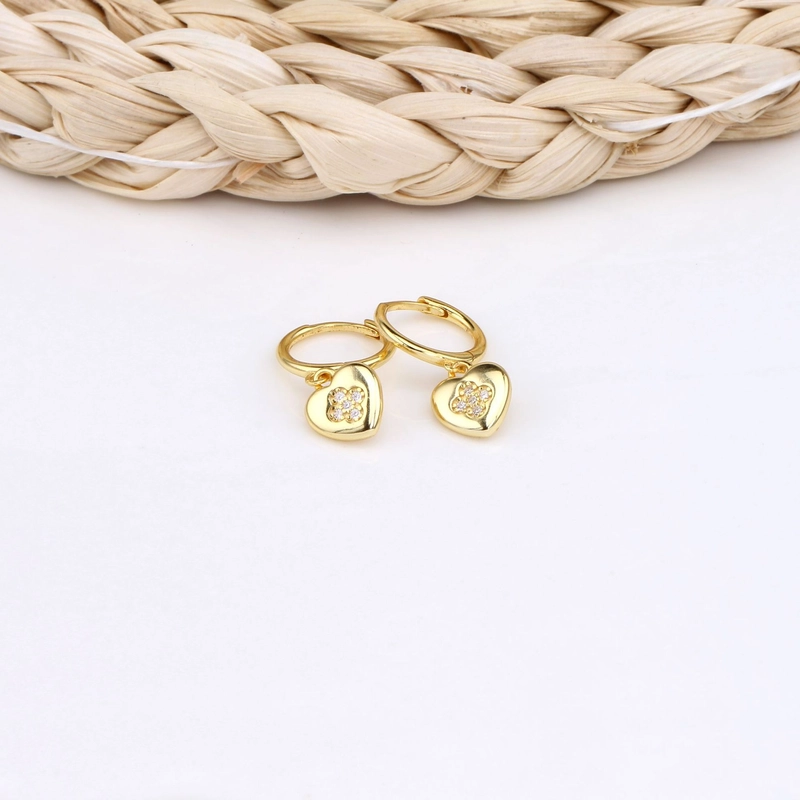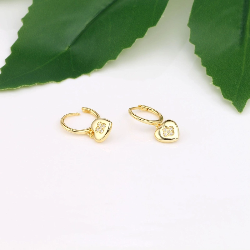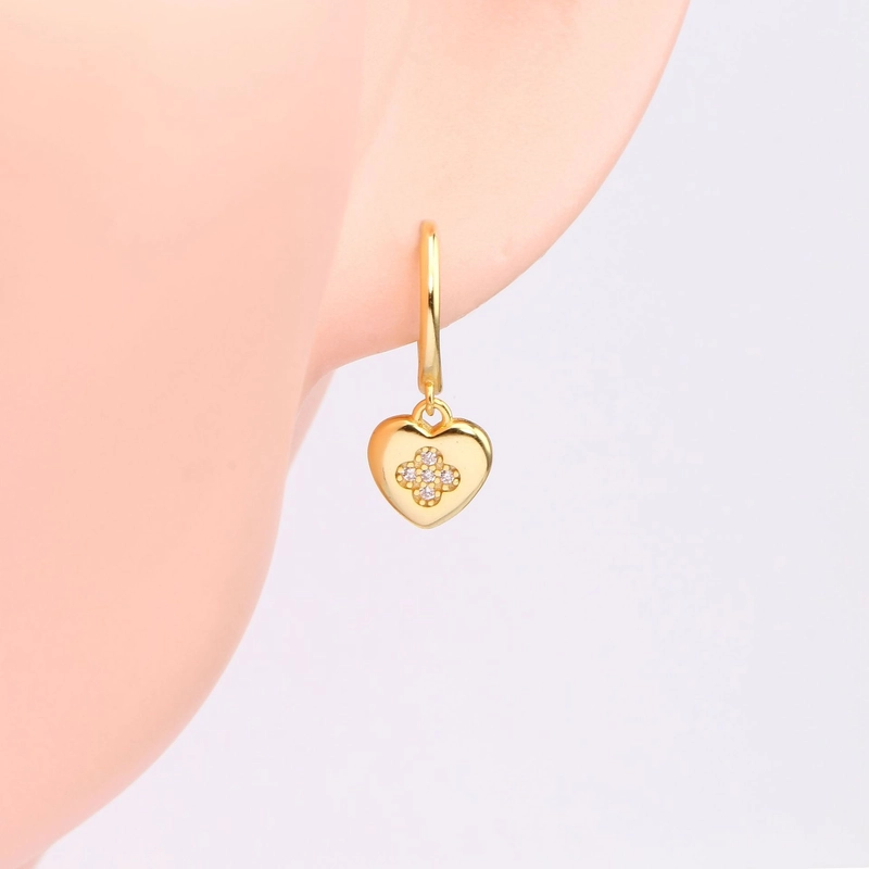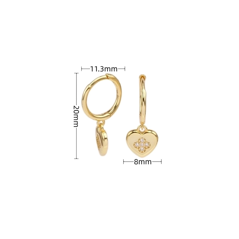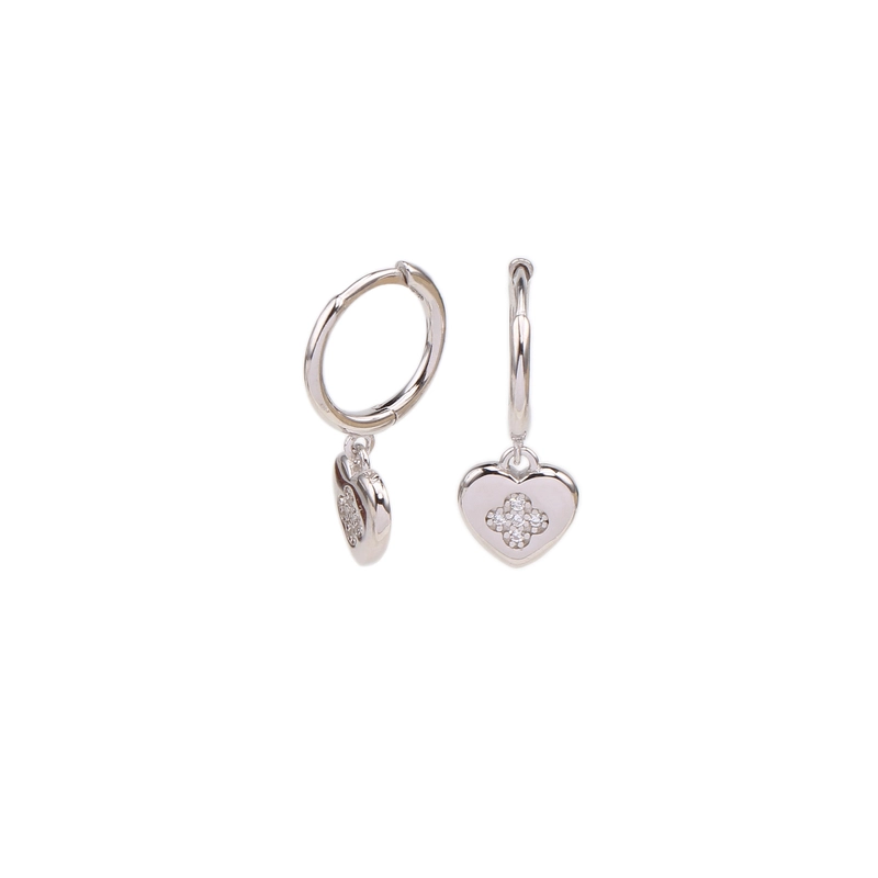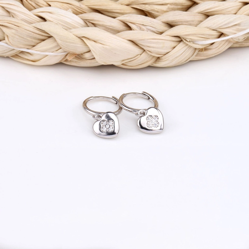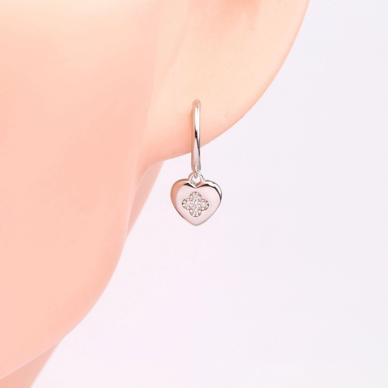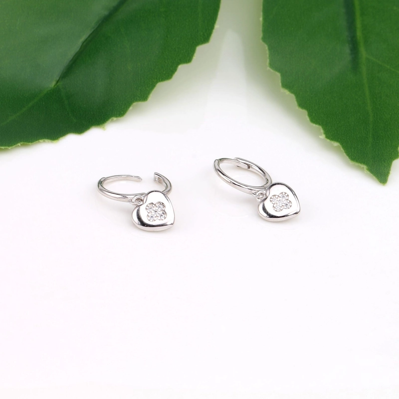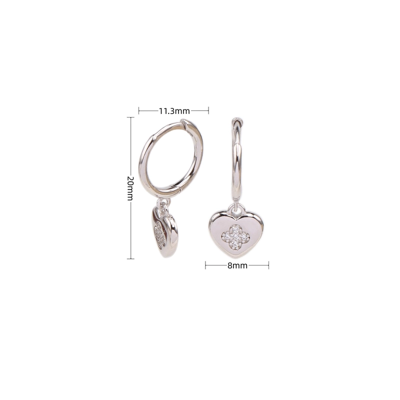 1 Pair 925 Sterling Silver Zircon Heart Shape Drop Earrings