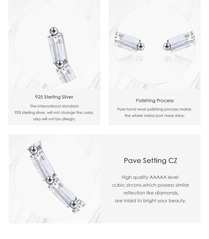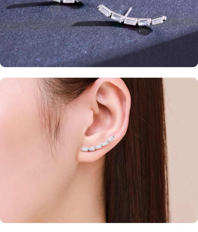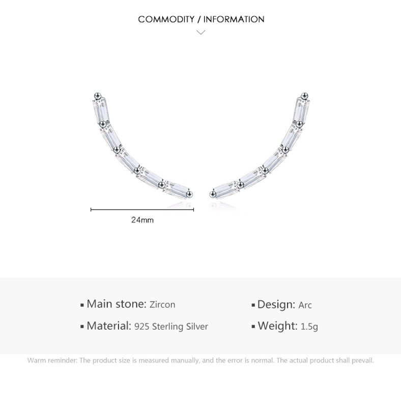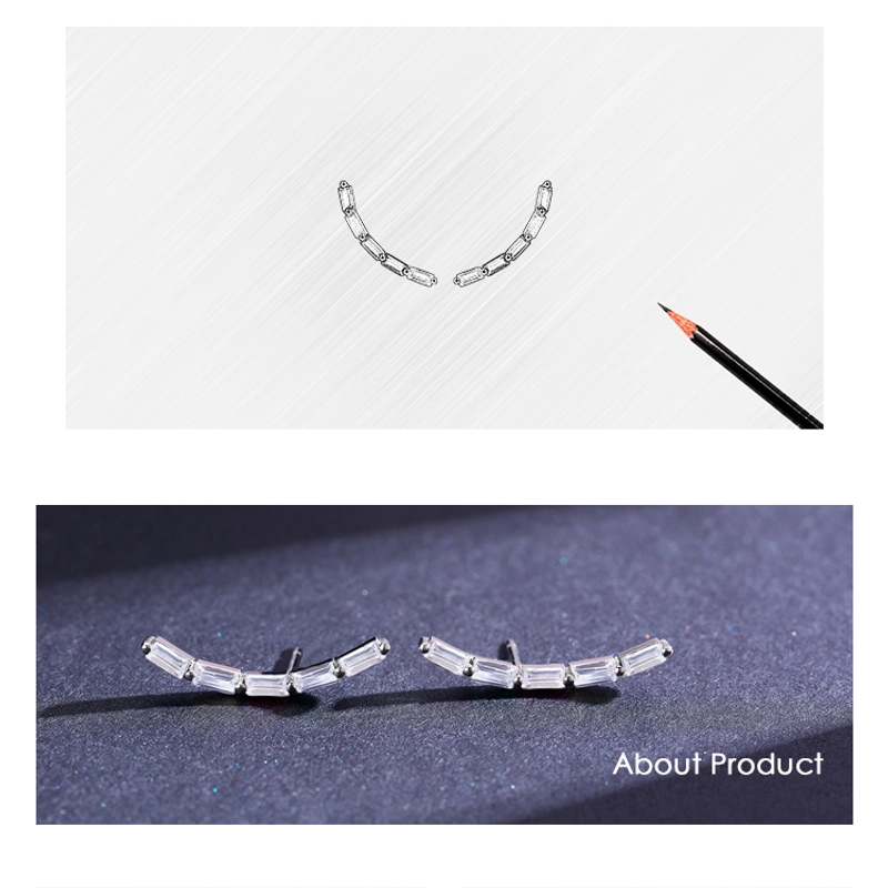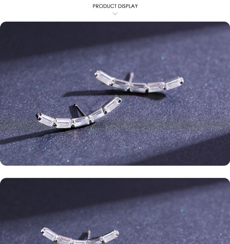 1 Pair 925 Sterling Silver Zircon Lines Ear Studs