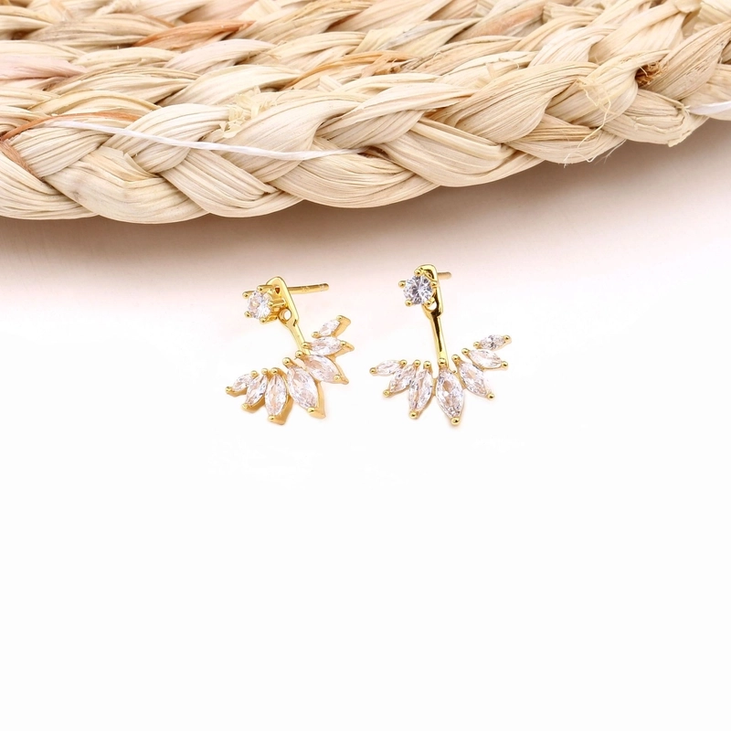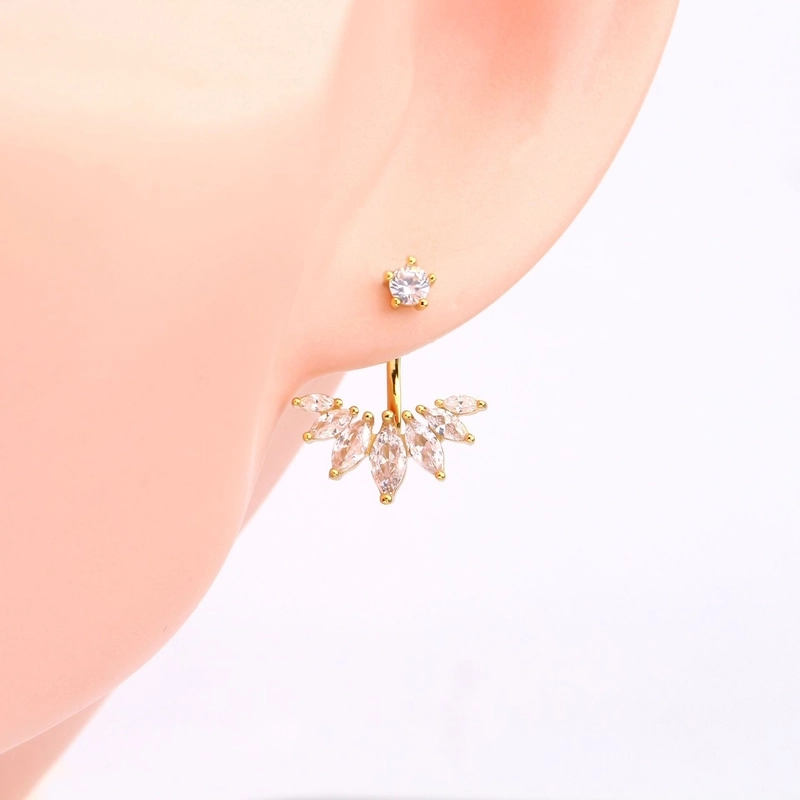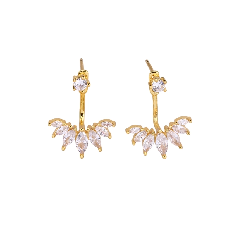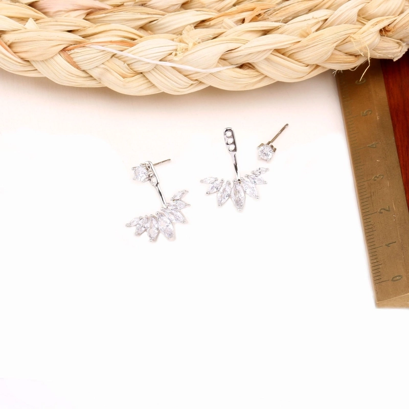 1 Pair 925 Sterling Silver Zircon Sector Earrings
