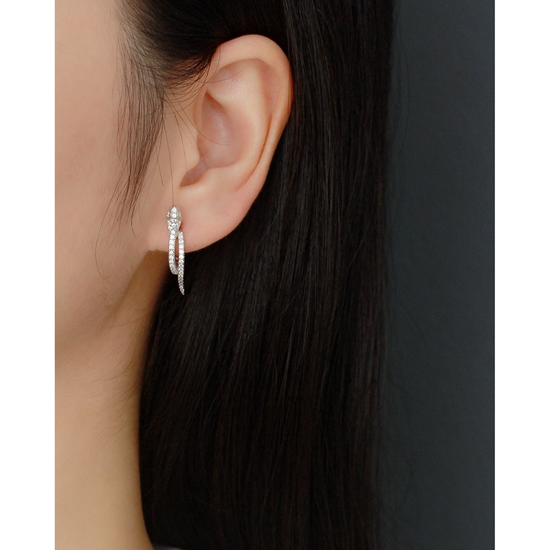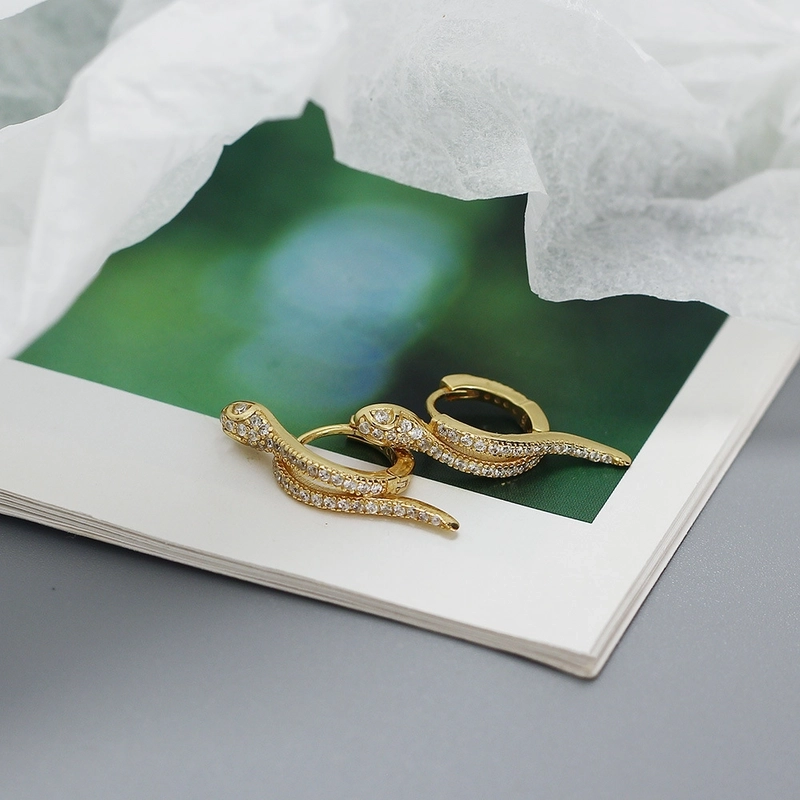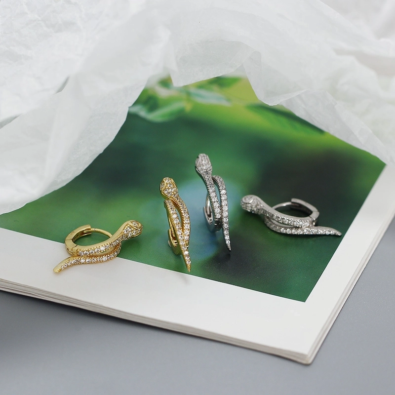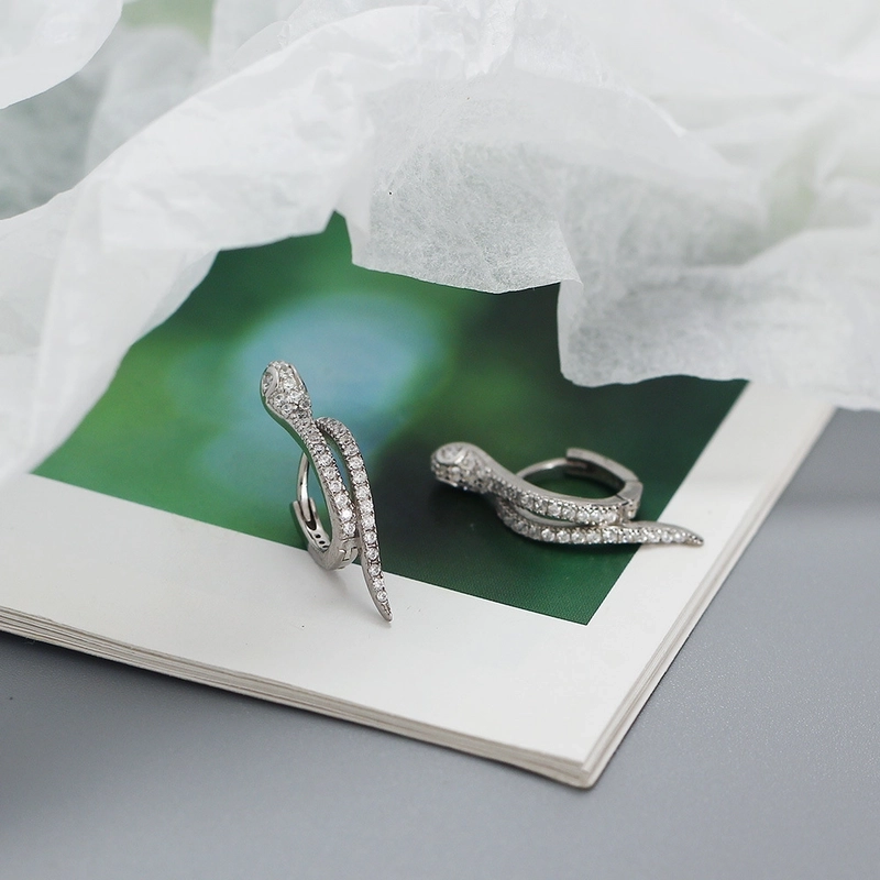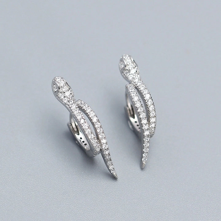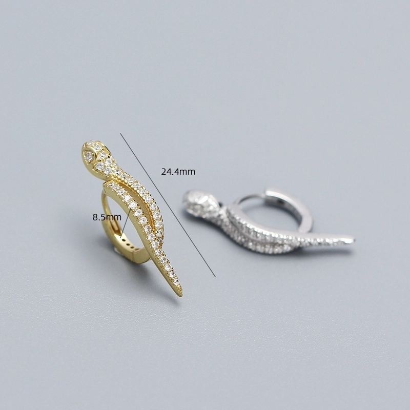 1 Pair 925 Sterling Silver Zircon Snake Earrings