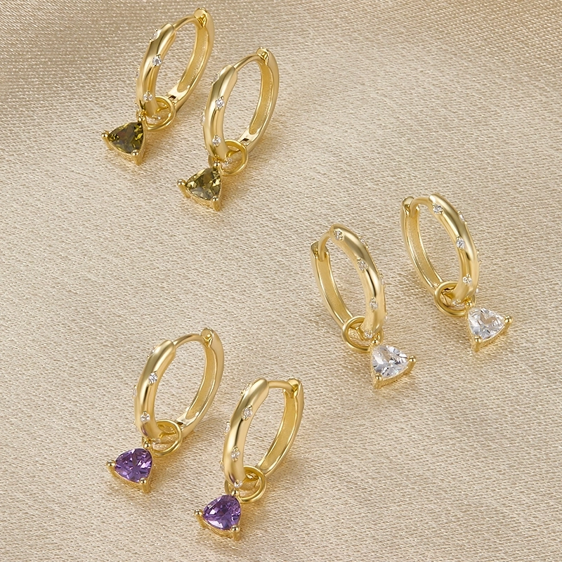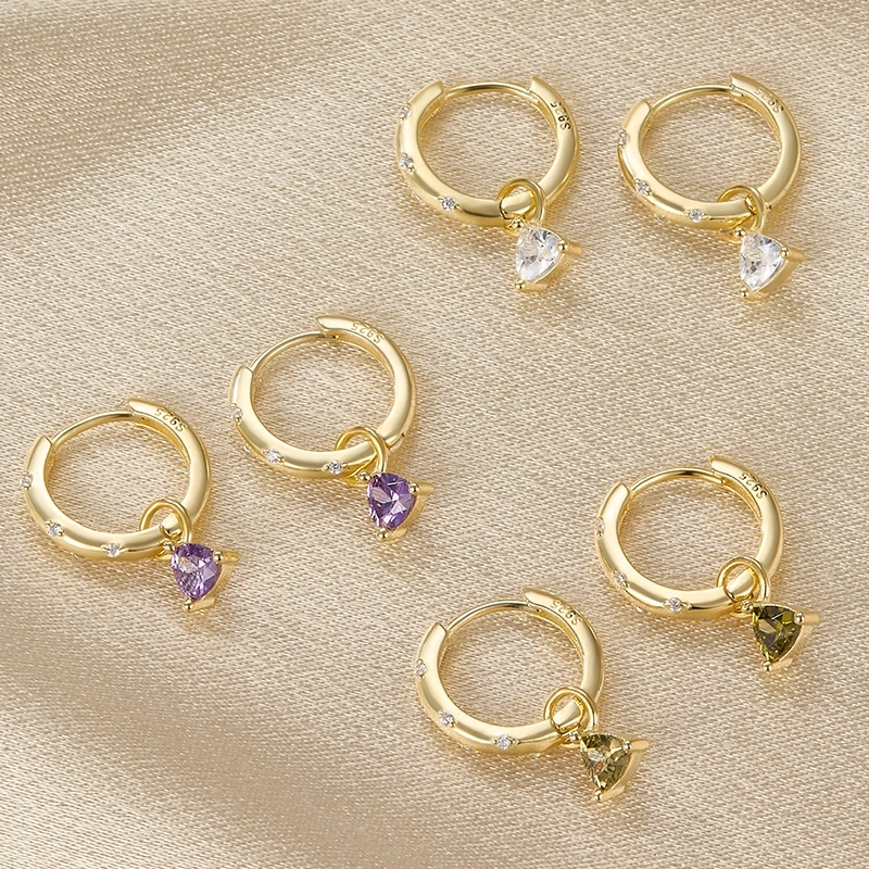 1 Pair 925 Sterling Silver Zircon Solid Color Earrings