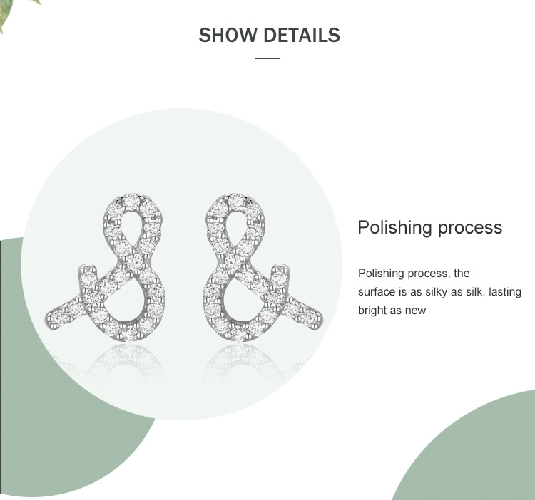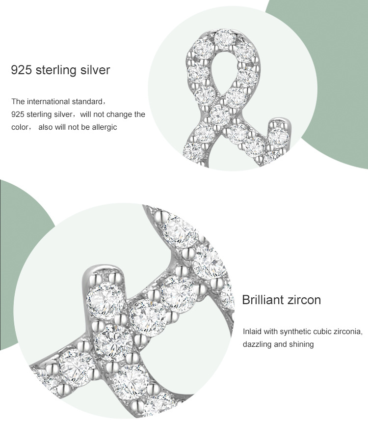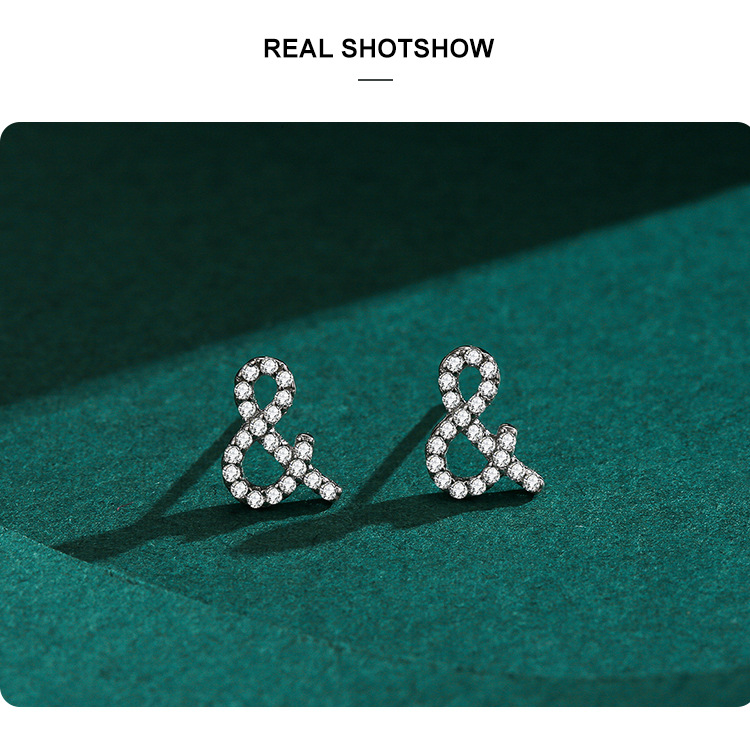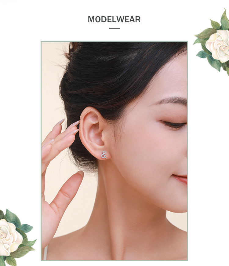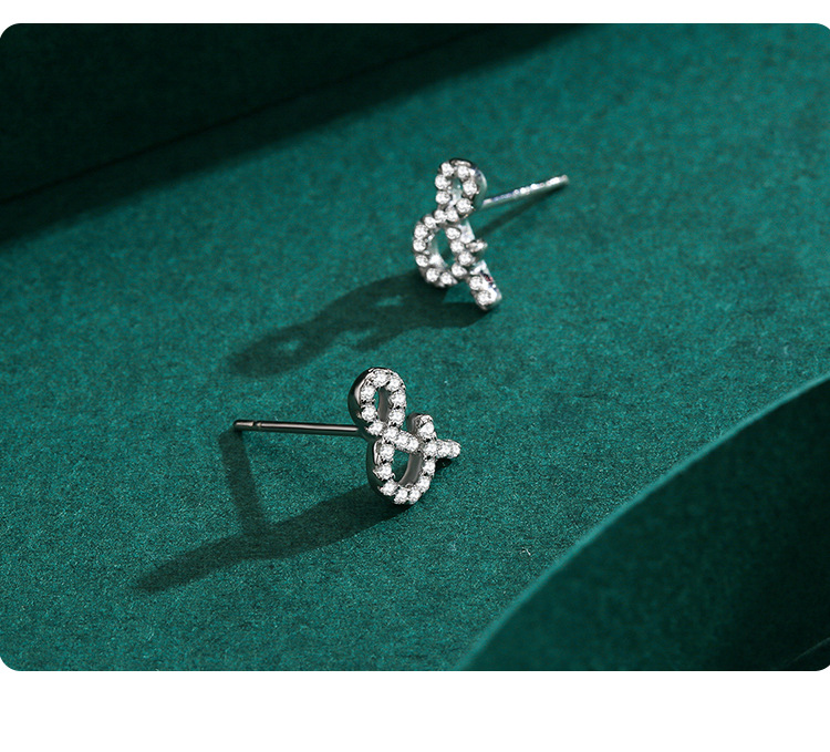 1 Pair 925 Sterling Silver Zircon Symbol Ear Studs