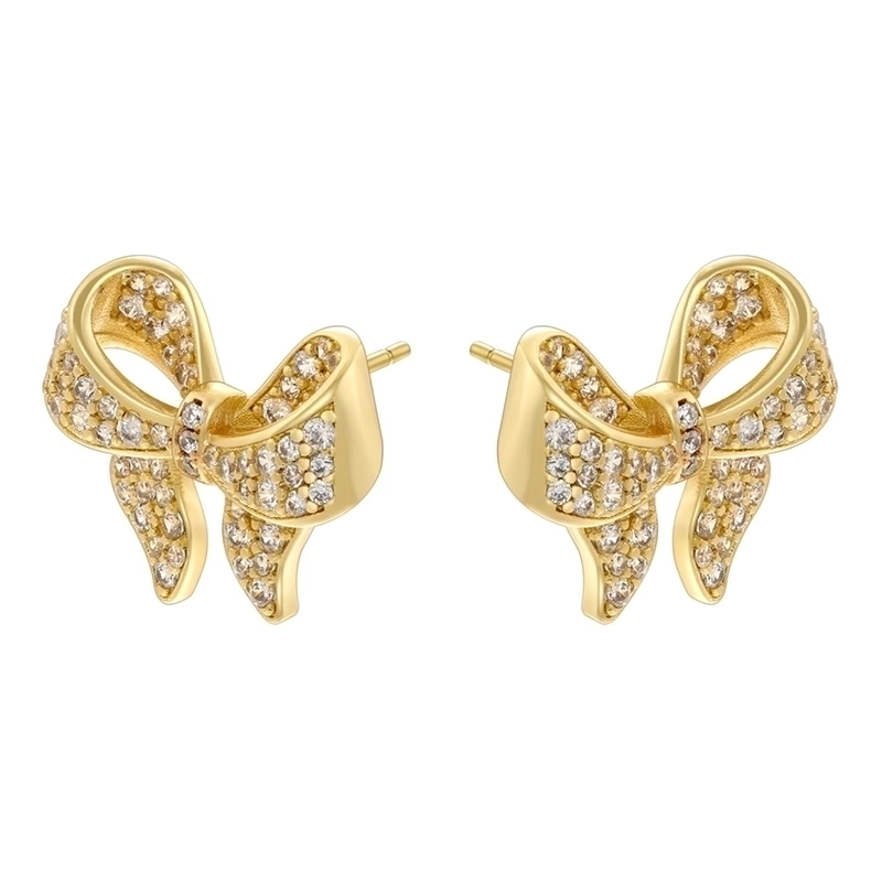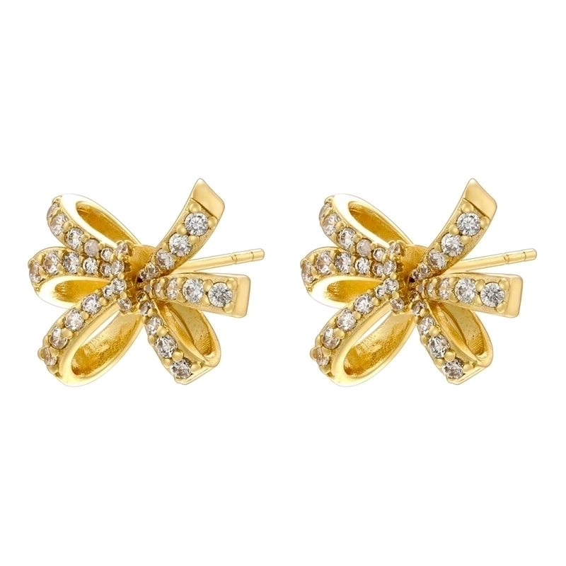 1 Pair Casual Elegant Bow Knot Inlay Copper Zircon 18K Gold Plated Ear Studs