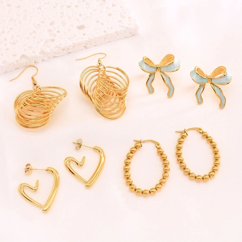 1 Pair Casual Elegant Streetwear Heart Shape Bow Knot 304 Stainless Steel 18K Gold Plated Ear Studs