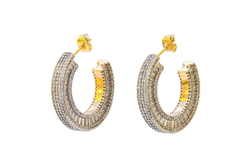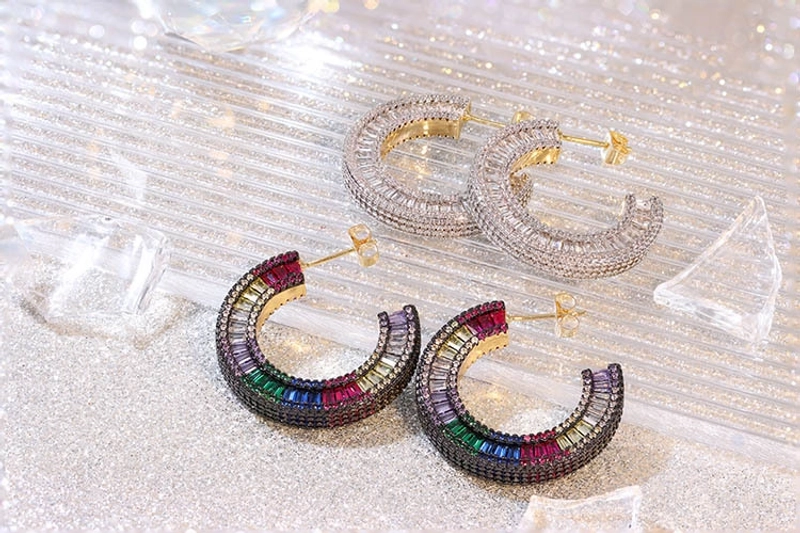 1 Pair Casual Minimalist Streetwear C Shape Plating Copper Zircon Copper Earrings