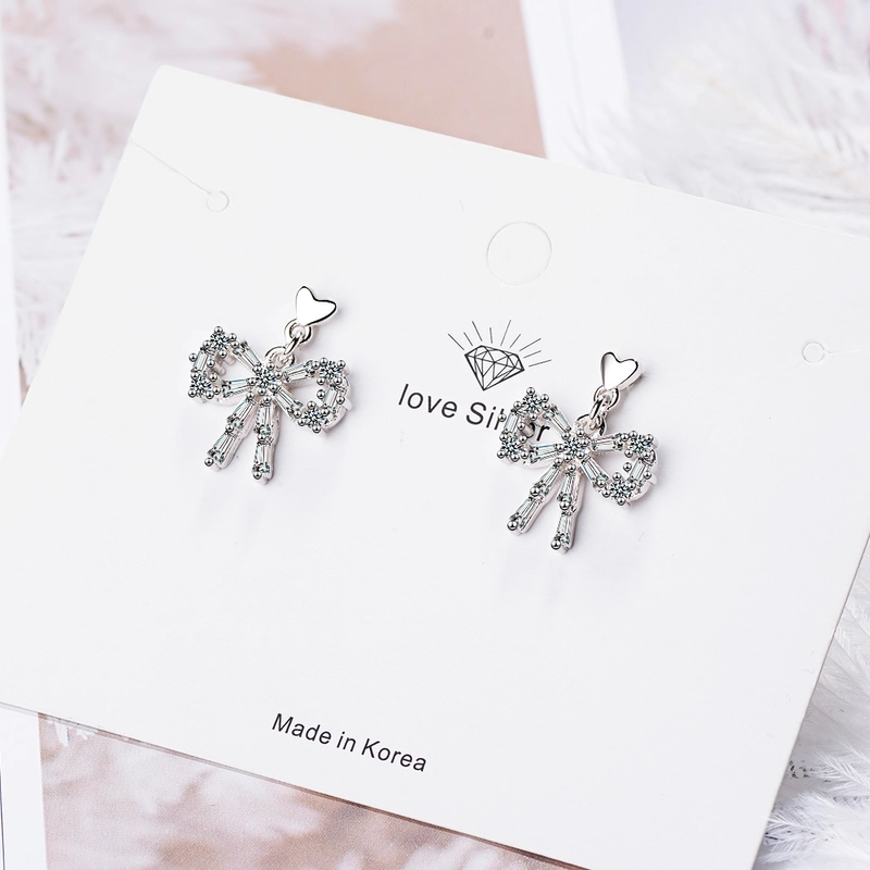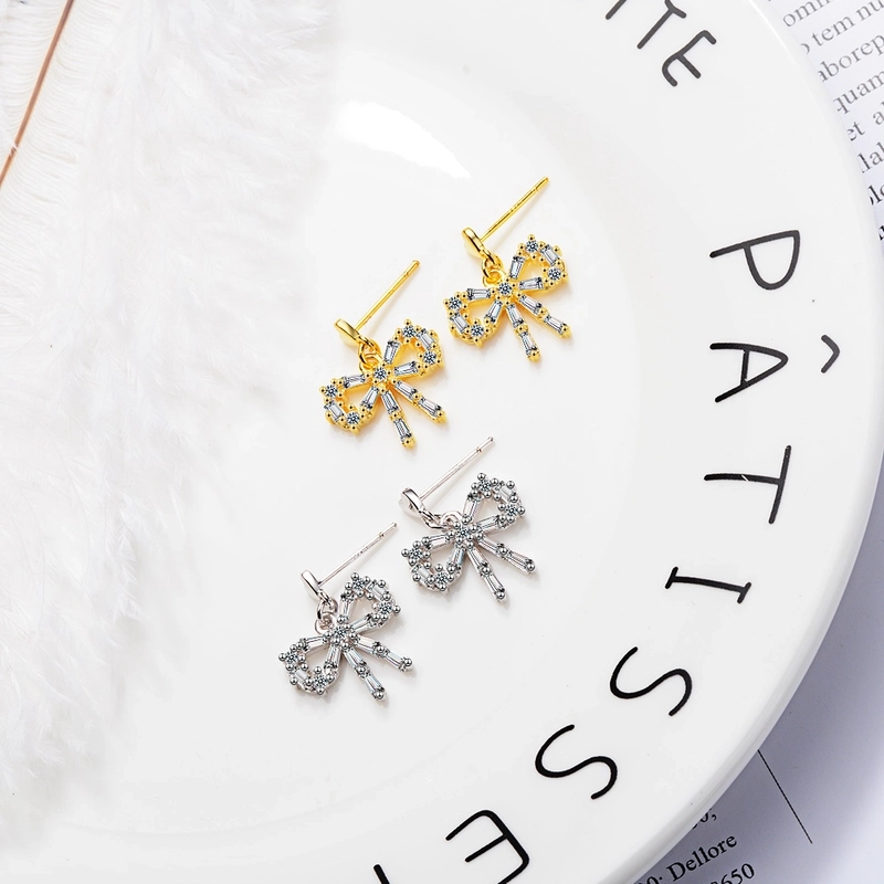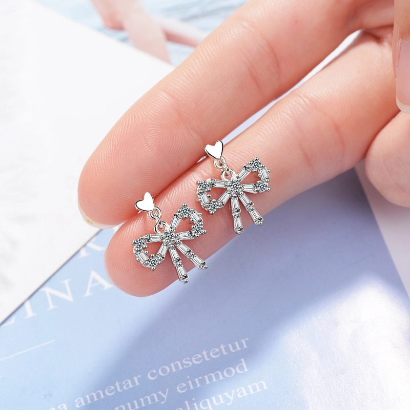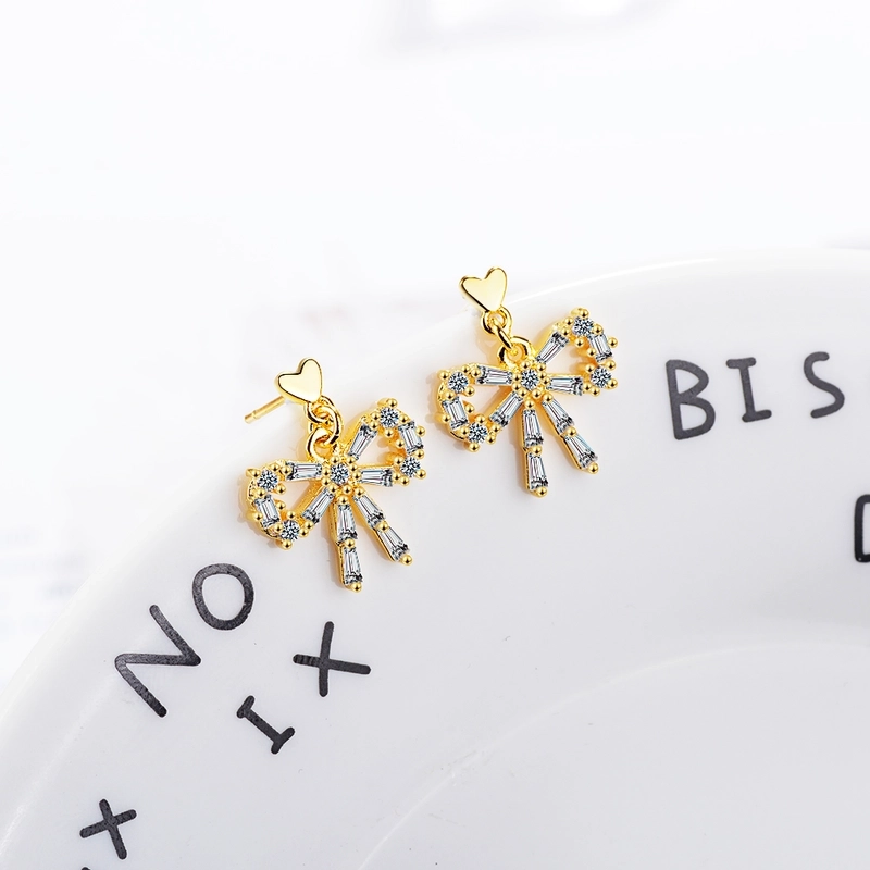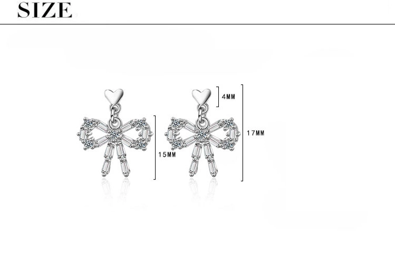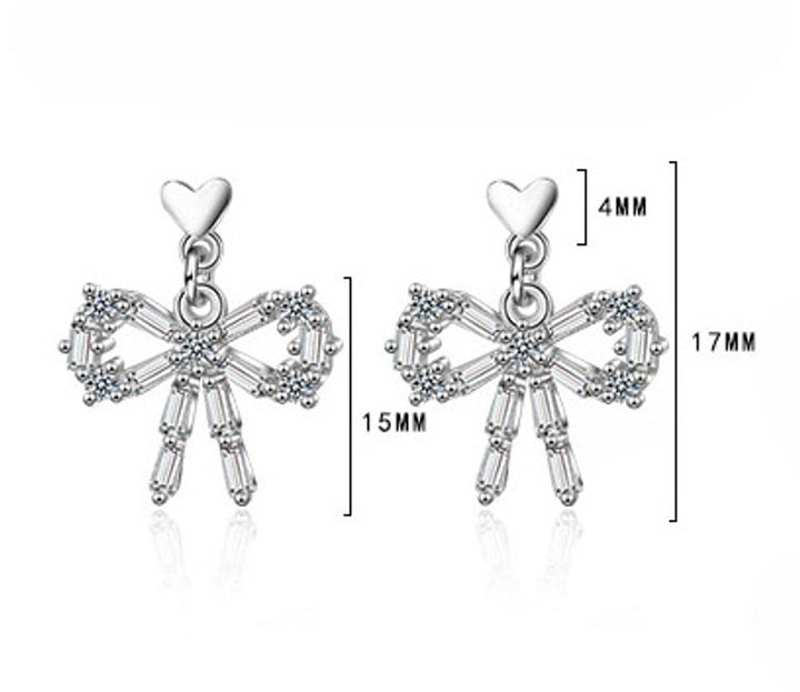 1 Pair Classic Style Commute Heart Shape Bow Knot Inlay Copper Zircon Earrings