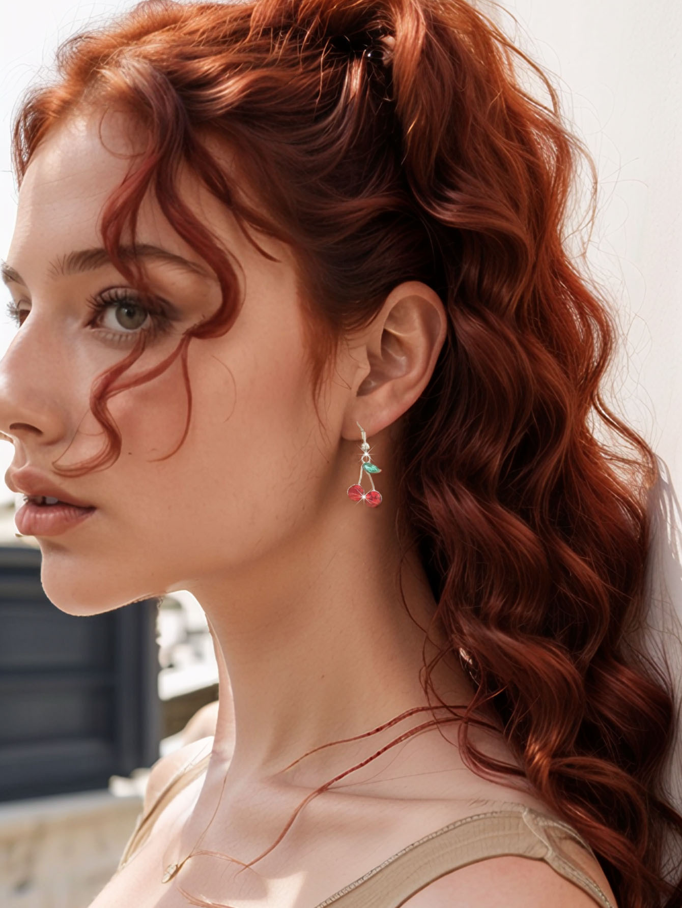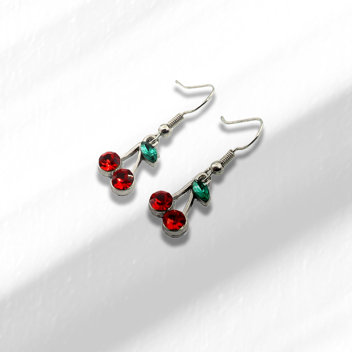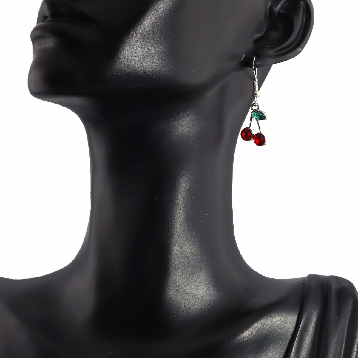 1 Pair Cute Cherry Plating Copper Rhinestones Drop Earrings