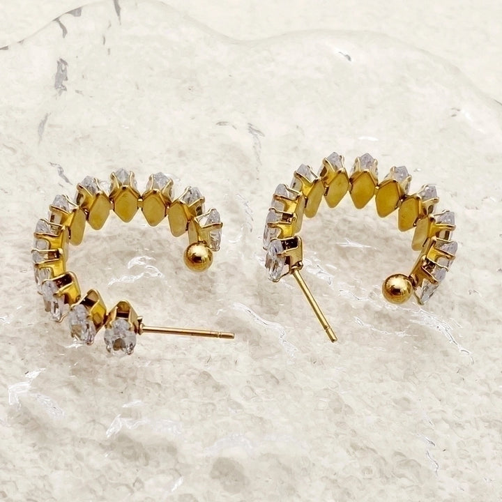 1 Pair Elegant C Shape Plating Inlay 304 Stainless Steel Zircon 14K Gold Plated Earrings