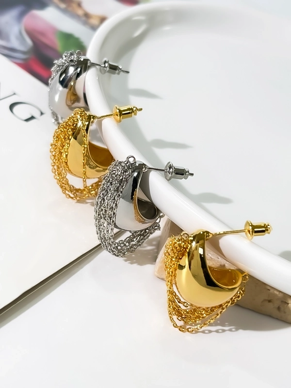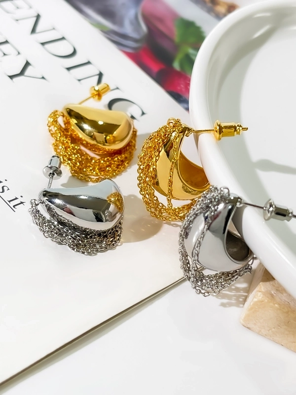 1 Pair Elegant French Style Tassel Irregular Copper 14K Gold Plated Ear Studs