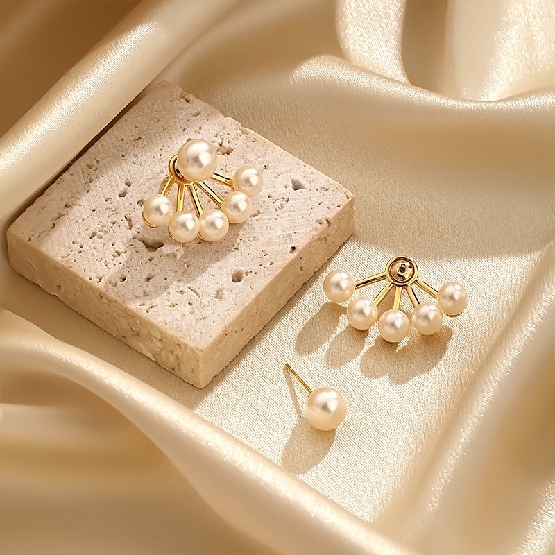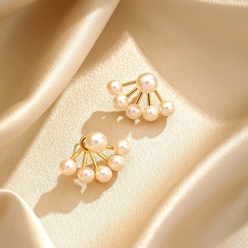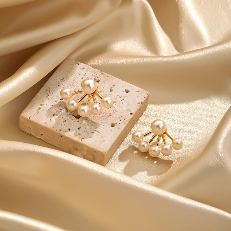 1 Pair Elegant Luxurious Minimalist Sector Inlay Freshwater Pearl Copper Freshwater Pearl 18K Gold Plated Ear Studs