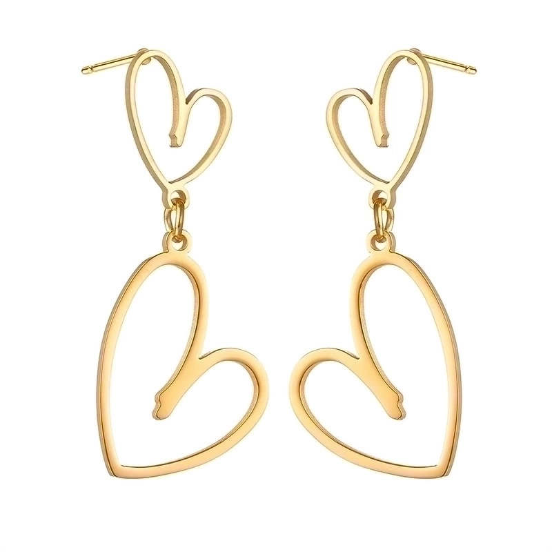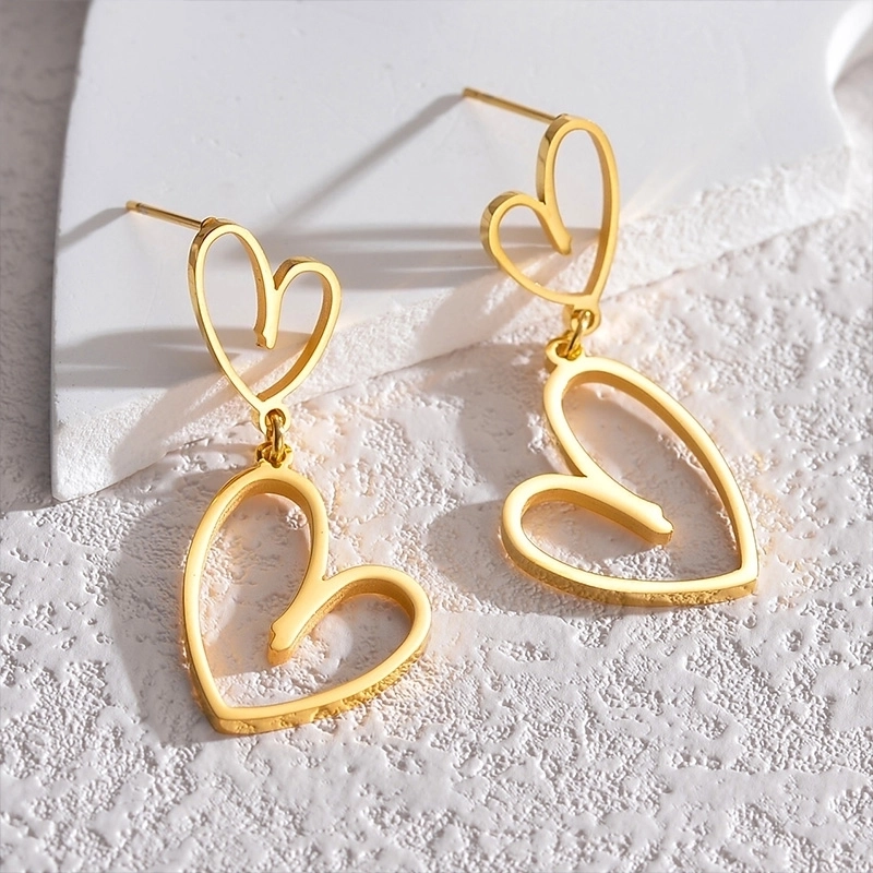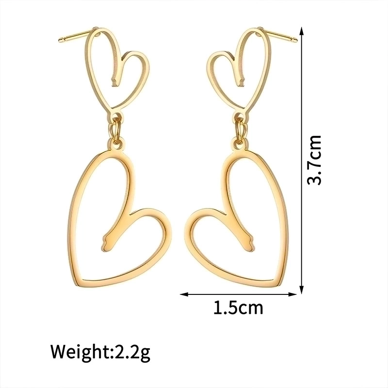 1 Pair Elegant Minimalist Heart Shape Polishing Plating 304 Stainless Steel 18K Gold Plated Drop Earrings