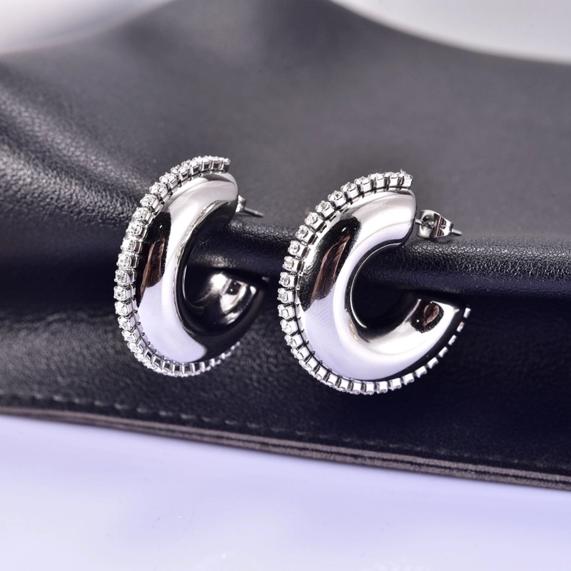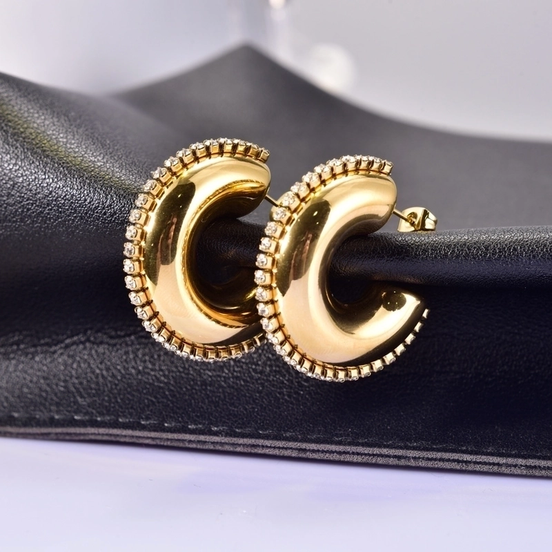 1 Pair Elegant Minimalist Streetwear Solid Color Plating 304 Stainless Steel Zircon 18K Gold Plated Stainless Steel Earrings