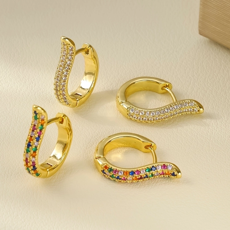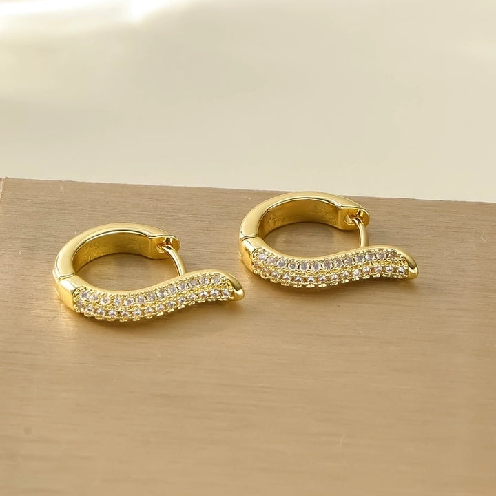 1 Pair Elegant Minimalist U Shape Round Inlay Copper Zircon 18K Gold Plated Earrings
