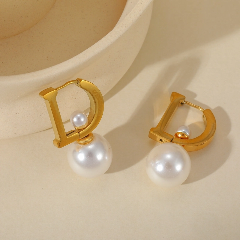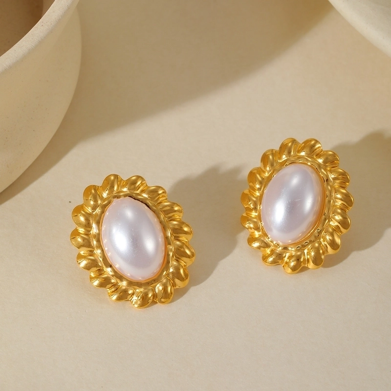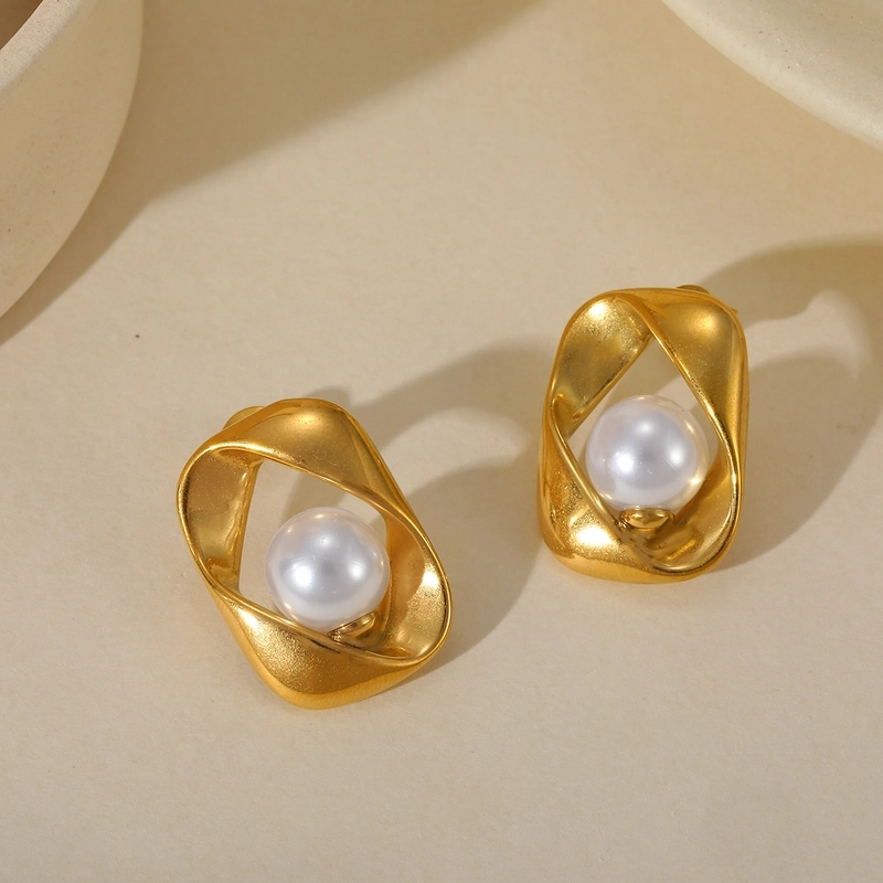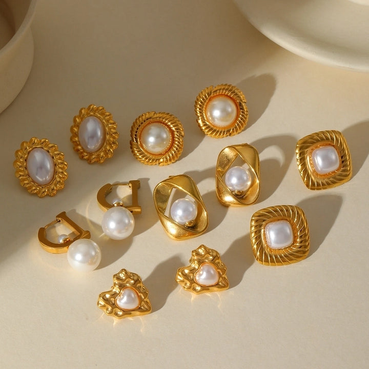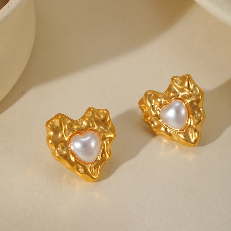 1 Pair Elegant Retro Artistic Irregular Geometric Heart Shape Plating Inlay 304 Stainless Steel Imitation Pearl 18K Gold Plated Ear Studs