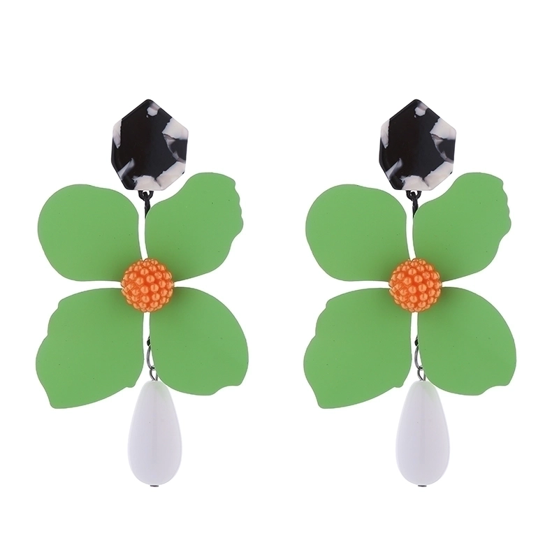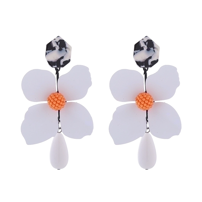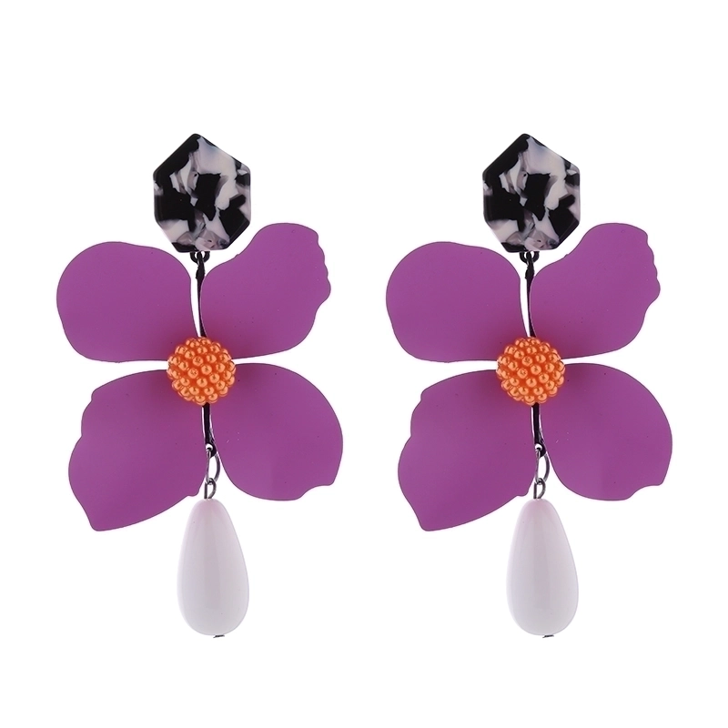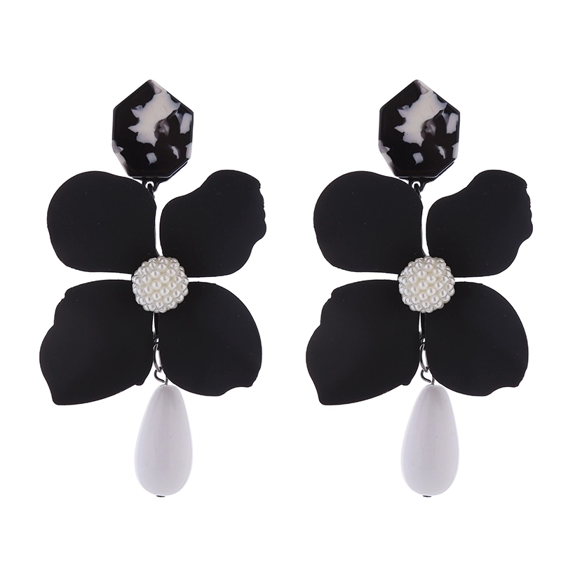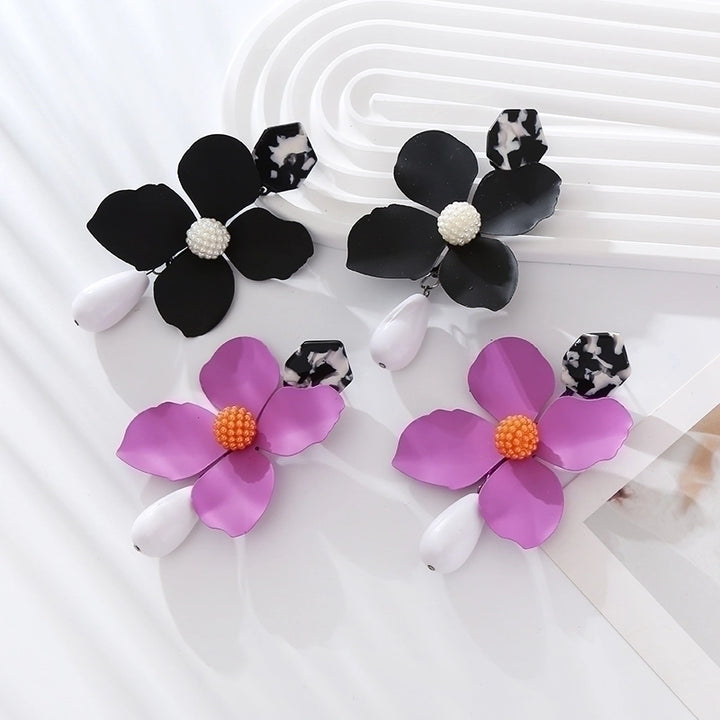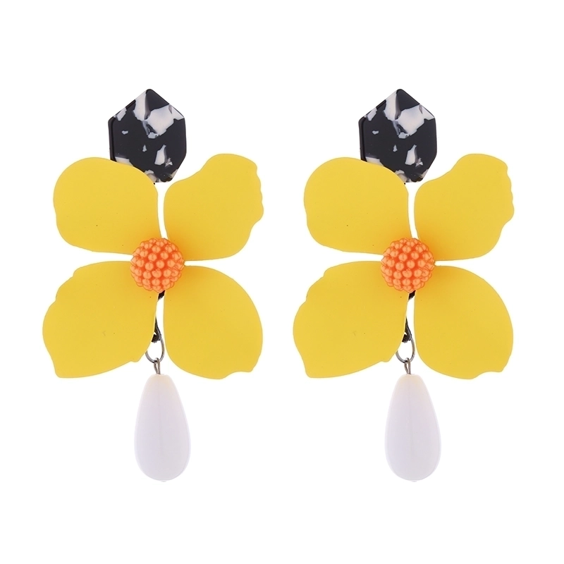 1 Pair Elegant Sweet Water Droplets Flower Stoving Varnish Inlay Alloy Artificial Pearls Shell Gold Plated Drop Earrings